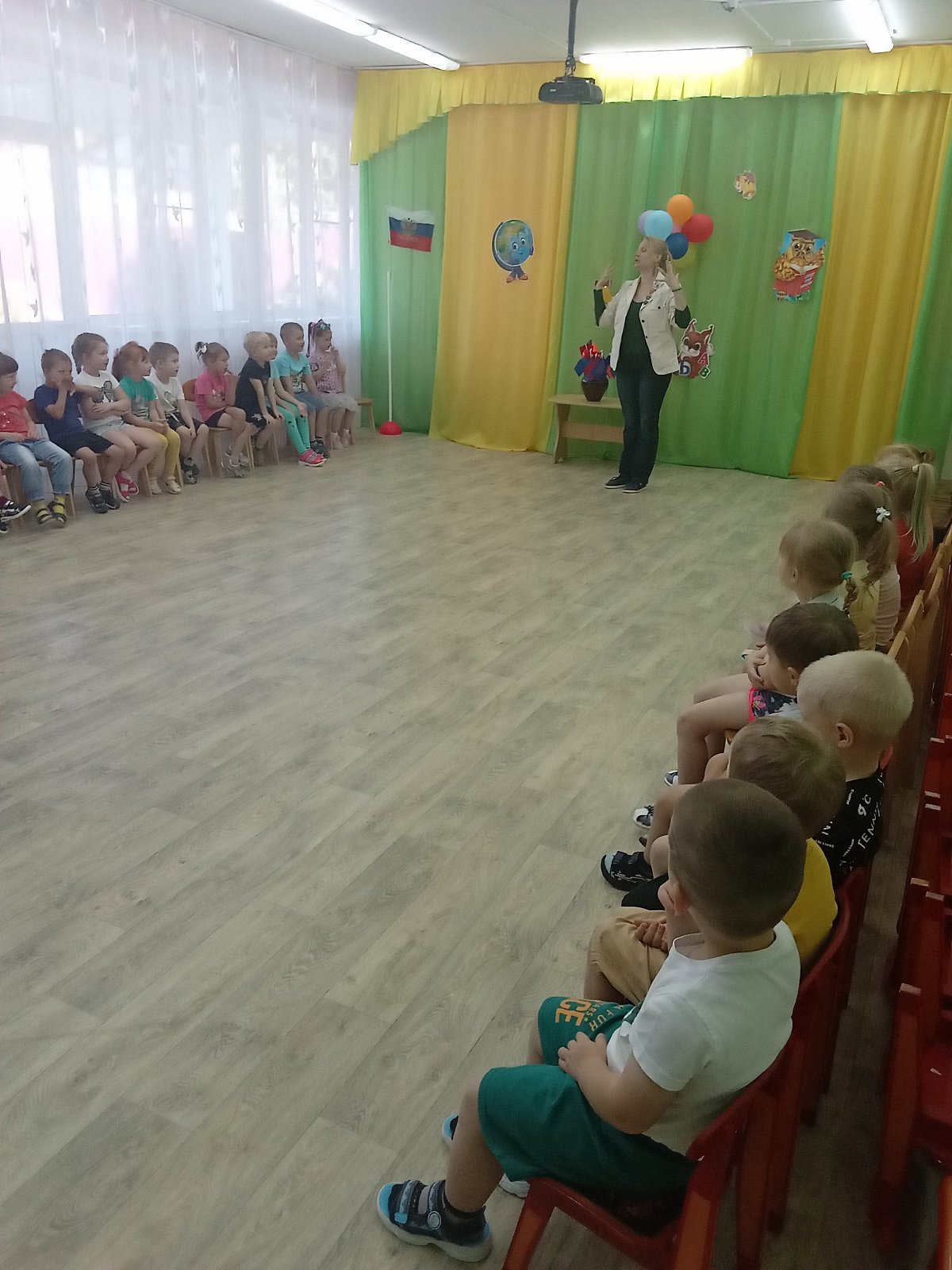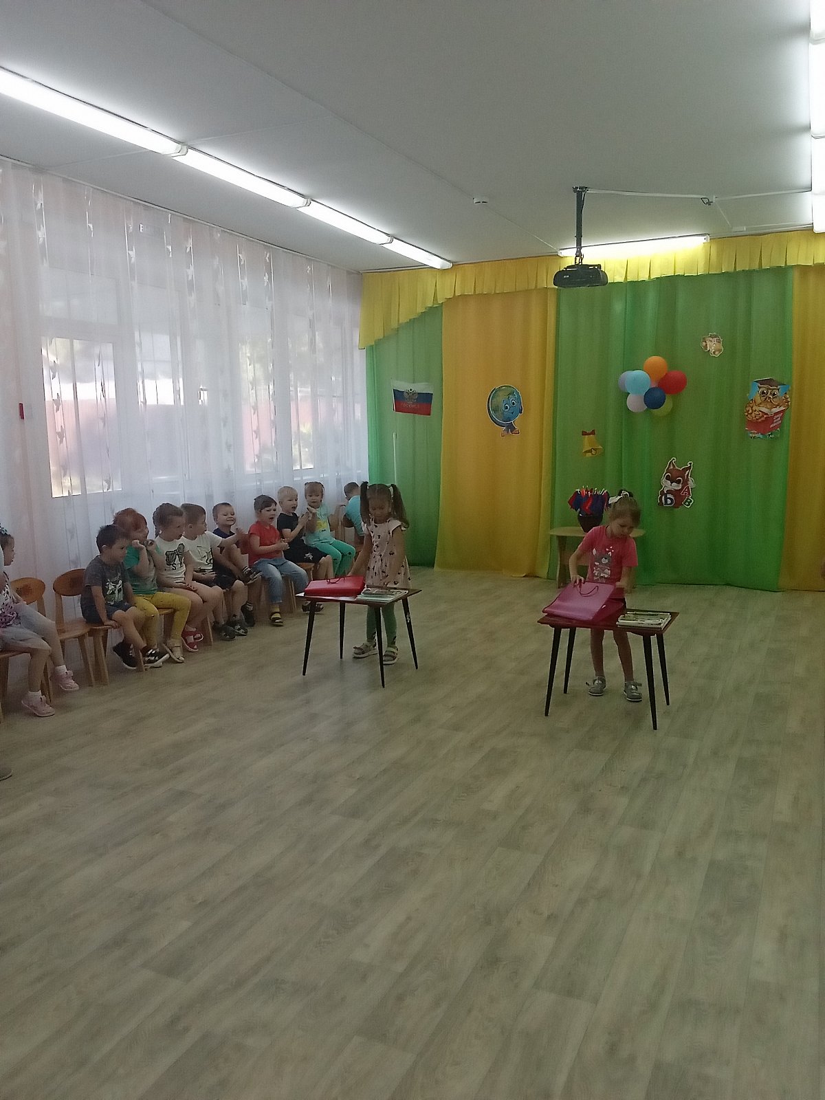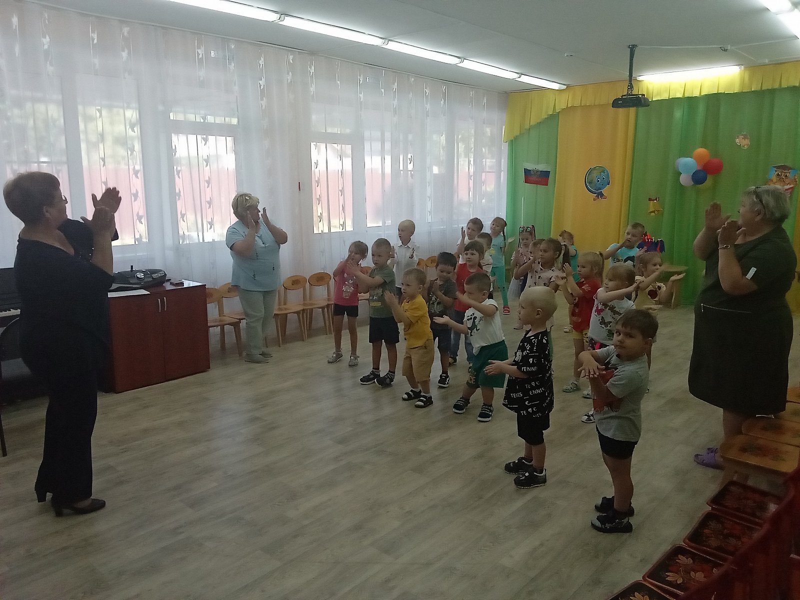 Вот и закончилось яркое, звонкое лето. Наступил сентябрь, а вместе с ним и самый первый праздник в новом учебном году - День знаний, очень светлый и радостный! Традиционно в МБДОУ д/с 15 «Теремок» (п. Новый) состоялось праздничное мероприятие, посвящённое Дню знаний для ребят старшего дошкольного возраста. Начало мероприятия началось с Гимна РФ. Детям напомнили, что флаг РФ поднимается под звуки Гимна. Сегодня мы поиграли с детьми в «школу», а учителями были воспитатели. Звенел звонок, дети занимали места за «партами», начинались «уроки». Дети-«ученики» решали задачки, вспоминали цифры на уроке математики, закрепляли свои знания в играх. Отгадывали загадки, вспоминали пословицы, героев русских народных сказок на «уроке» литературы. Учитель-логопед Екатерина Владимировна провела с детьми логопедические упражнения для развития правильной речи. С большим удовольствием дети занимались на «уроке» физкультуры, показав свою силу, выносливость, смекалку. Между «уроками» были переменки, на которых дети танцевали свои любимые танцы.Поздравляем детей, педагогов, родителей с этим праздником! Этот день открывает новый учебный год. Пусть он будет увлекательным, интересным и принесет новые знания, открытия и новых друзей!