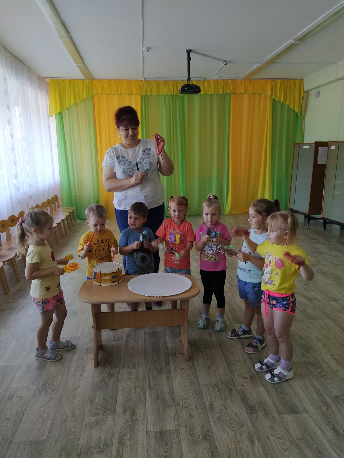 21. 08. в группе «Сказка» (воспитатель Фёдорова Е.Ю.) прошел досуг на тему «Музыкальные инструменты». Дети вспомнили знакомые (погремушка, колокольчик, бубен) и познакомились с новыми музыкальными инструментами. Очень интересен для детей был треугольник. Все ребята пробовали на нем играть. Отметили, что звук треугольника нежный, звонкий…После просмотра «Детской развивающей песенки про музыкальные инструменты», дети взяли по своему выбору музыкальные инструменты и дружно поиграли в оркестре. Получилось не совсем слаженно, но очень весело, что доставило им огромное удовольствие.