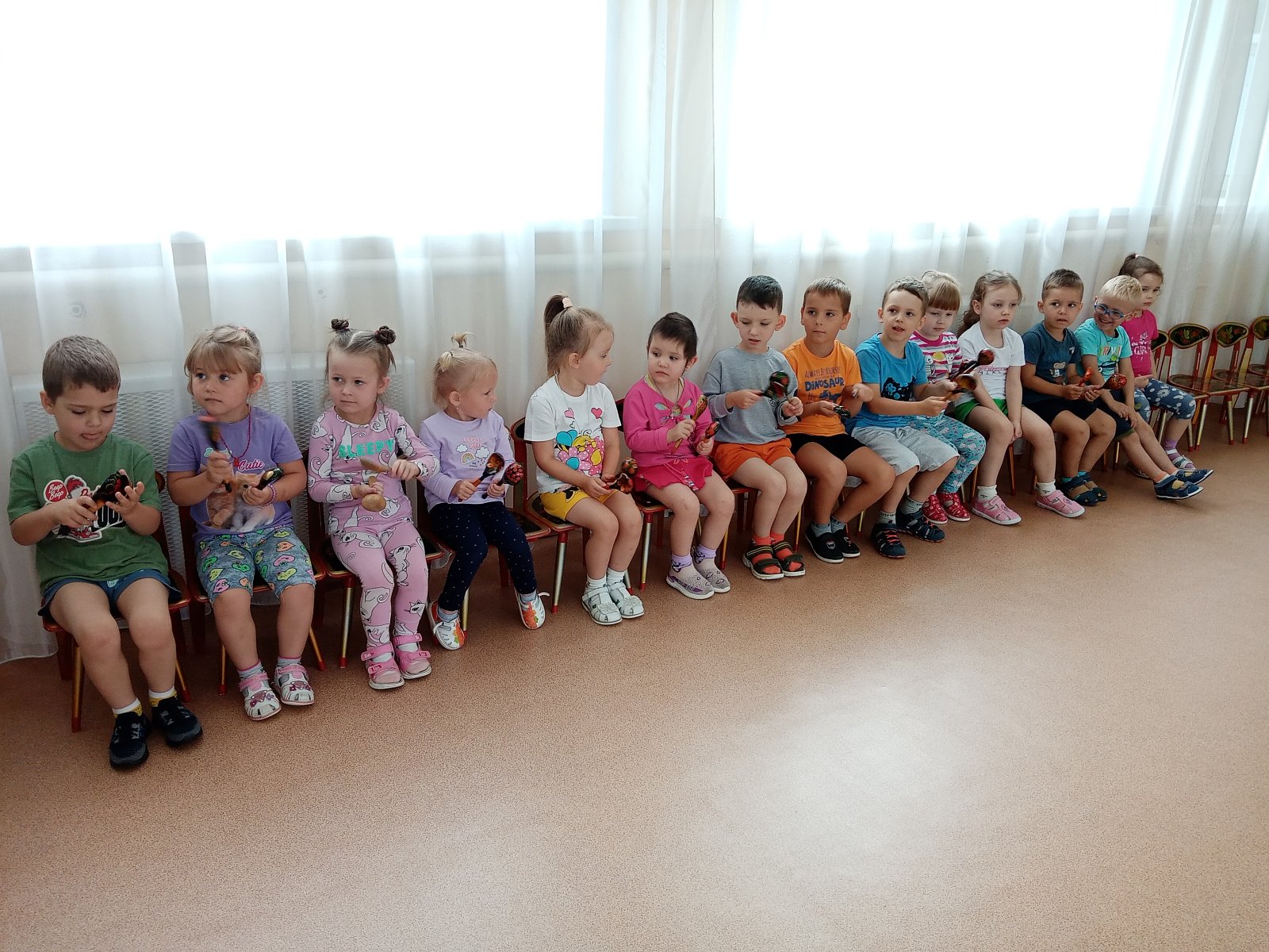 28 августа в детском саду «Теремок» пос. Первомайский прошел праздник «В мире музыки». Дети отгадывали загадки о музыкальных инструментах, играли на деревянных ложках, с бубном, посмотрели познавательный мультфильм о игре на музыкальных инструментах. Дети старшего возраста изъявили желание научиться играть на том или ином инструменте, что очень порадовало меня как педагога.
