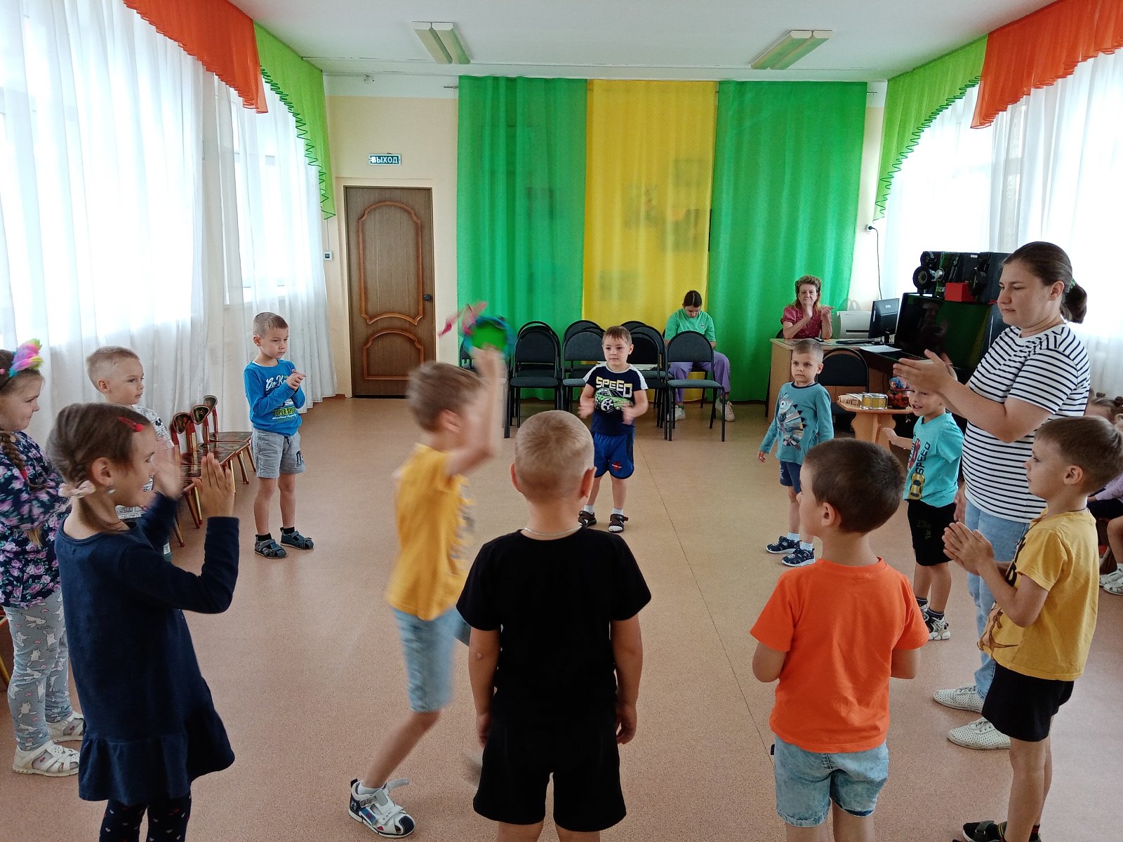 Задорная и веселая обстановка царила на празднике, дети пели, танцевали, участвовали в конкурсах, читали стихи о детском саде.