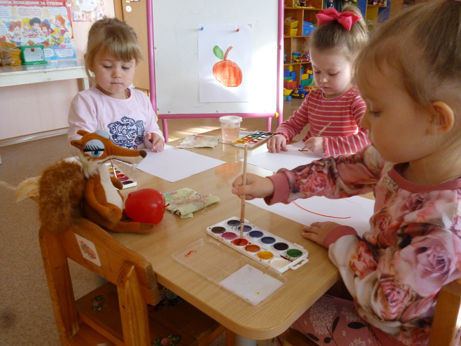 Ребята второй младшей группы «Ёлочка» детского сада №15 «Теремок» решили узнать о витаминах все, какие витамины нужны человеку для здоровья? Где находятся витамины? Вместе с воспитателем они рисовали морковь, яблоко и обсуждали, какие витамины в них содержатся. В конце тематической недели была организована выставка поделок из фруктов.