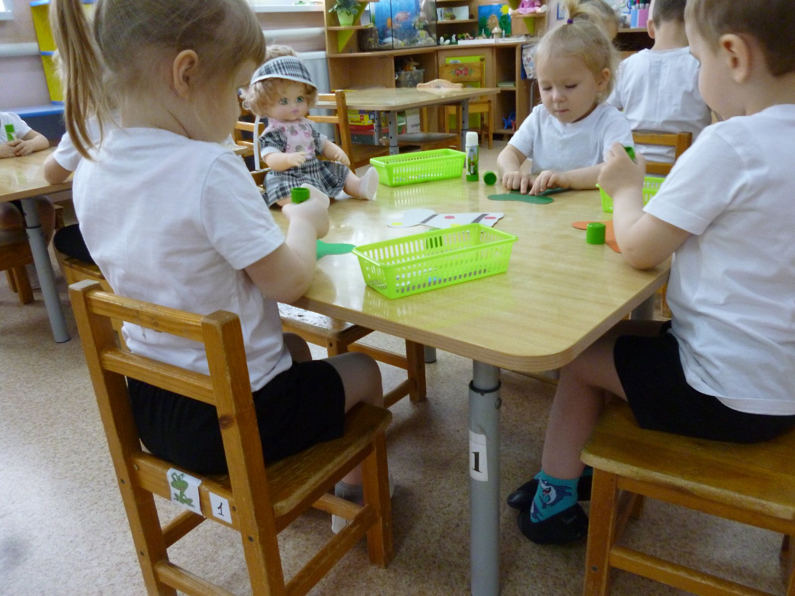Детям очень понравилось собирать детали одежды и обуви из нескольких частей и учить ежика правильно называть их. Малыши научились последовательному одеванию на прогулку, стараются каждый раз правильно назвать одежду и обувь. В этом им помогает кукла Катя с разнообразным набором одежды и обуви.