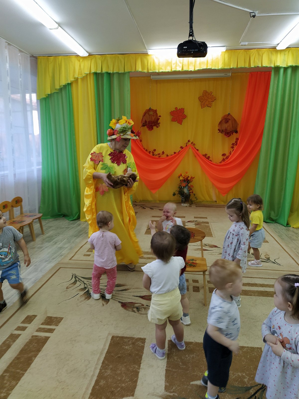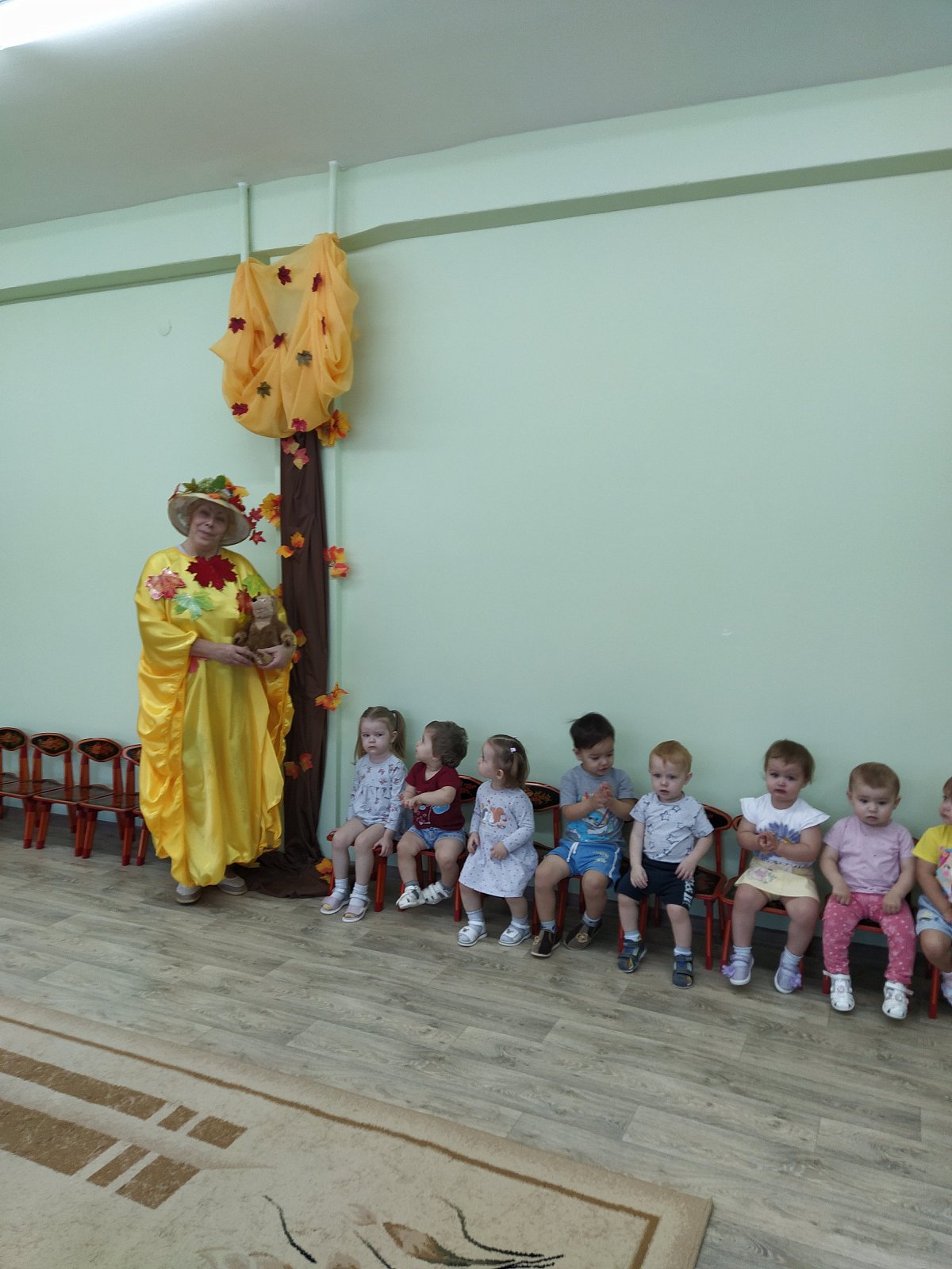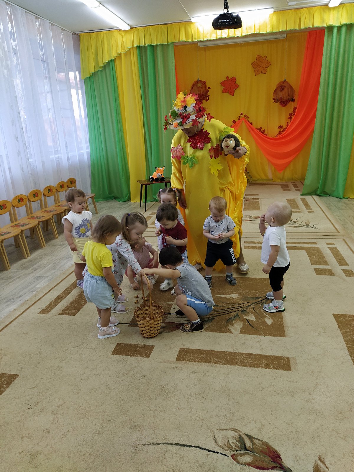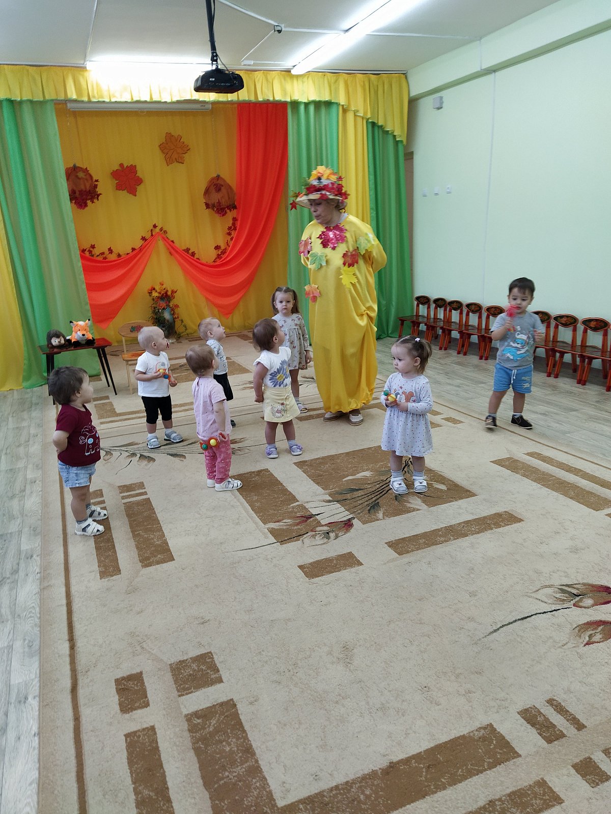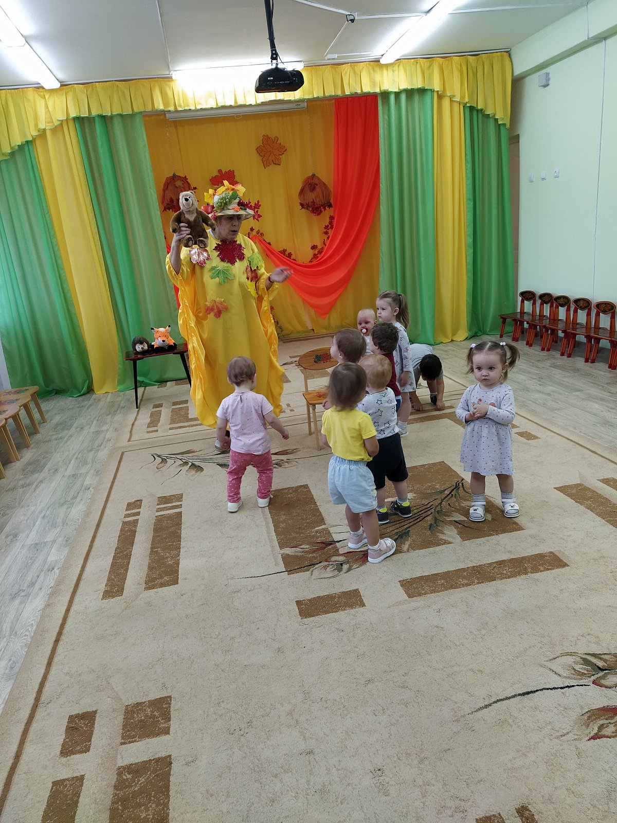 03.11. в МБДОУ д/с 15 «Теремок» (п. Новый) прошло развлечение «Подарки Осени» в группе «Пчёлка» (воспитатель Черныш Е.Н.) Дети вошли в зал, рассматривали красивое осеннее убранство. Очень понравились кленовые листики, с которыми они потанцевали под красивую музыку. Осень принесла подарки. Среди них были красавица Лиса, бурый Мишка, Ёжик и Зайчик. Лесные зверюшки пришли из леса на встречу с малышами. Было весело с ними танцевать и играть. Развлечение прошло в хорошем темпе, что позволило предотвратить утомляемость детей. Этому способствовала разнообразная смена деятельности. Дети вели себя активно, непринуждённо. Нагрузка соответствовала возрасту. Детишки получили удовольствие, положительный и эмоциональный настрой.