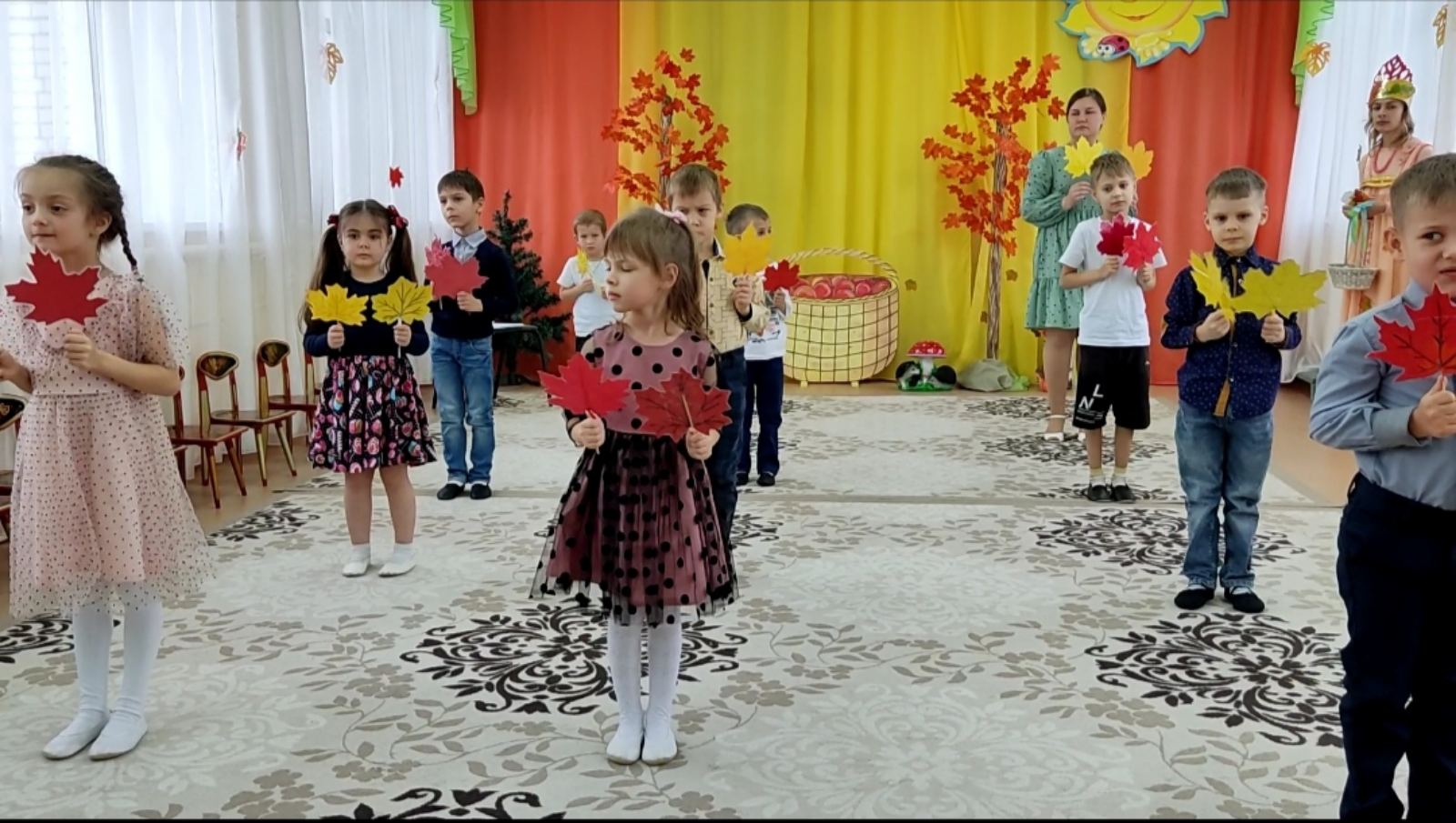 На празднике дети пели песни, исполняли танцы, играли в веселые игры, отгадывали осенние загадки, рассказывали стихи. А самым ярким и запоминающимся эпизодом стал сюрпризный момент – Осень принесла гостинцы- вкусные грибочки.