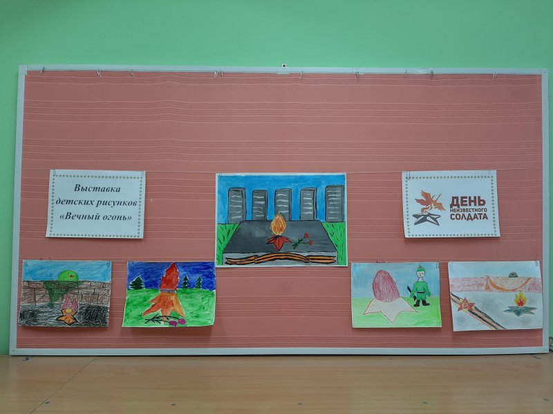 С воспитанниками была проведена беседа «День Неизвестного солдата», а также организована тематическая выставка рисунков «Вечный огонь».