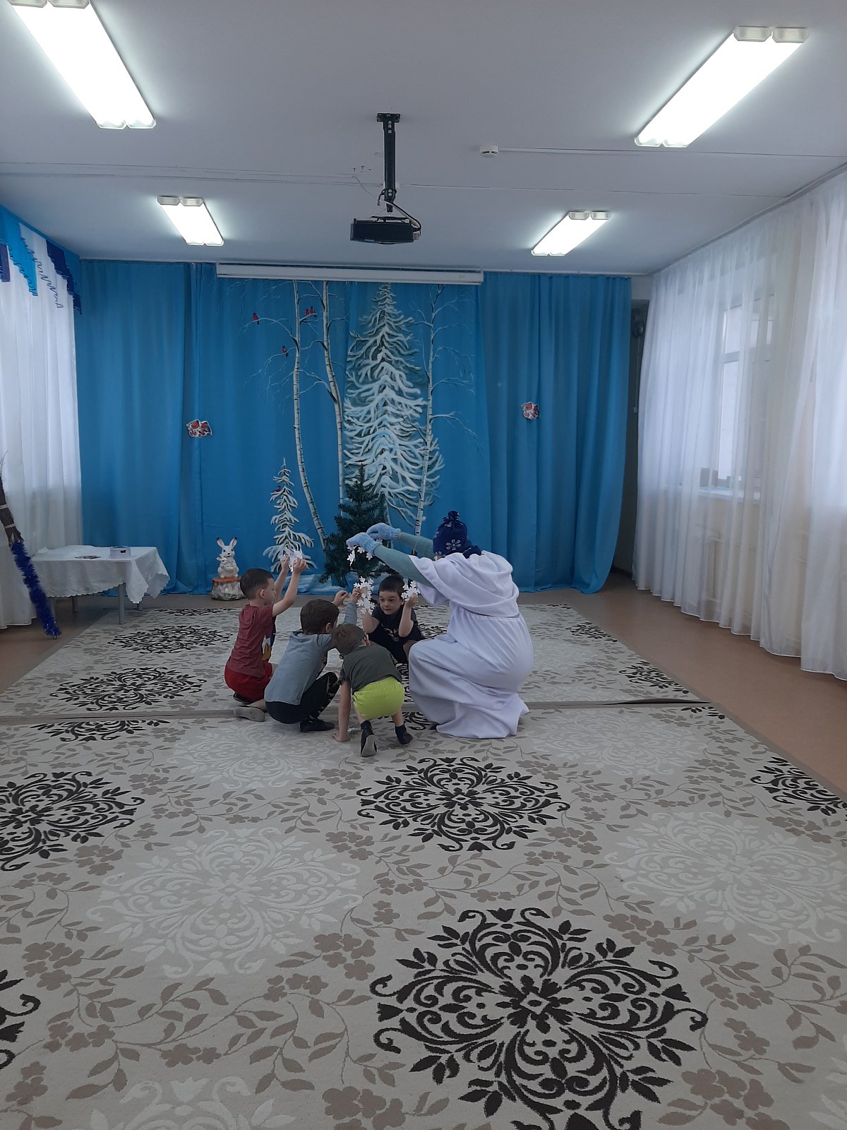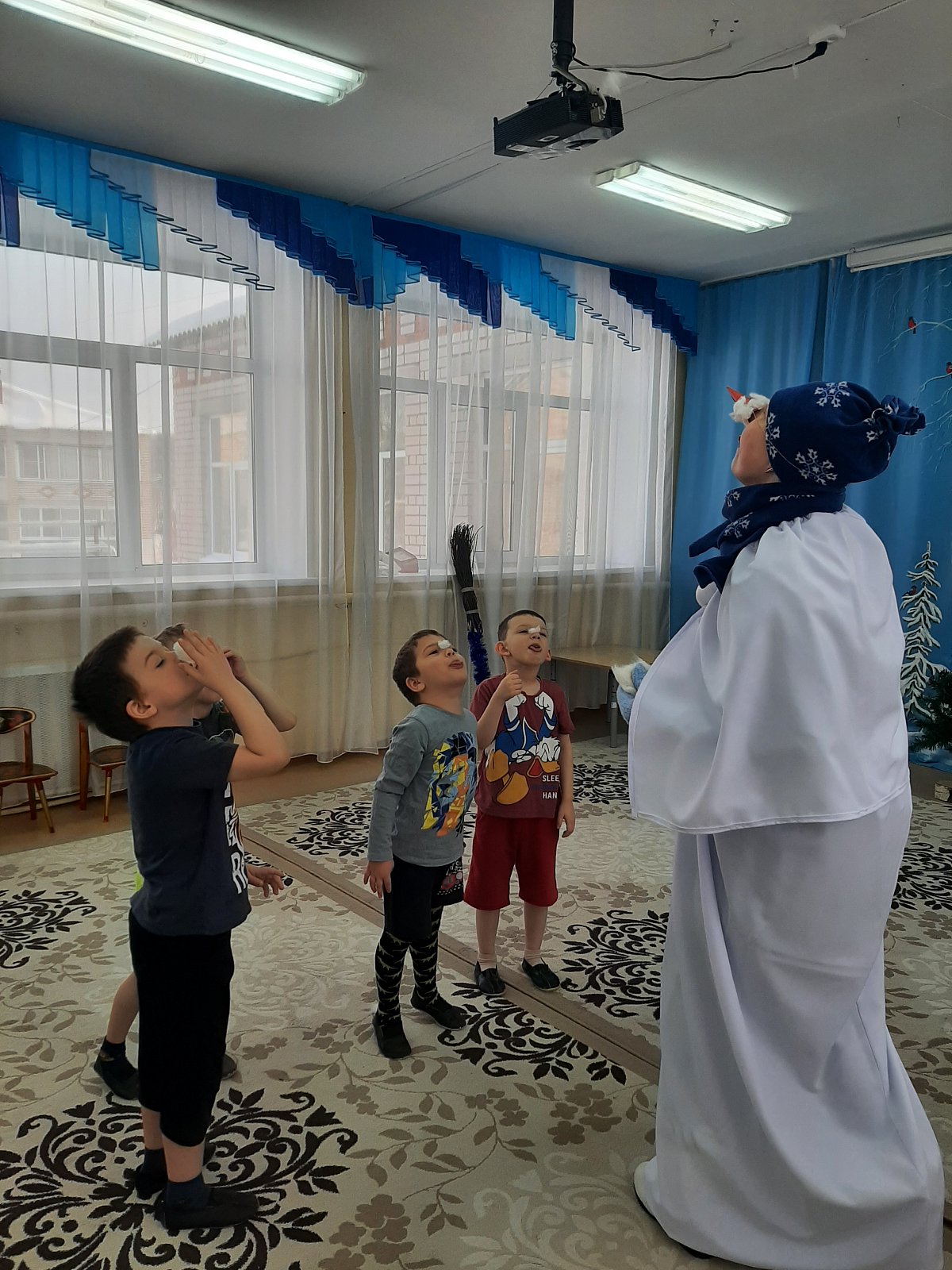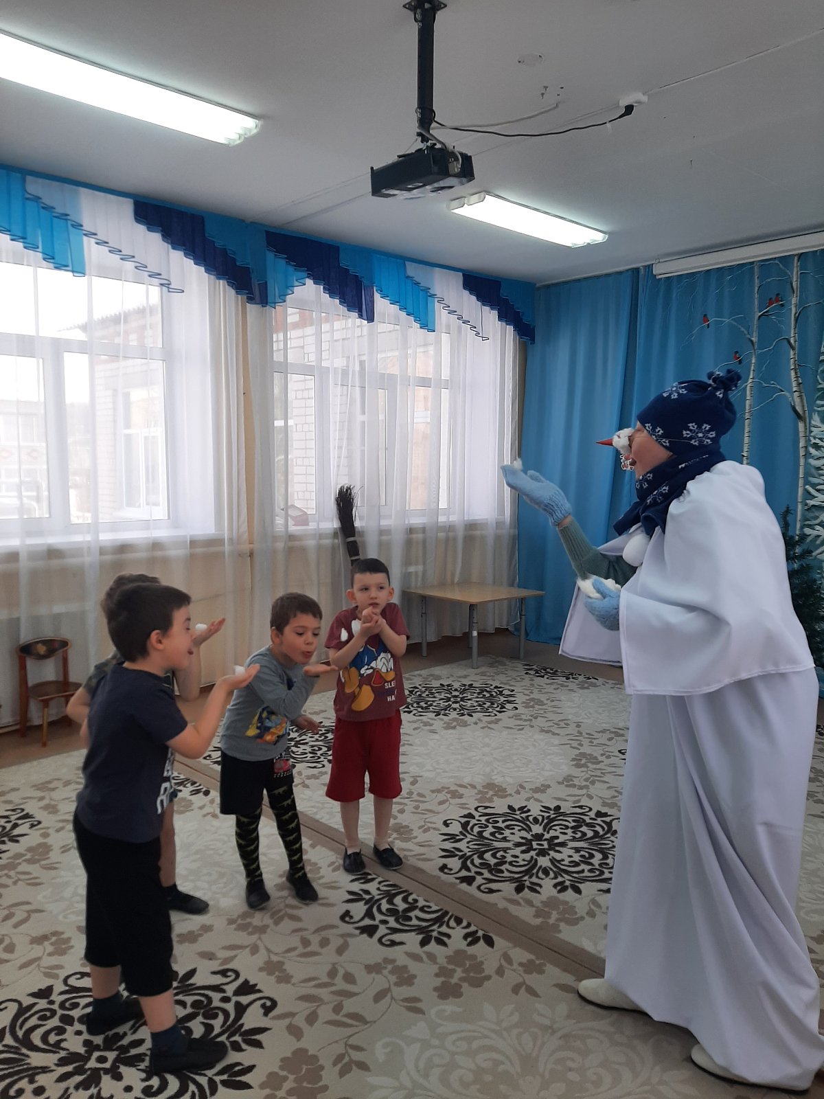 Ребята были вовлечены в удивительный мир сказки, в котором оказались по приглашению Снеговика-Шутника. На протяжении всей недели дети наблюдали за изменениями в природе во время прогулок, за снегом, выясняли и уточняли его свойства, рассматривали зимние иллюстрации, иллюстрации птиц и диких животных, слушали чтение художественной литературы и музыкальных произведений с зимней тематикой и т.д. Этот запас знаний помогал быстро отвечать на вопросы и загадки Снеговика.