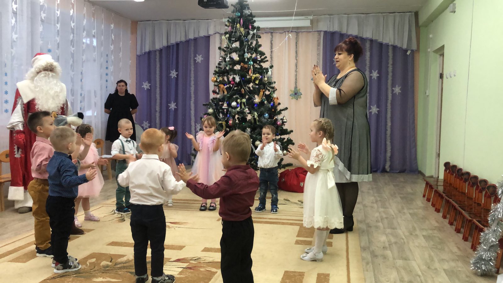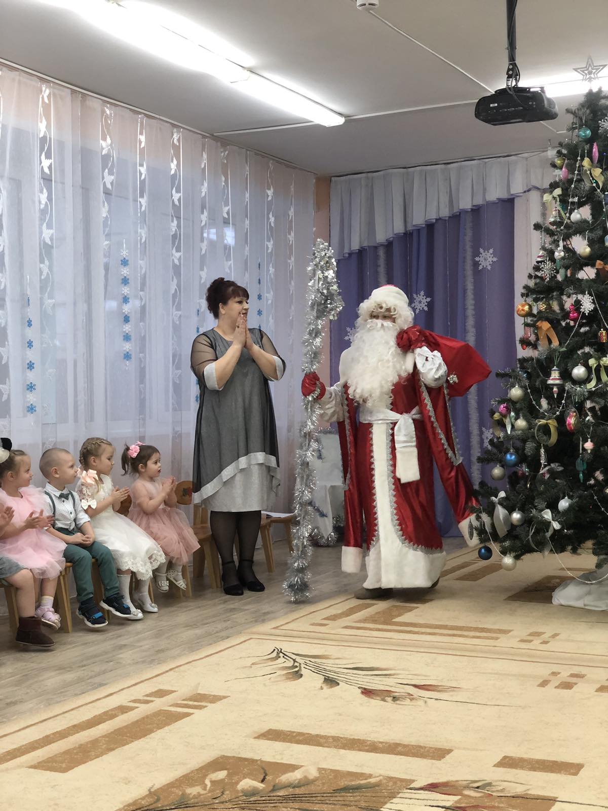 22.12. в группе «Сказка» (воспитатель Федорова Н.Ю.) прошел новогодний утренник «Весёлый Новый год!»Новый год – самый любимый, добрый, сказочный праздник, который ждут в каждом доме, в каждой семье. Но никто так искренне не ждёт новогоднего чуда, волшебных превращений и приключений, как наши дети.Проведённый утренникокунул всехв сказку. Дети встретились со Снеговиком, который смешил детишек, здороваясь с ними то за носики, то за ушки, то за коленочки… Весело играли в снежки со Снеговиком, с удовольствием «лепили» снеговика, показывая всё в движениях. Главному гостю праздника – Деду Морозу, дети читали стихи, пели песни про елочку, танцевали, играли с дедушкой в весёлые игры «Заморозь!», «Догони рукавицу» и другие. Радостным завершением праздника, конечно, были подарки от Деда Мороза.Во время новогоднего представления царила атмосфера праздника, волшебства, чувствовался позитивный эмоциональный настрой воспитанников и их родителей.