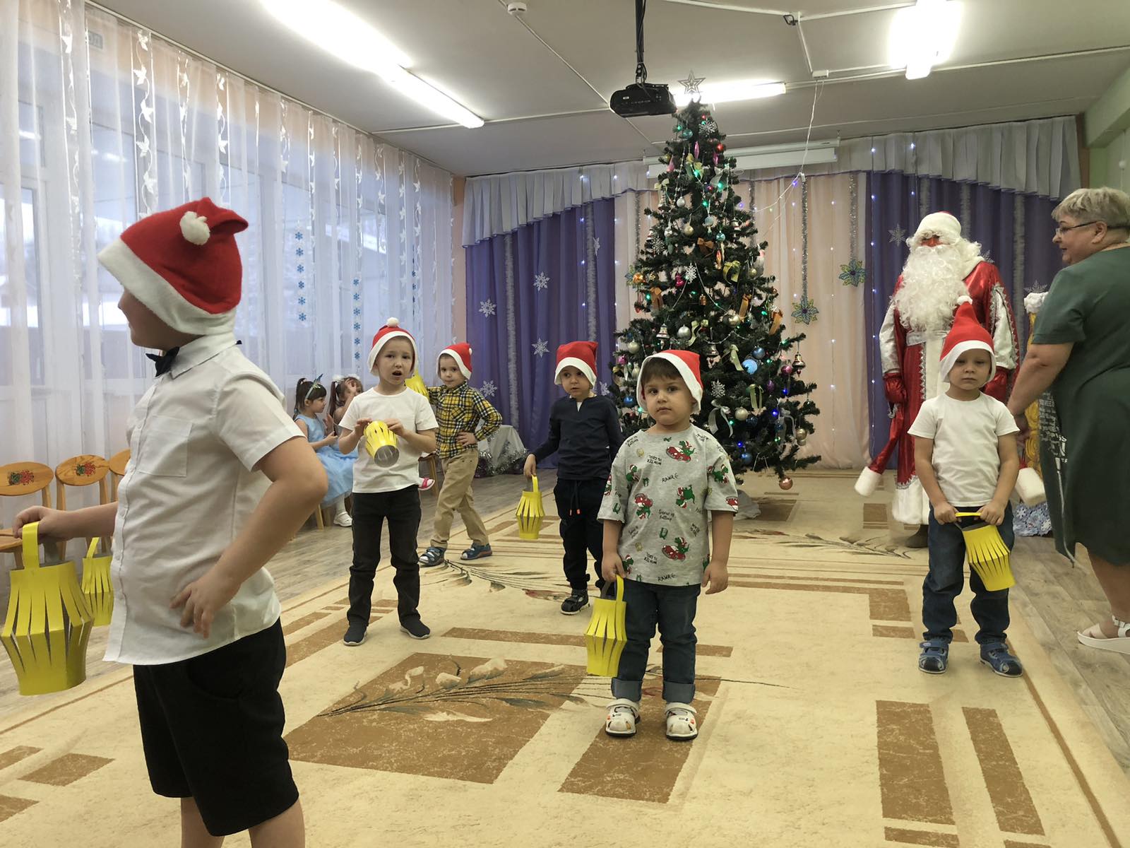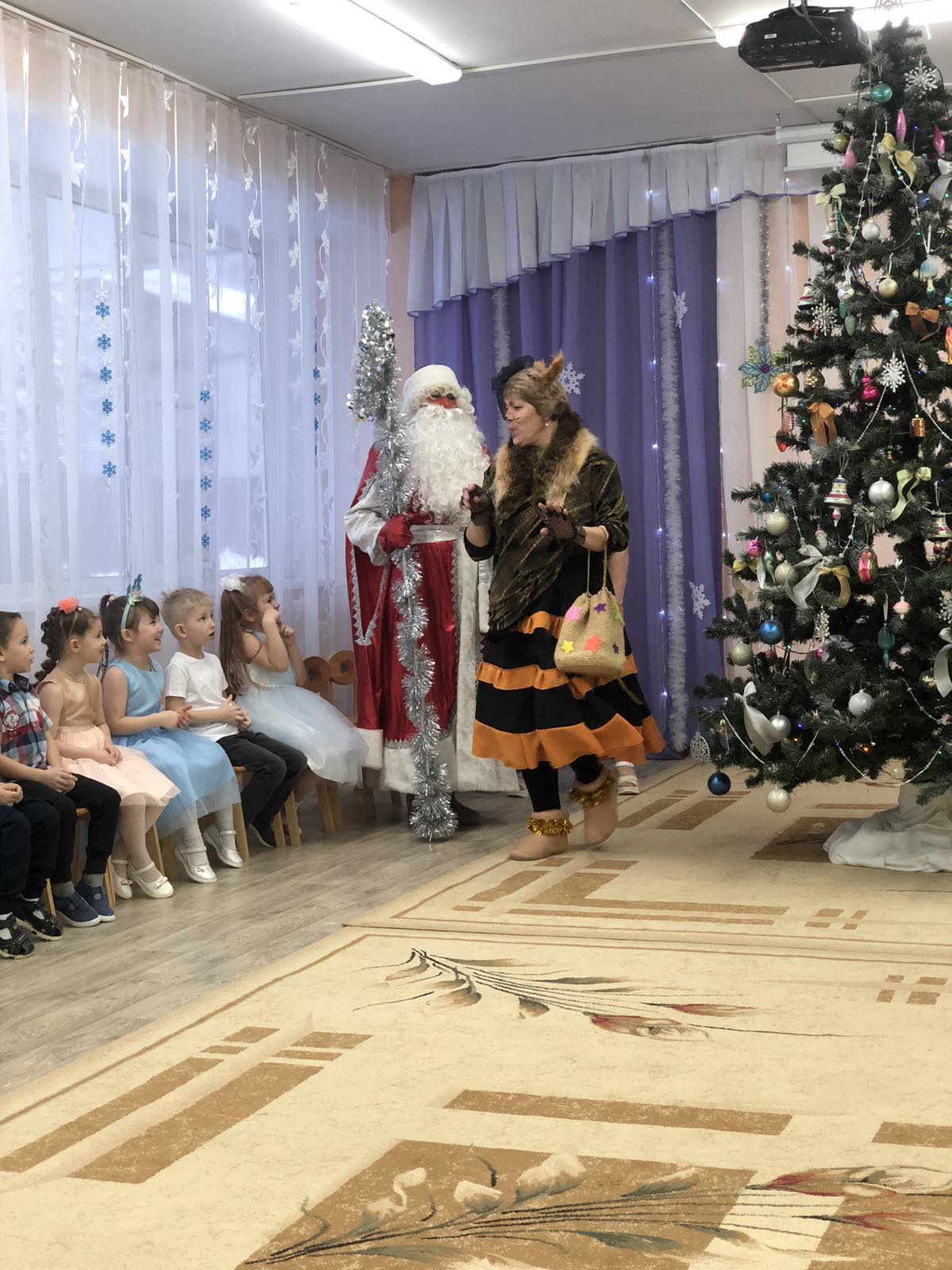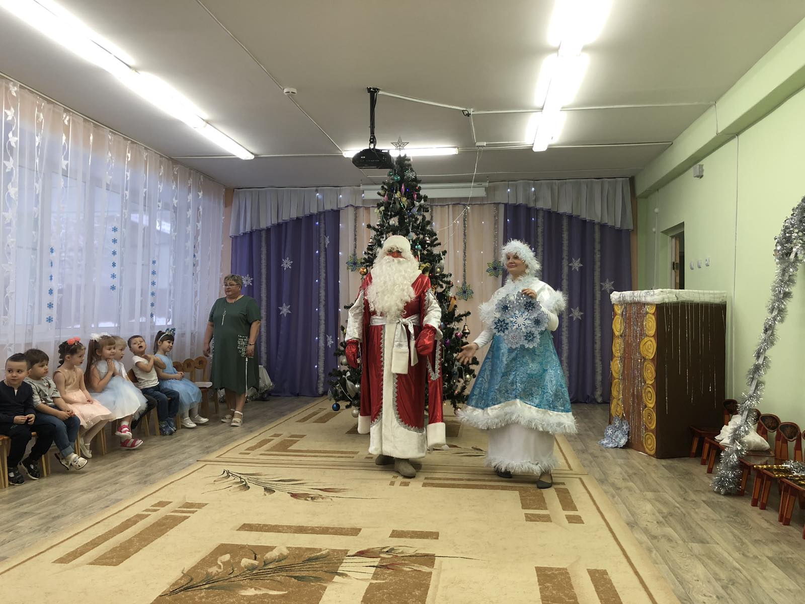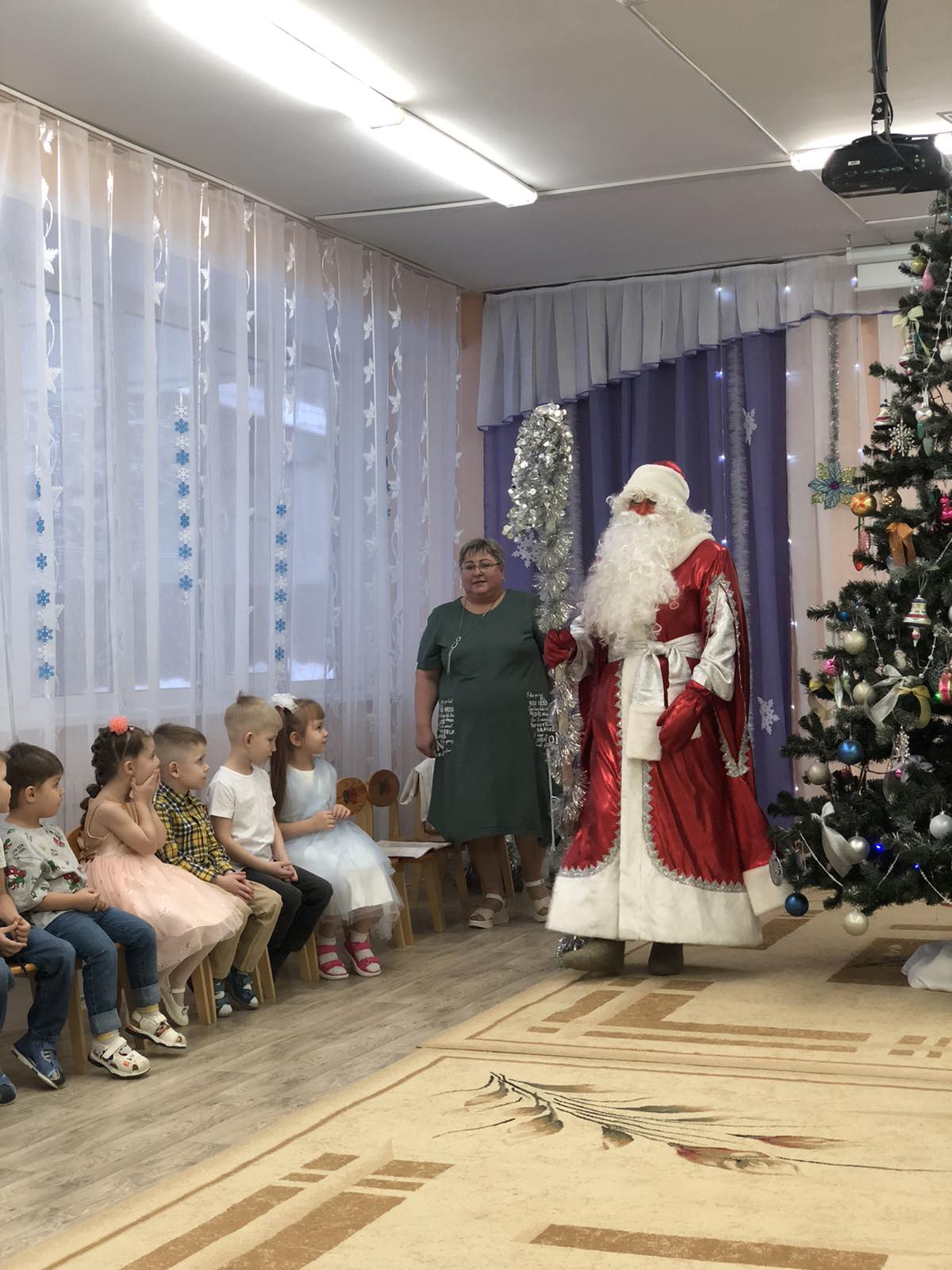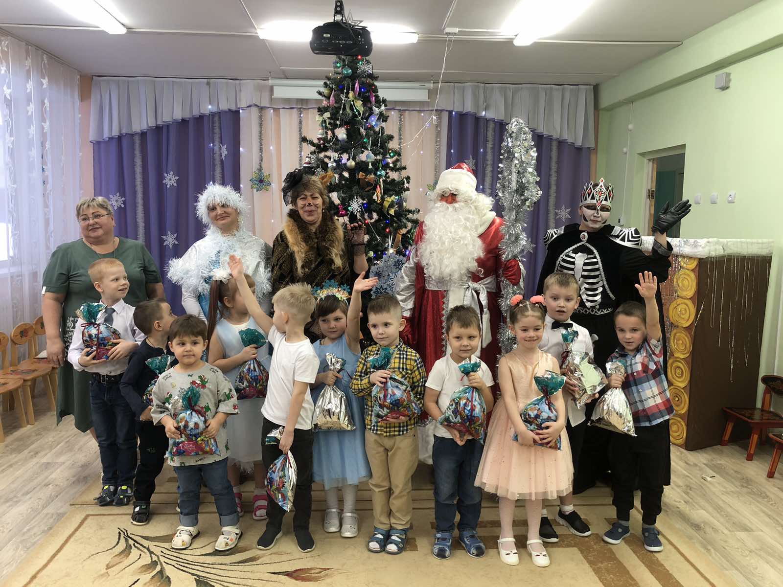 27 декабря в группе «Колокольчик» (воспитатель Болдыш Е.А.) состоялся новогодний утренник для детей. Дети, вбежав в зал, встретились с красавицей – ёлочкой. Радость и восторг были на лицах детей от праздничного убранства зала. А когда огоньки на ёлочке зажглись, - дети пели песни, водили хороводы, читали стихи. В гости пришла Снегурочка. Дети рассказали ей о зимних забавах, показали – как нужно лепить снеговика. А Снегурочка, в ответ, подарила красивую снежинку, - подарок от Деда Мороза. Но случилось непредвиденное обстоятельство – появился Кощей, разорвал снежинку и украл Снегурочку в своё Кощеево царство. Дети постарались вернуть Снегурочку. Конечно, в этом им помог Дед Мороз своим волшебным посохом. А дети очень старались своими выступлениями – танцами, песнями, играми. Всё получилось! Как в любой сказке, - добро побеждает зло. Снегурочка была спасена. Дед Мороз угостил ребят сладкими подарками. В конце праздника ребята фотографировались со своими родителями у ёлочки и с персонажами утренника. Чудесный праздник удался на славу! С Новым годом!