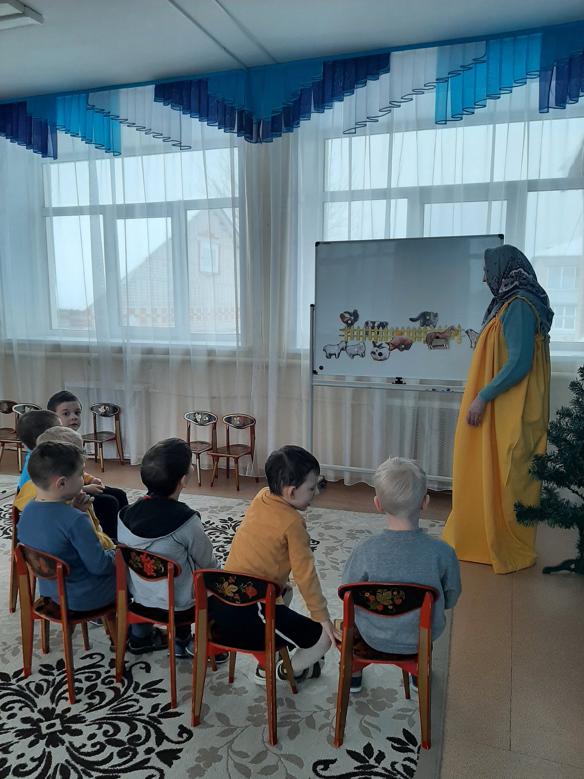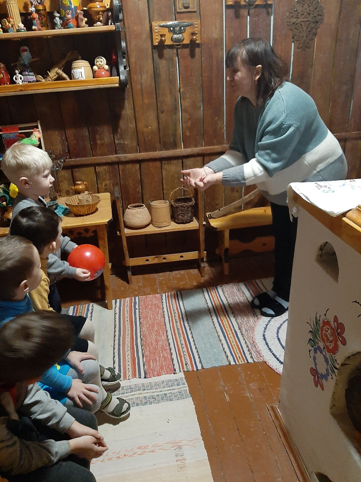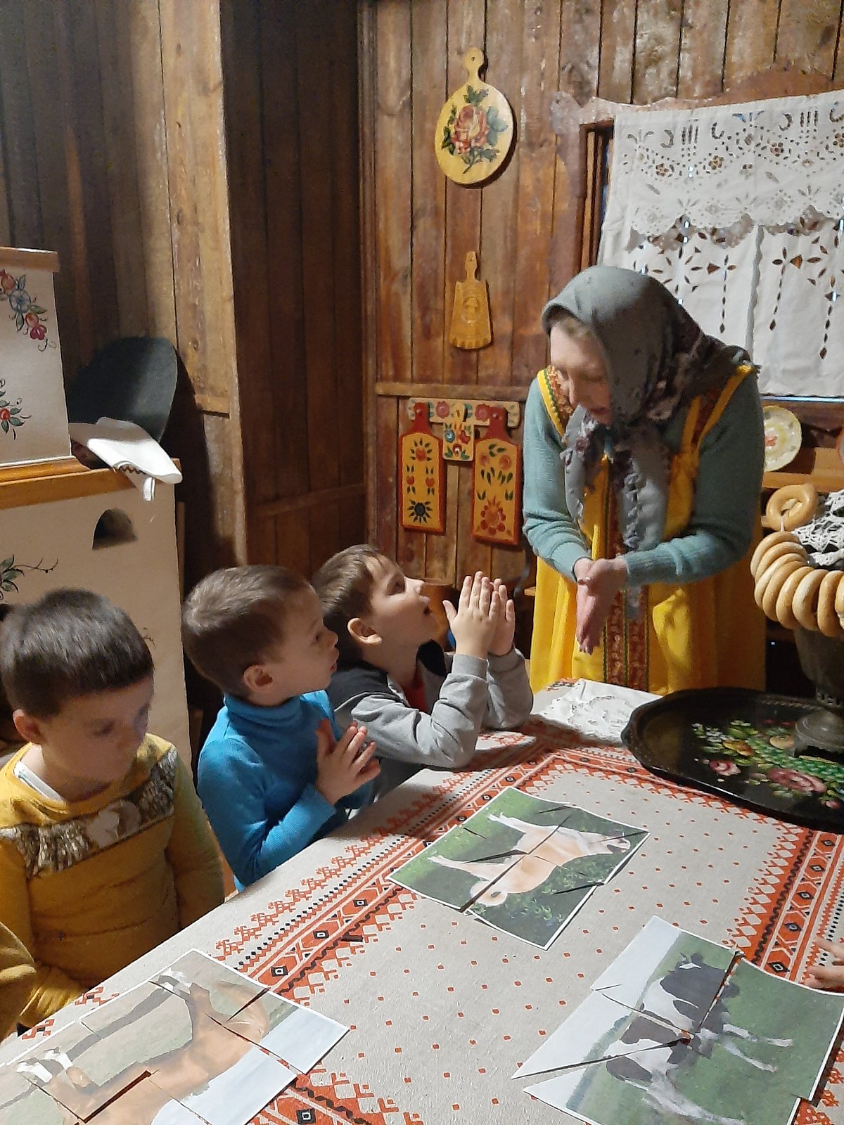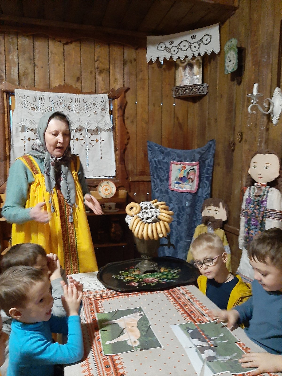 Воспитанники группы попали в русскую избу в гости к Хозяюшке и узнали, что с её подворья убежали животные. Ребята вместе решили помочь и найти всех питомцев. Таким образом, формировались навыки сотрудничества, взаимопонимания, доброжелательности, самостоятельности и бережного отношения к животным.
