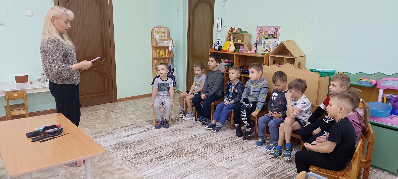 Эта неделя в группе «Ручеек» была посвящена теме «Профессии». Мы с детьми вспомнили и закрепили знания о профессиях и их значимости. Дети рассказывали о своих мечтах «Кем я стану в будущем». В течение недели проведены беседы о значимых профессиях: врач, учитель, повар, строитель, на занятии по художественно-эстетическому развитию дети лепили врача. Играли в сюжетно - ролевые игры «Поликлиника», «Супермаркет». Читали книги на тему «Профессии», рассматривали иллюстрации и альбомы.В свободное время читали много художественной литературы по теме, рассматривали иллюстрации, играли в дидактические игры. В завершении недели в гости к дошколятам была приглашена мама Матвея, Лариса Юрьевна, которая рассказала о своей профессии парикмахера.Во время беседы дети узнали много интересного о профессии парикмахер.