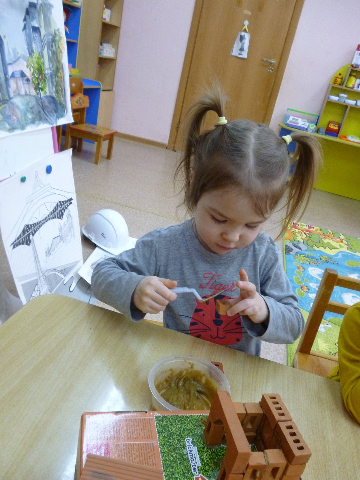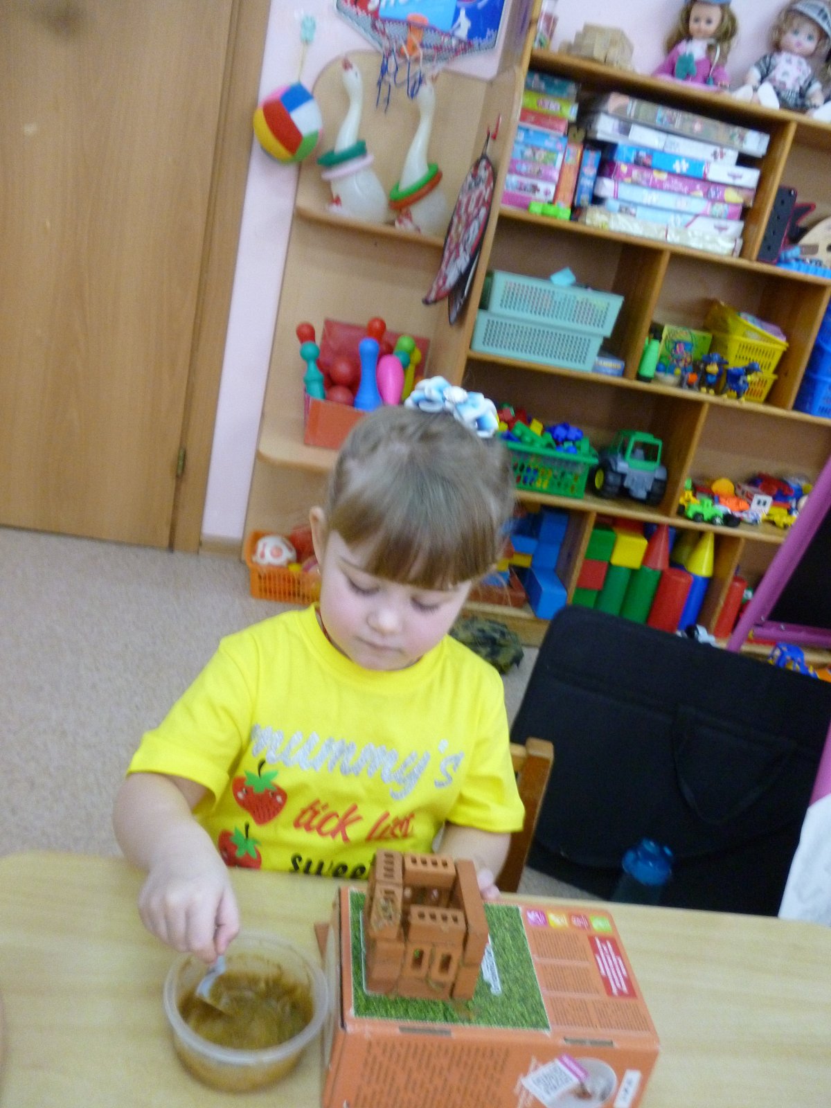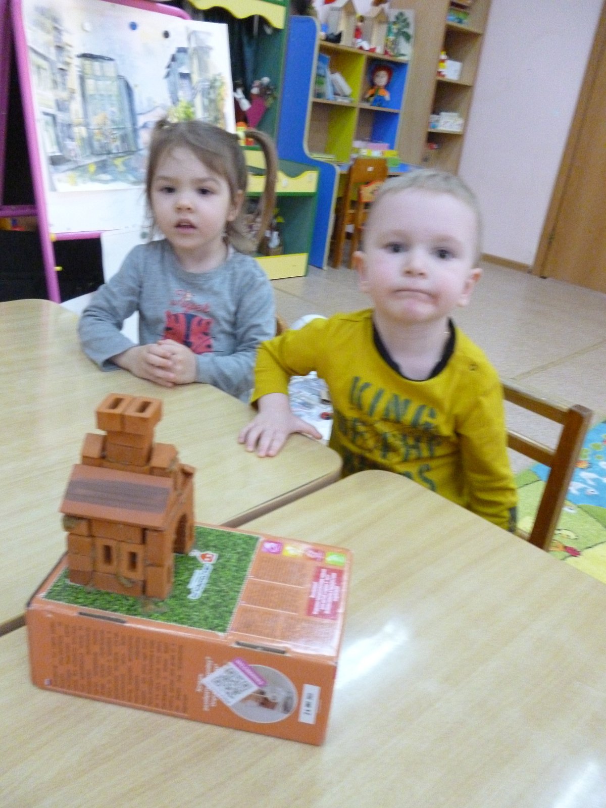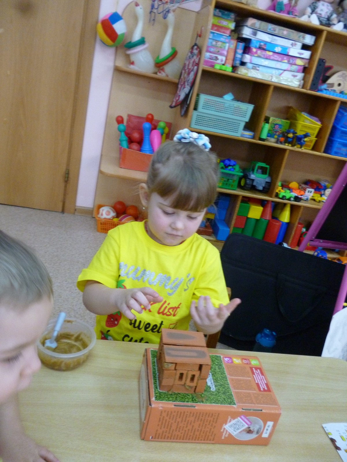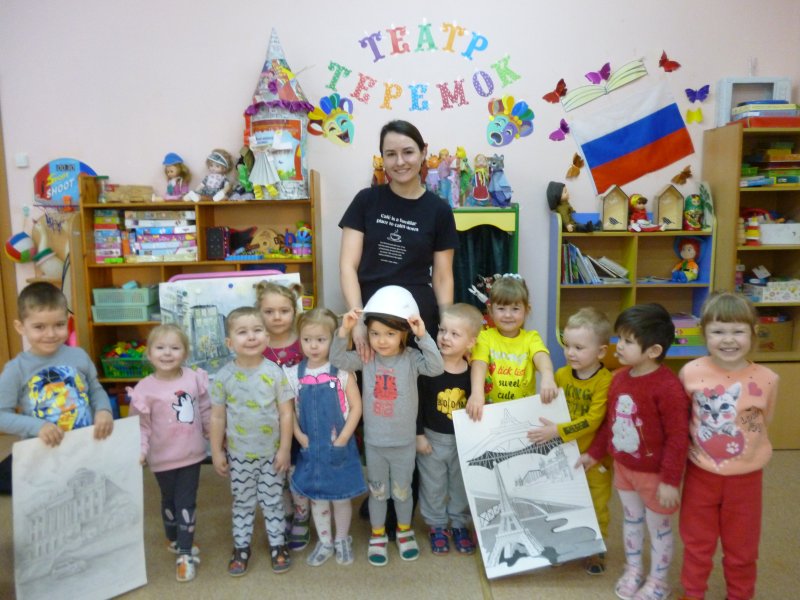 Мама Челдышкиной Мирославы рассказала ребятам о профессии «Архитектор». Все вместе они построили настоящую избу.