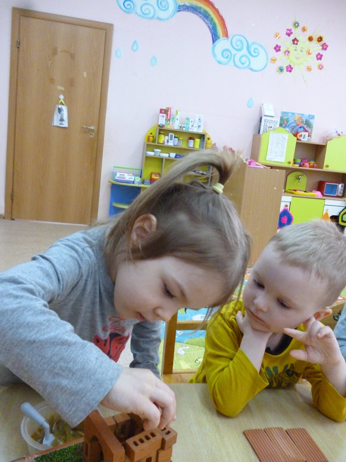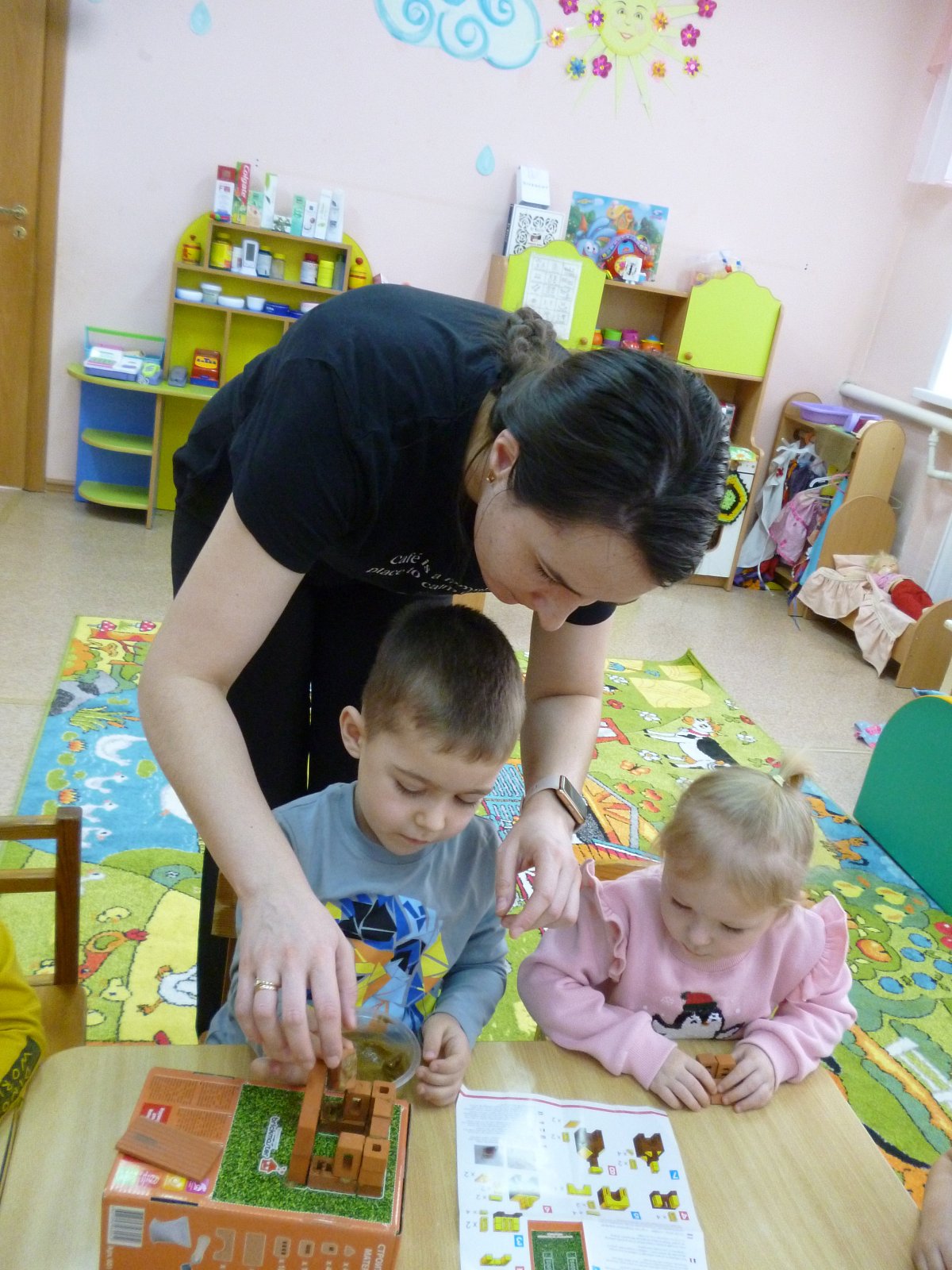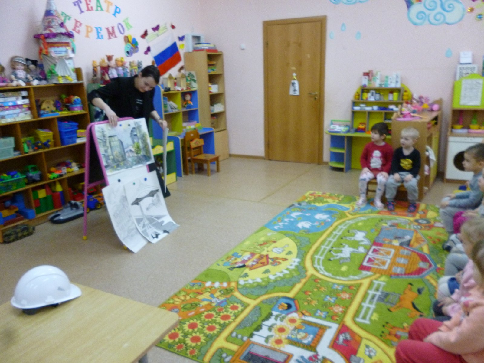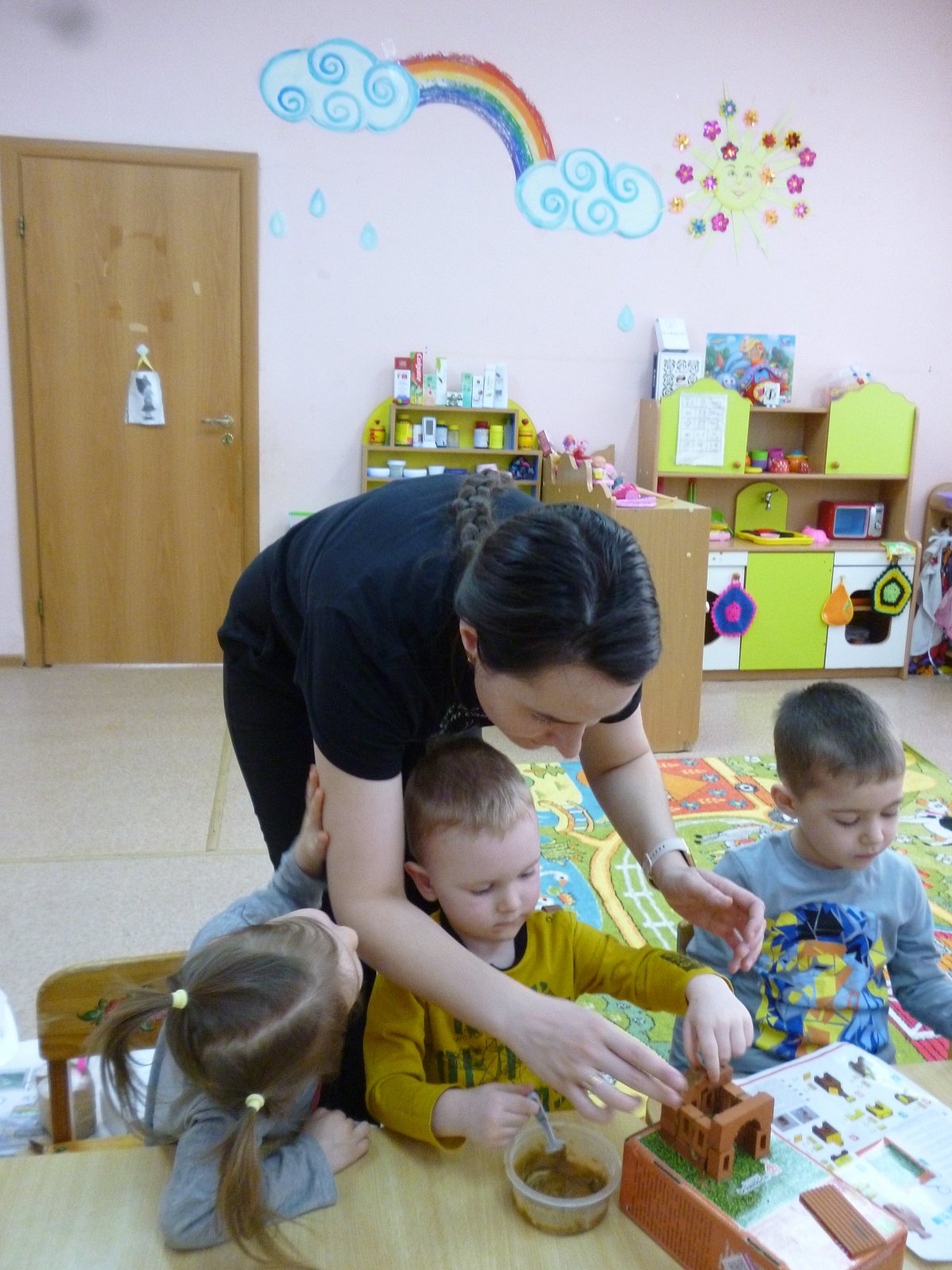 Мама Челдышкиной Мирославы рассказала ребятам о профессии «Архитектор». Все вместе они построили настоящую избу.