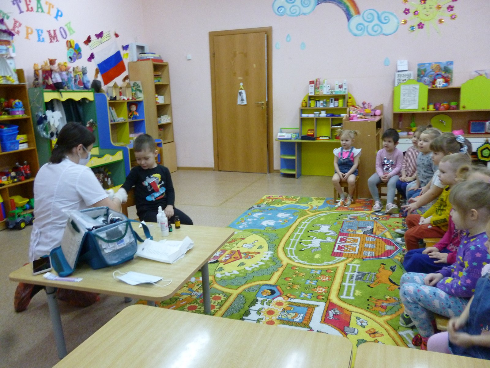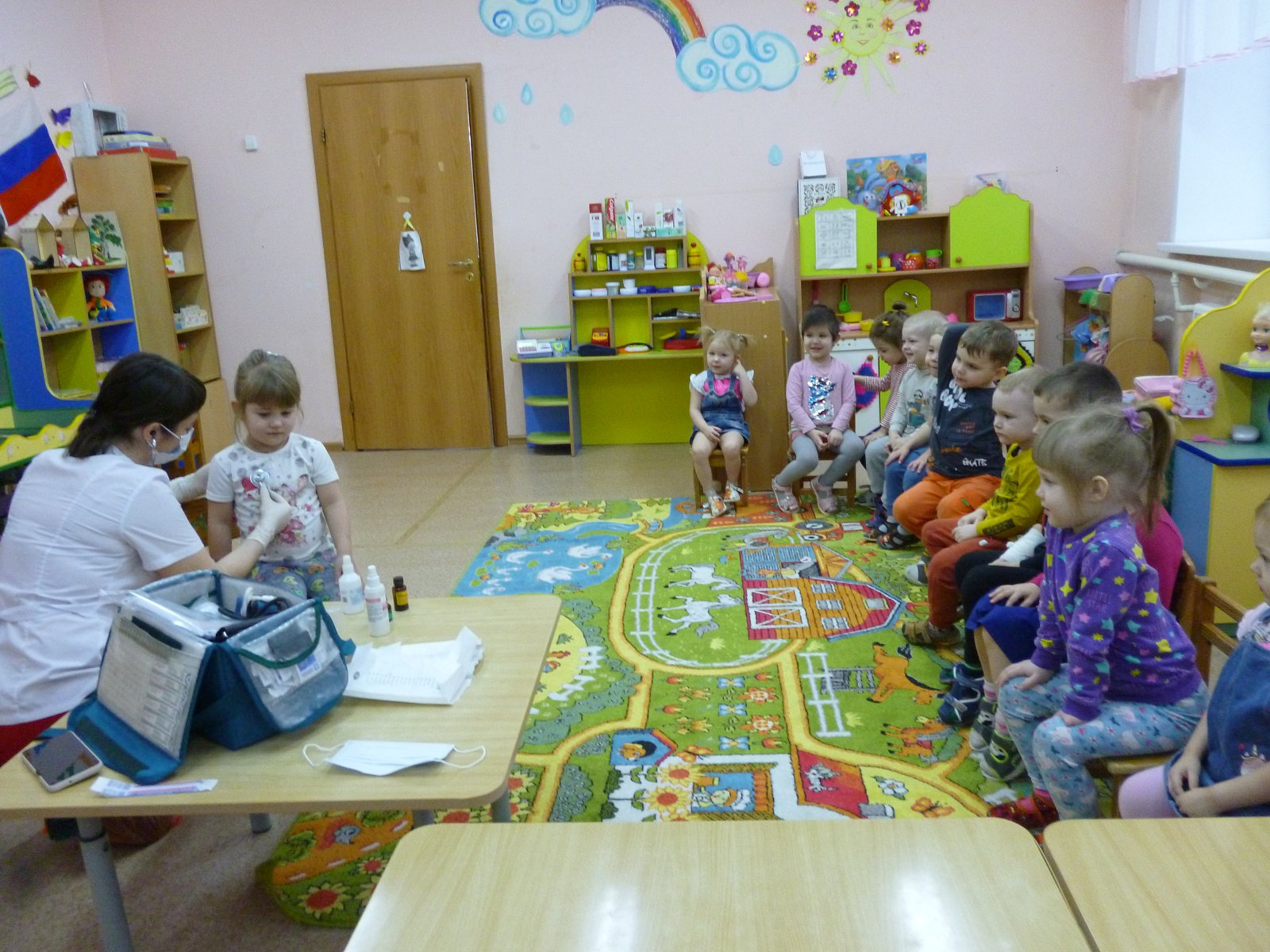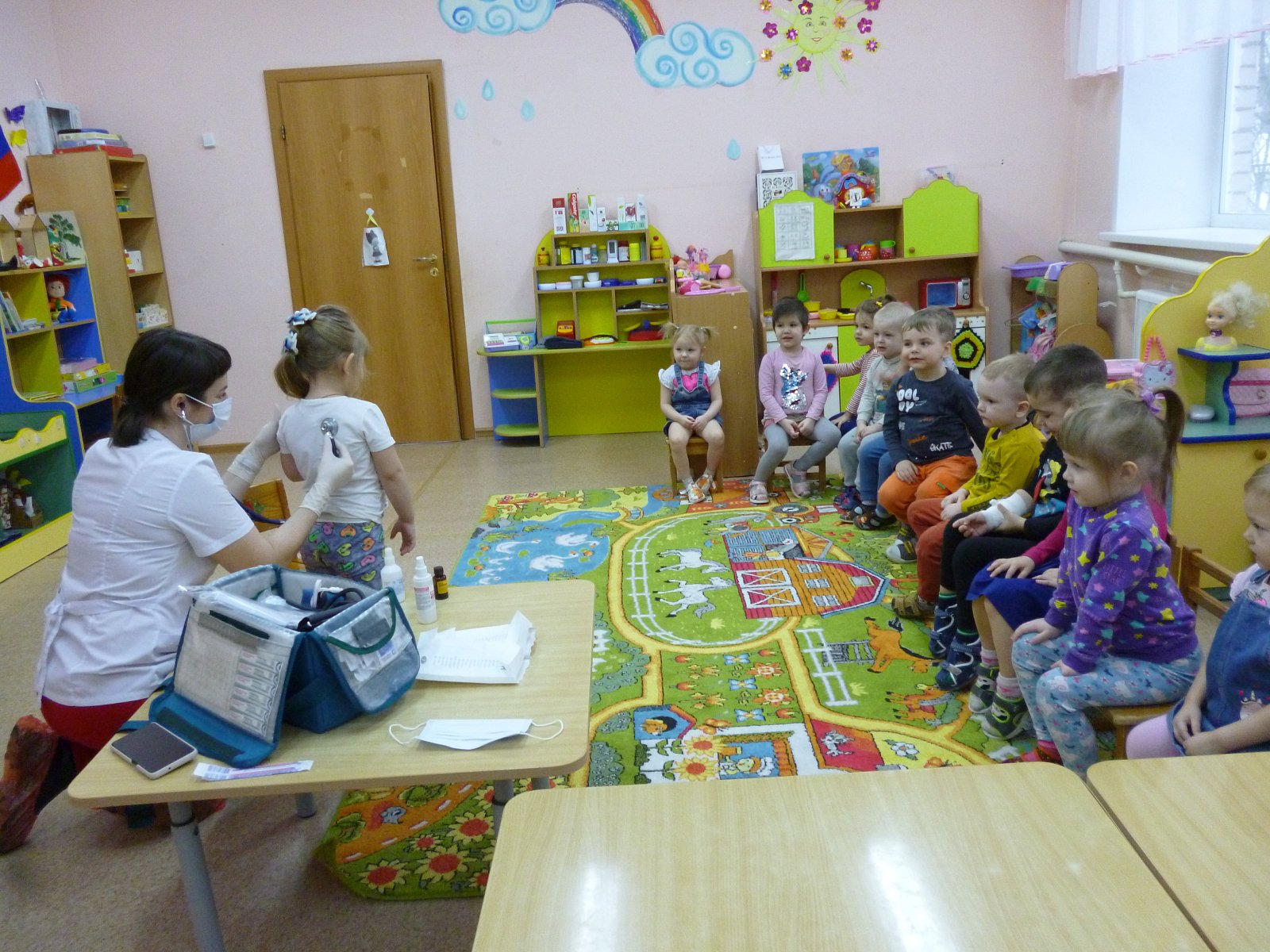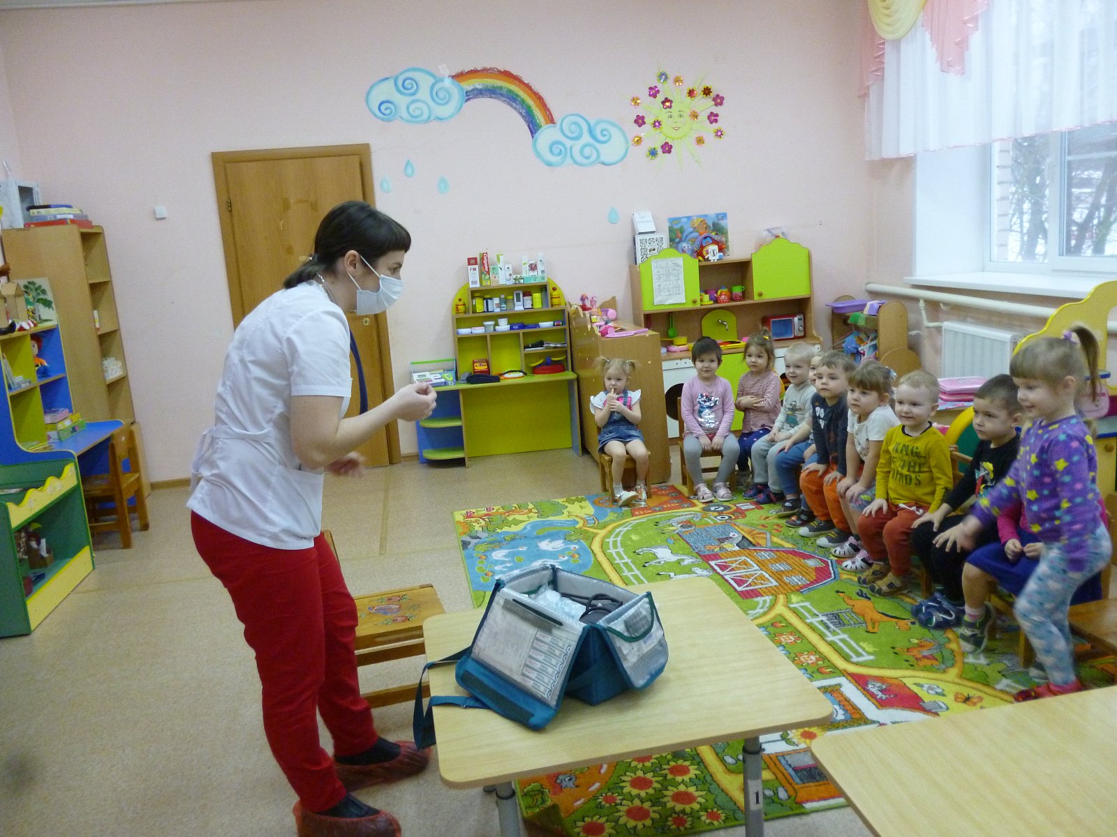 Активное участие приняли и родители. Мама Киселева Алексея подготовила для ребят небольшое выступление о профессии «Врач». Дети с вниманием слушали рассказ, рассматривали препараты, инструменты.