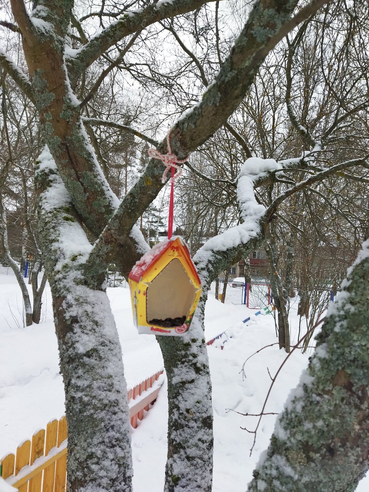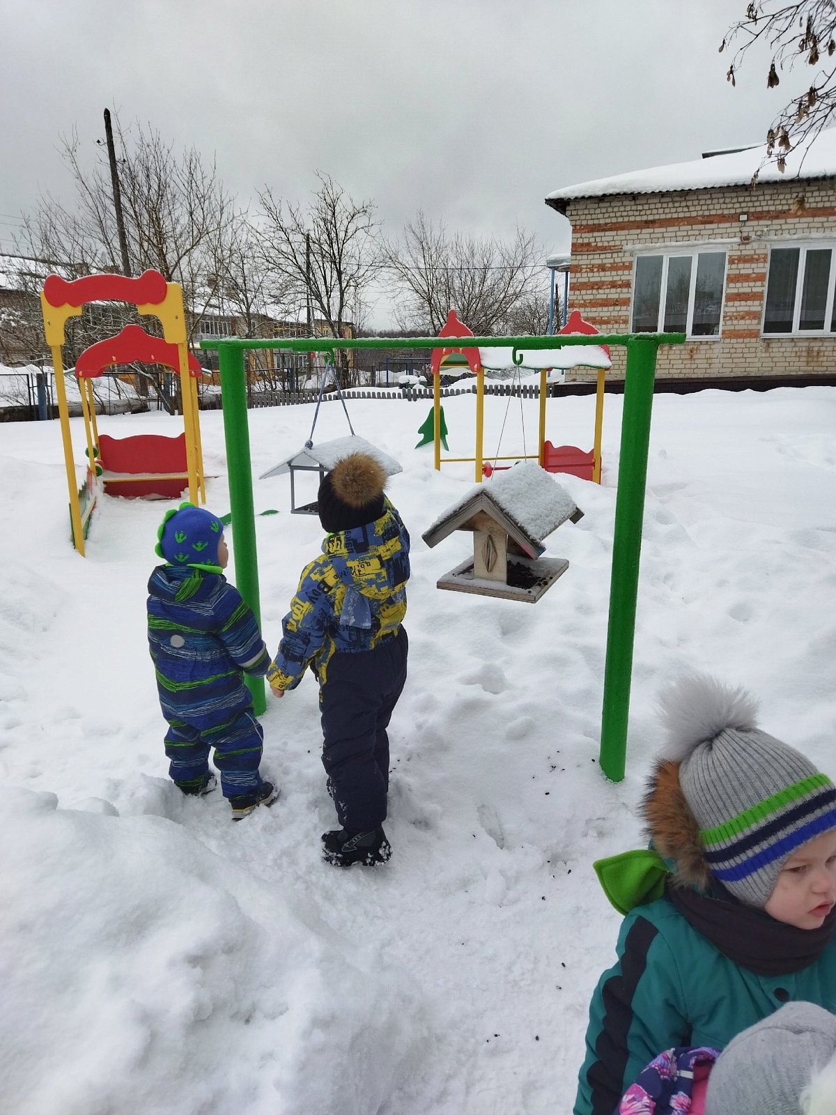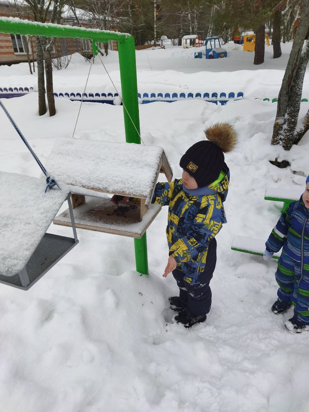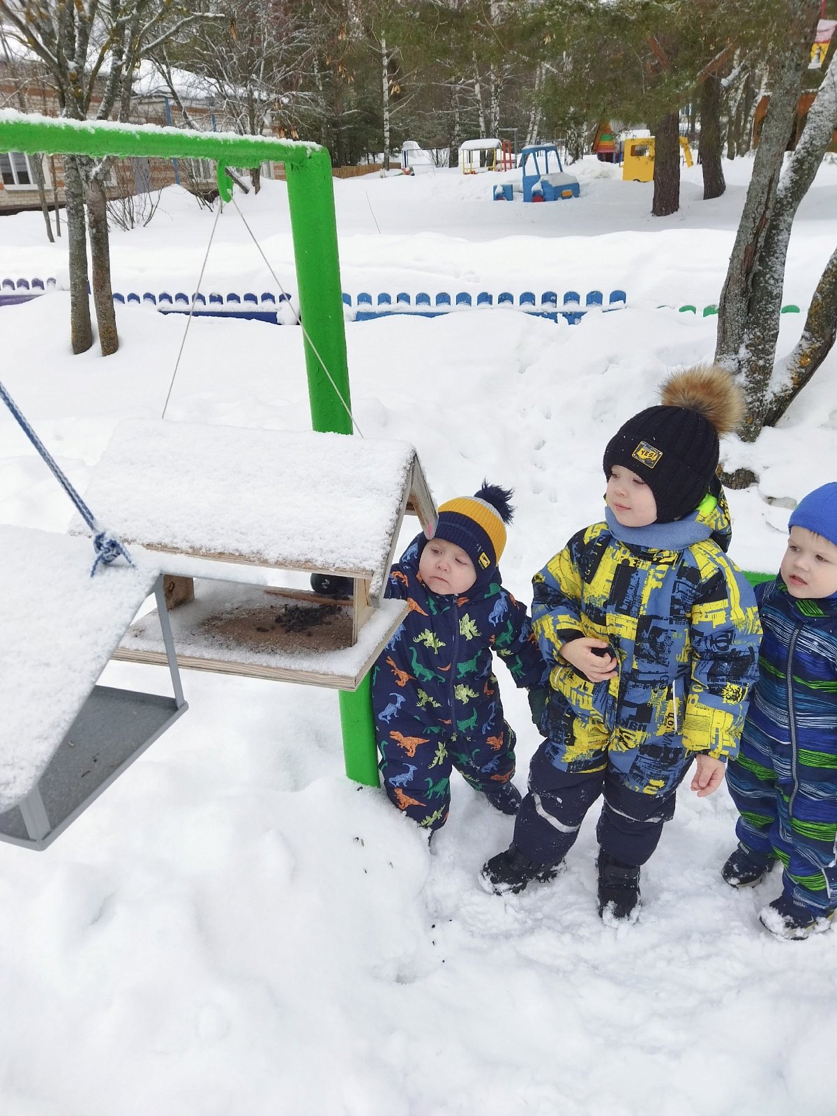 Теперь перед каждой прогулкой ребята проверяют кормушки, чистят их от снега, поправляют и насыпают в них пшено, крошки хлеба, семечки. Воробьи и синицы очень рады этому, слетаются со всех сторон, они частые гости в нашей «птичьей столовой».