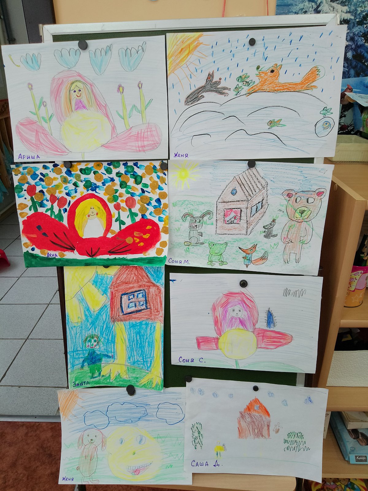 Старшие дети рисовали на тему: "Моя любимая сказка", а малыши рассматривали книжки с яркими иллюстрациями.