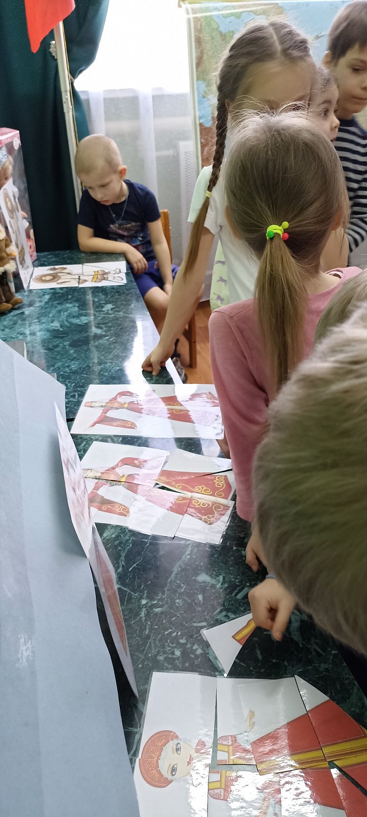 Интересное занятие по познавательному развитию«Какие народы живут в России» в рамках тематической недели «Россия мастерами славится»прошло 07 февраля встарше-подготовительной к школе группе «Ручеёк» МБДОУ детский сад № 15 «Теремок» п. Первомайский. Цель занятия былапознакомить детей с многонациональным составом населения России, воспитывать уважительные, дружелюбные чувства к людям разных национальностей. Ребята группы «Ручеёк» посетили новый центр патриотического воспитания, где и прошло занятие, которое провела учитель-логопед, зам. заведующего Е.Е. Быстрова. С большим интересом дети изучали физическую карту РФ, рассматривая горы и равнины, леса, реки и моря. Особое впечатление произвела необычная карта нашего Ковровского района, на которой ребята находили знакомые поселки. Также Е.Е. Быстрова познакомила дошколят с изображением людей в национальных костюмах и куклами, одетыми в национальные костюмы. Вместе с детьми нашли на большой карте России территории проживания разных национальностей и отметили их, разместив «жителей». Этот сложный для дошкольников материал закрепили физкульт минуткой «Юрта, юрта-круглый дом» и дидактической игрой «Национальные костюмы народов России». Ребята с большим интересом рассматривали атрибуты центра, много для них ещё осталось интересного и неизученного. Теперь наши Любознайки ждут очередного занятия, которое пройдет на следующей неделе.