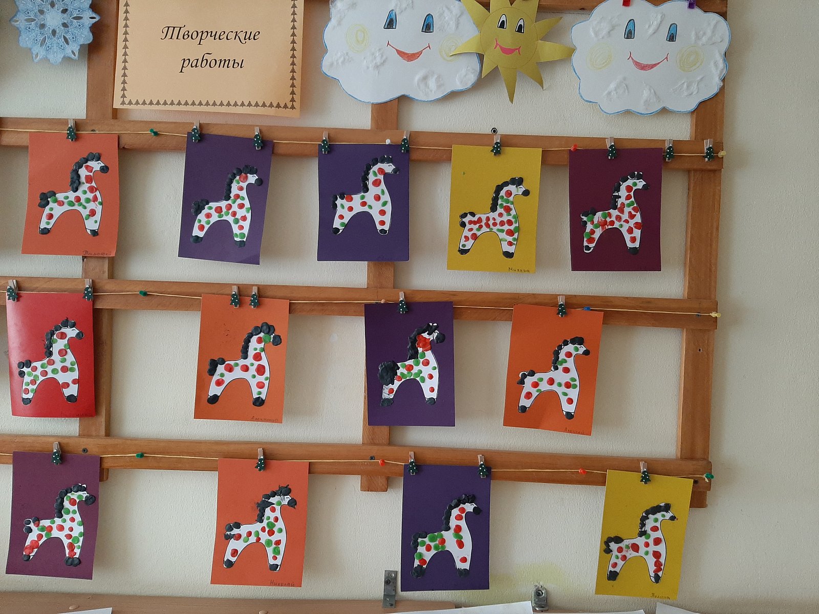 Занимались художественным творчеством: лепка «Украсим дымковскую лошадку», рисование «Украсим дымковскую игрушку».
