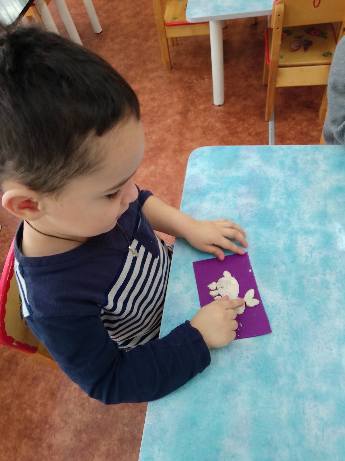 Старшие дети составляли рассказ о животных, создали коллективную аппликацию "Северное царство", а малыши выполнили работу "Зайка беленький сидит..." методом пластилинографии, разучили песенку про маленького зайчика, активно участвовали в подвижной игре "Лиса и зайцы".