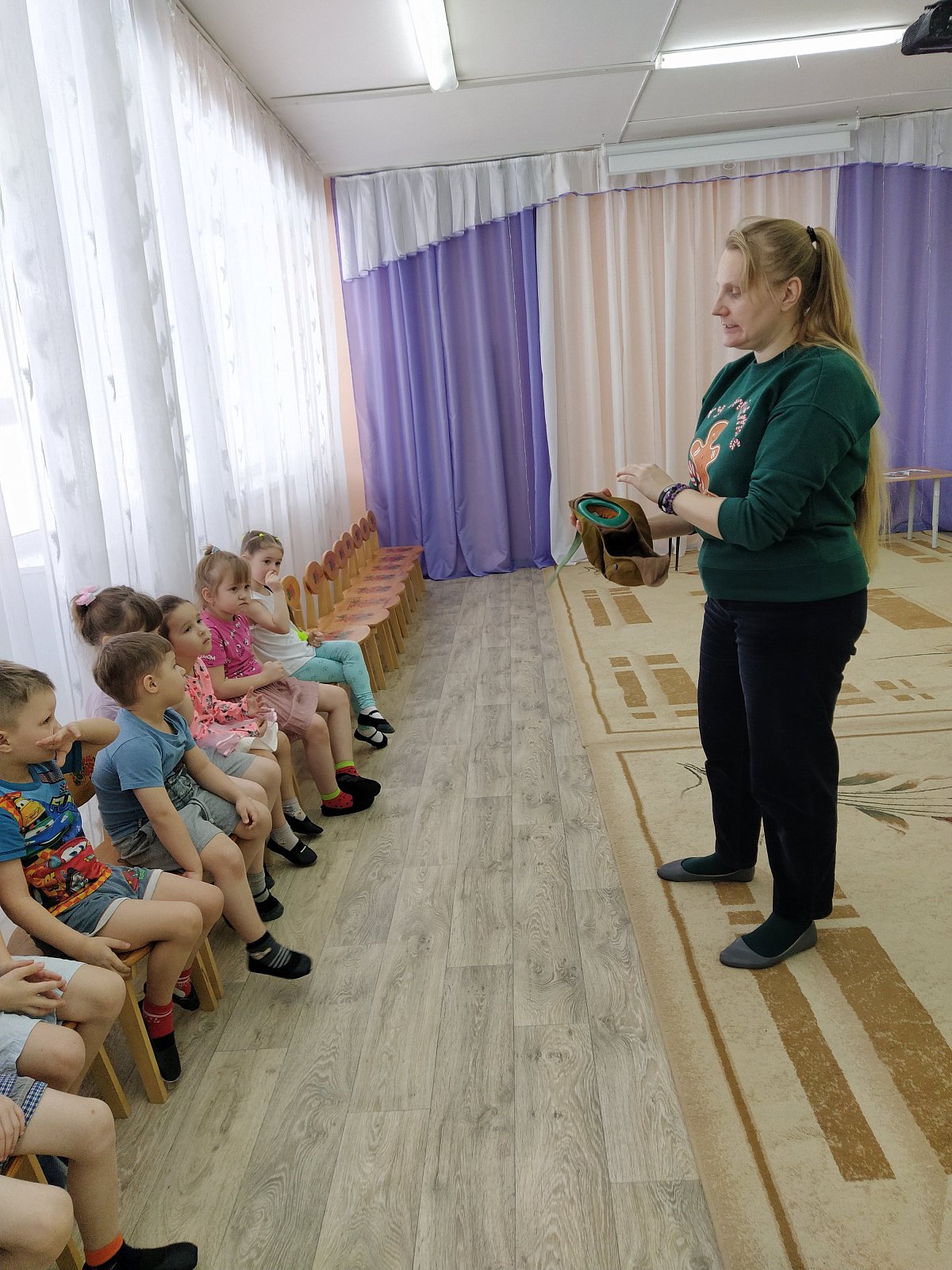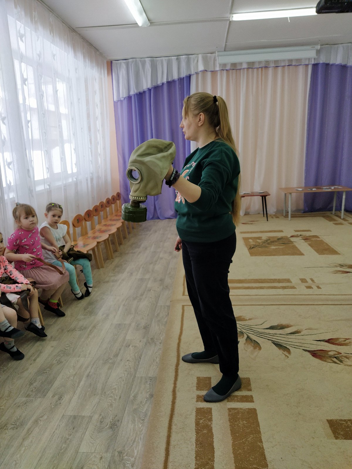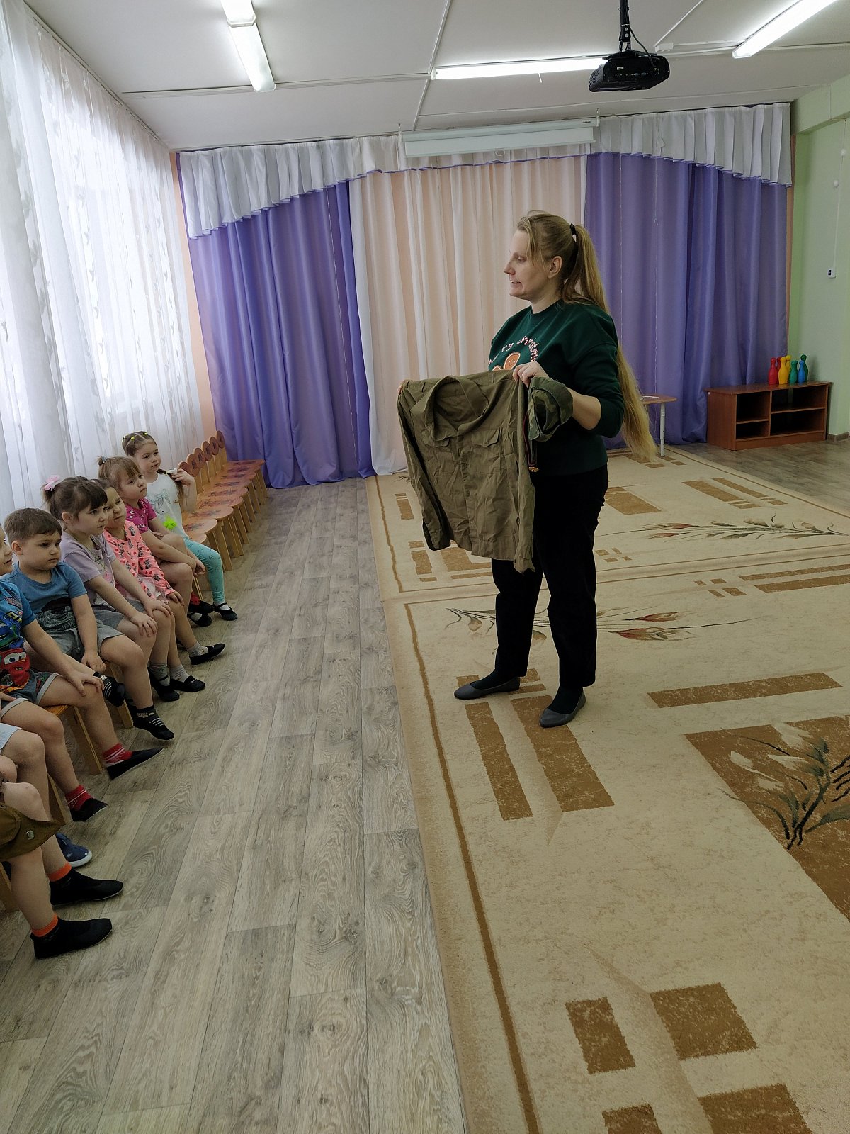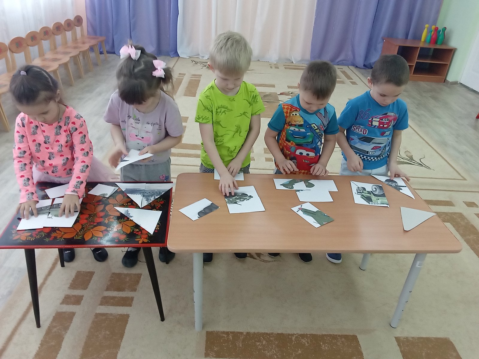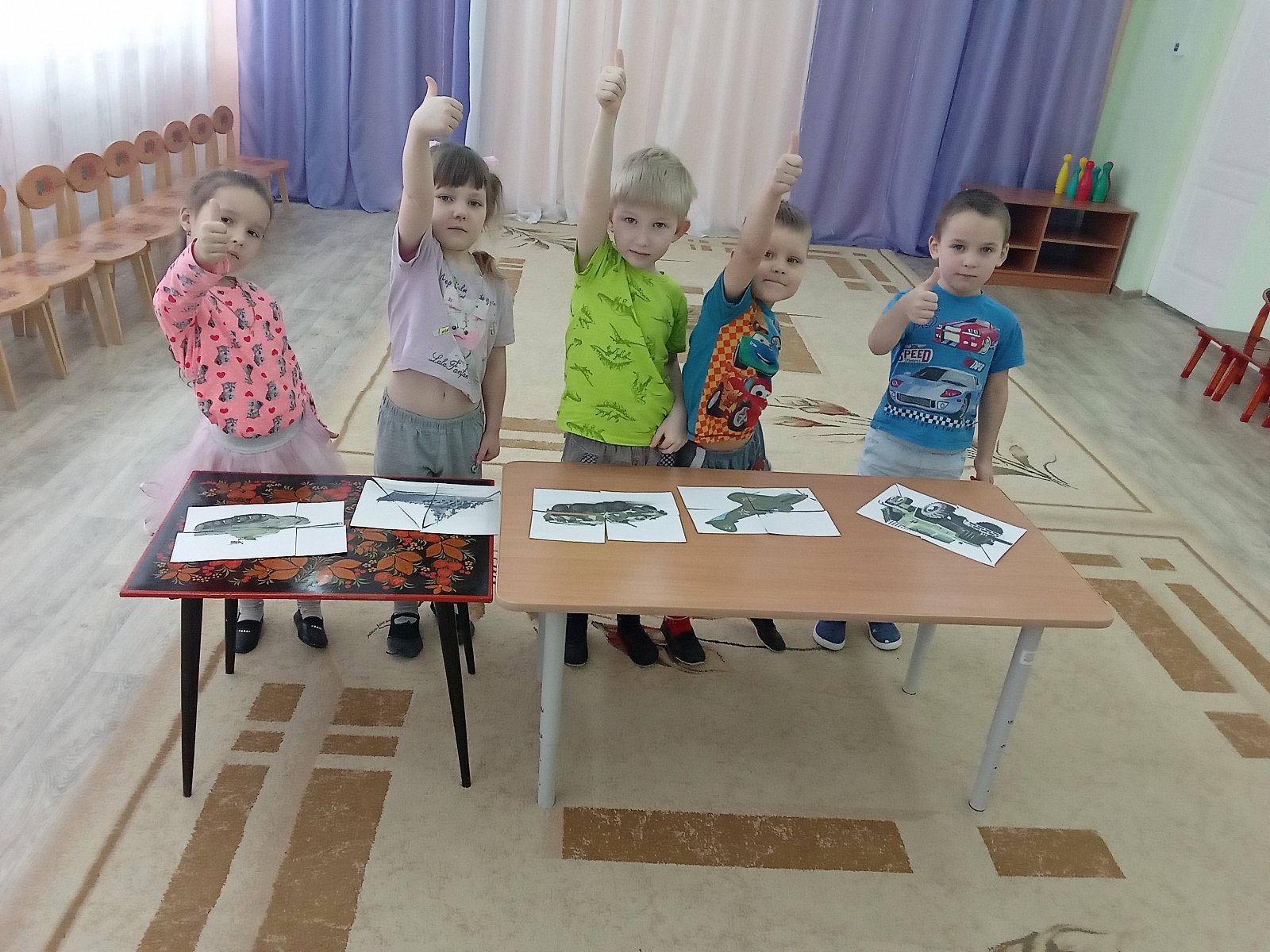 Мероприятие имело форму спортивного досуга с элементами игровой деятельности. Дети рассказывали стихи, отгадывали загадки, показали всю свою ловкость, силу и смекалку в игровых соревнованиях. Узнали, кто служит в армии – десантники, моряки, танкисты, пехотинцы. Были использованы игры «Морская фигура», «Ракеты», «Кто ловкий?» С большим желанием ребята выполняли настольную игру «Собери пазлы». Логопед Екатерина Владимировна познакомила детей с атрибутами военного времени: противогазом, шлемом танкиста, гимнастеркой, солдатскими ремнями. Это вызвало у детей большой интерес и восторг.