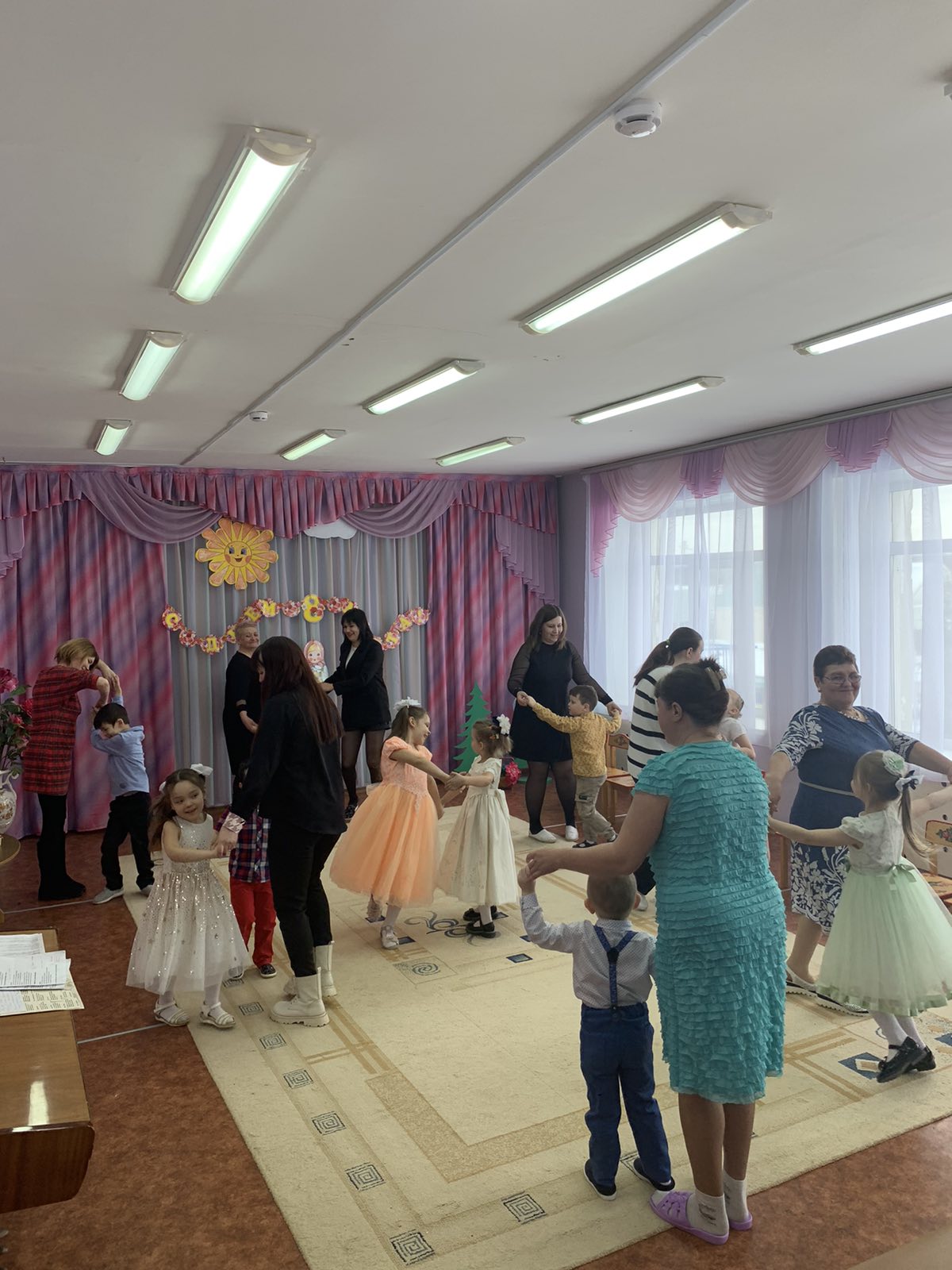 Дети с радостью приглашали мам и бабушек на танец. В зале царила атмосфера весенней радости и счастья.