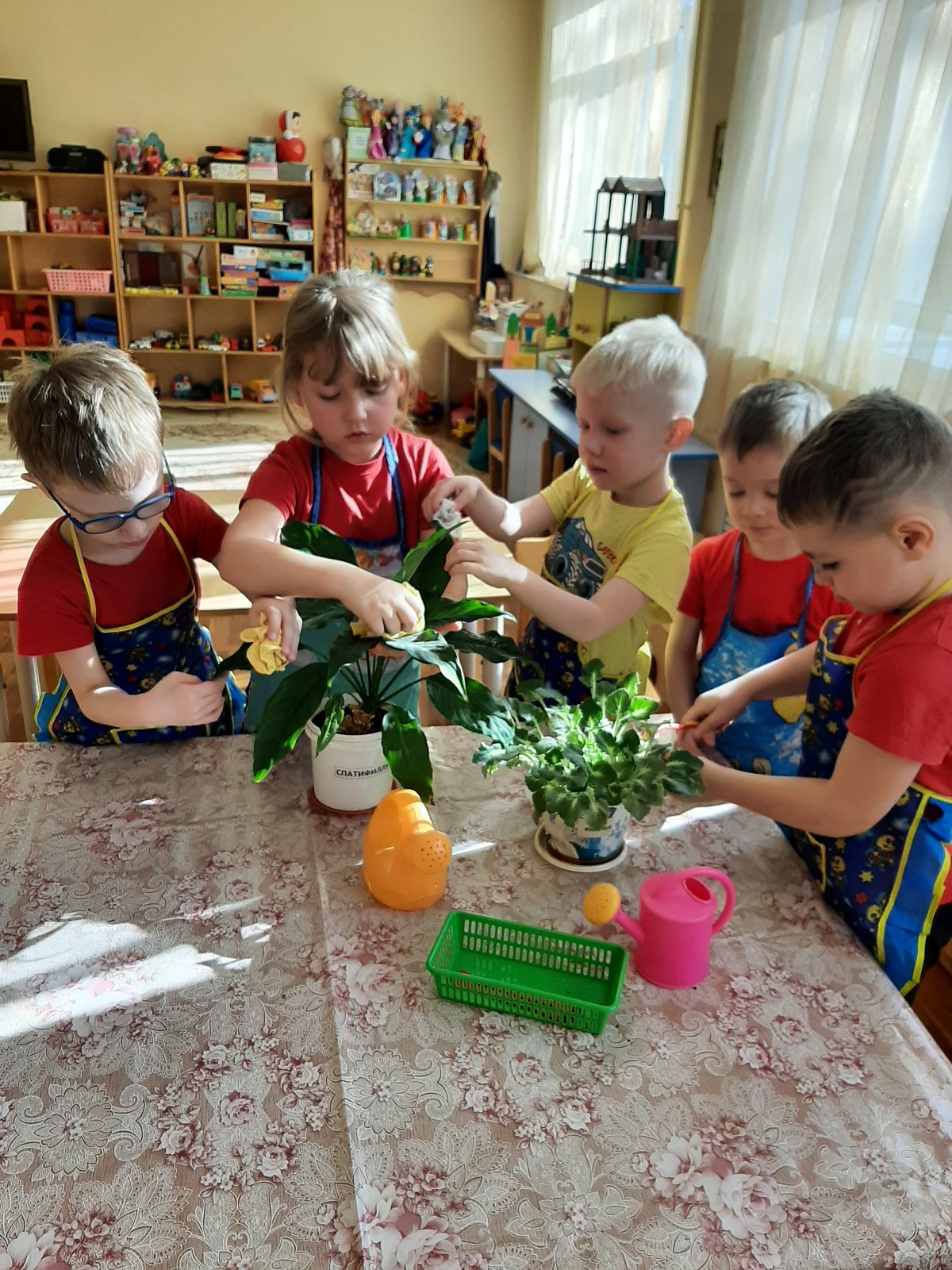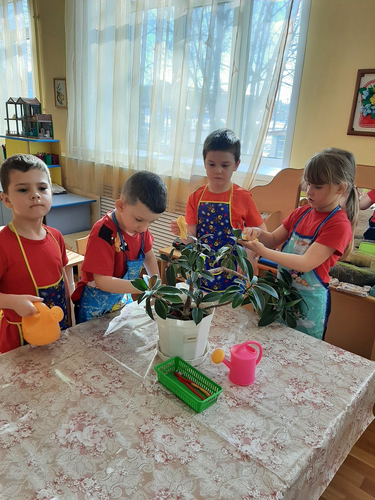 В рамках тематической недели ребята группы узнали о многообразии комнатных растений через беседы: «Какие комнатные растения живут у вас дома?», «Как ухаживать за комнатным растением»; дидактические игры: «Чего не стало», «Собери цветок»; рассматривание иллюстраций; рисование «Фиалка в горшке»; лепку «Кактус»; аппликацию и т.д. Закрепили знания об основных потребностях комнатных растений с учетом их особенностей; совершенствовали навыки по уходу за комнатными растениями. С особым старанием ухаживали за комнатными растениями: рыхлили почву, протирали листья, поливали их. Комнатные растения будут долго радовать нас своей красотой при правильном уходе.