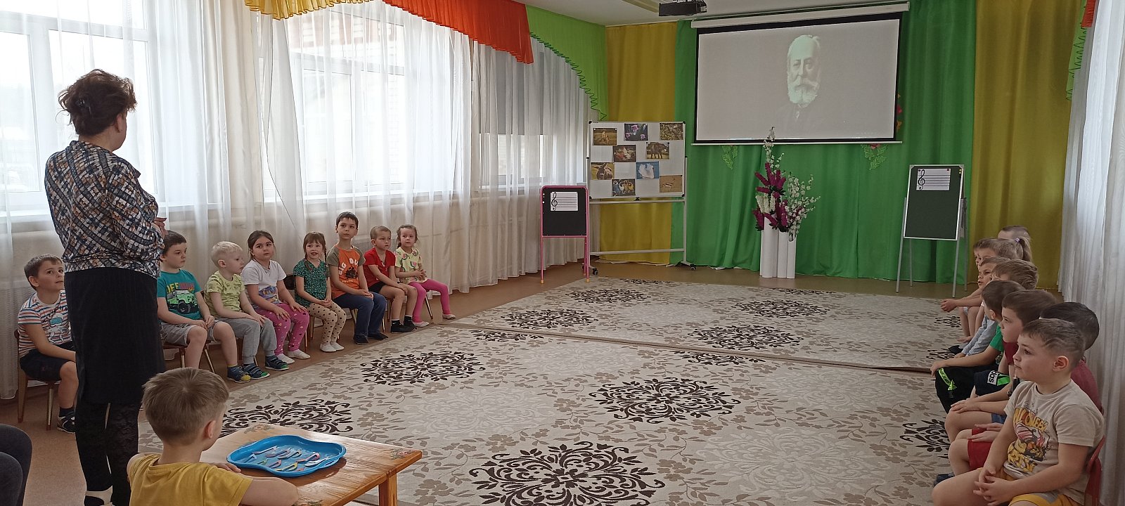 В нашем детском саду «Теремок» № 15 пос. Первомайский 3 апреля состоялась Музыкальная гостиная, посвященная творчеству композитора Камиля Сен Санса.