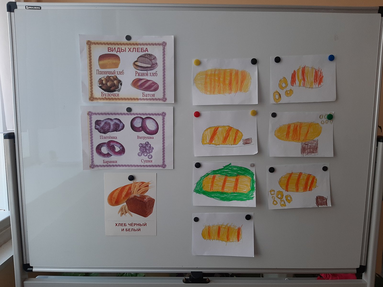 Тематическая неделя «Хлеб. Сельскохозяйственные работы на полях» прошла в нашей компенсирующей группе «Ягодка» (п. Первомайский) с 15 по 19 апреля. Неделя получилась очень насыщенной и интересной, дети знакомились с тем, как выращивают хлеб, как он «приходит» к нам на стол, рассматривали зерна пшеницы, знакомились с техникой, которая выходит на поля, чтобы посадить, а затем и собрать зерно, проследили путь от зёрнышка пшеницы до вкусного румяного каравая на столе. Читали сказки: «Легкий хлеб», «Крылатый, мохнатый, масленый», «Колосок» и др. Поиграли в дидактические игры: «Назови профессию», «Что, где растет», «От зерна до каравая», «Чудесный мешочек»; пальчиковые игры: «Месим тесто», «Хлеб», «Пекарь»; хороводную игру «Каравай»; сюжетно - ролевые игры: «Магазин», «Семья». В рамках продуктивной деятельности мы с ребятами из пластилина слепили батон, баранки и ватрушки, а из конструктора «Лего» построили «Большой хлебный магазин» и нарисовали «Хлеб – всему голова».
