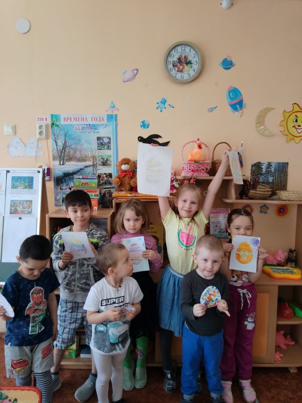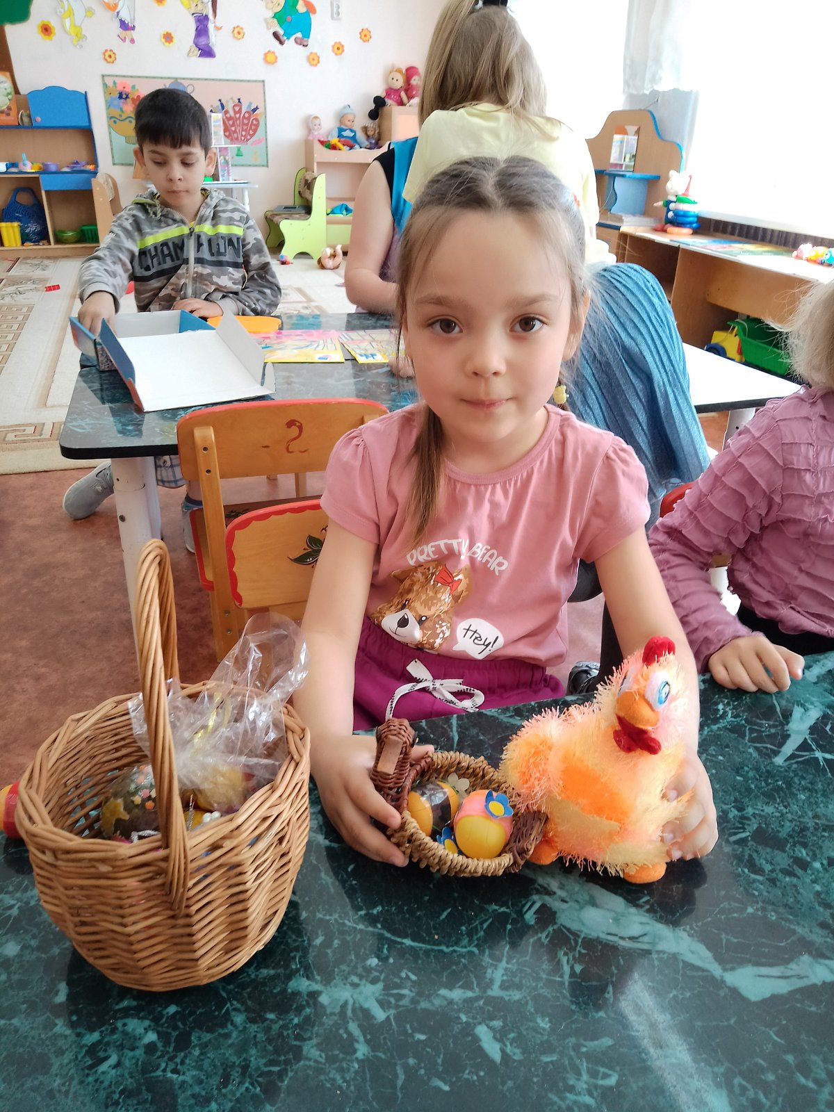 В преддверии праздника,3 мая в разновозрастной группе "Капельки", педагоги провели с детьми игровое занятие, где знакомили ребят с историей и традициями празднования Пасхи, дети рисовали пасхальные яйца и раскрашивали их. В гости приходила курочка с корзинкой пасхальных яиц, с которыми дети играли, у кого дольше покрутится яйцо. Ребятишки определяли и называли цвет, форму яиц.
