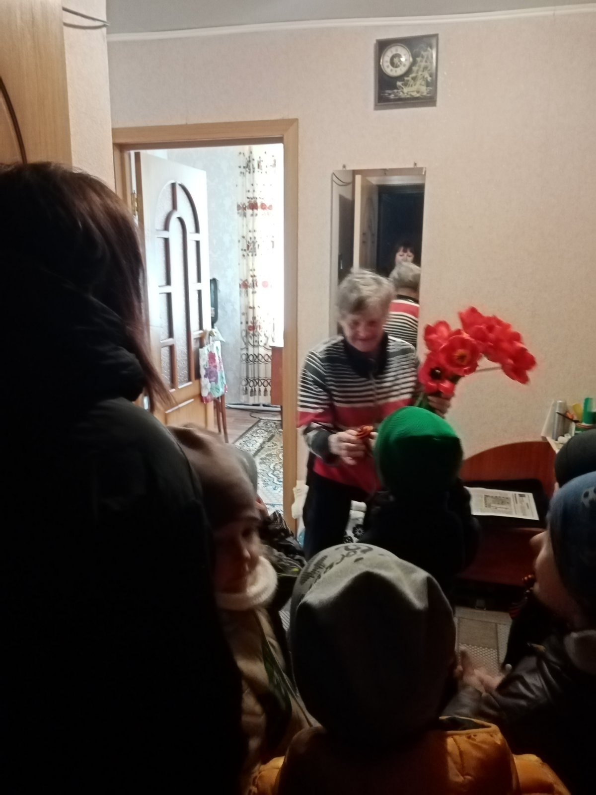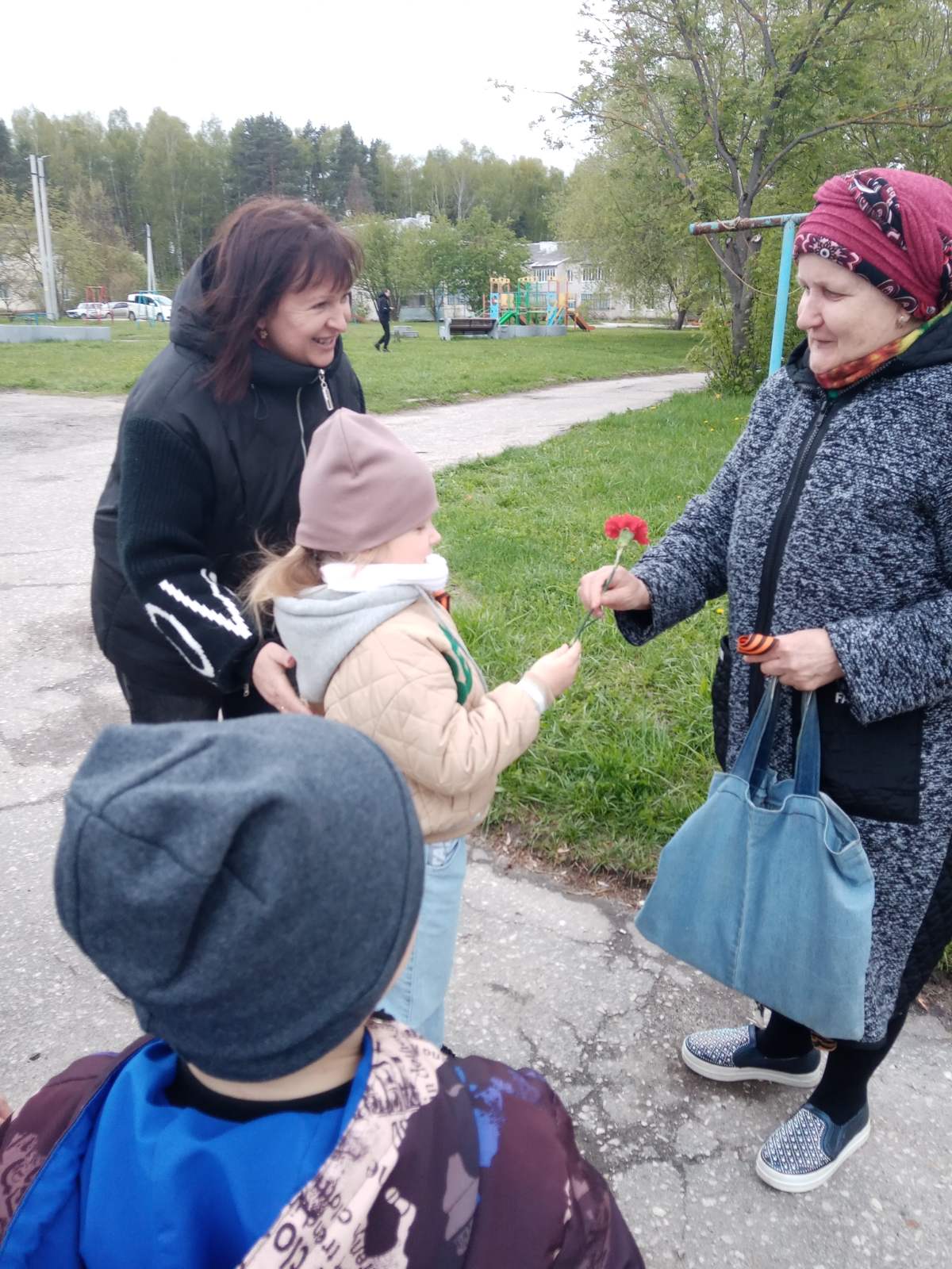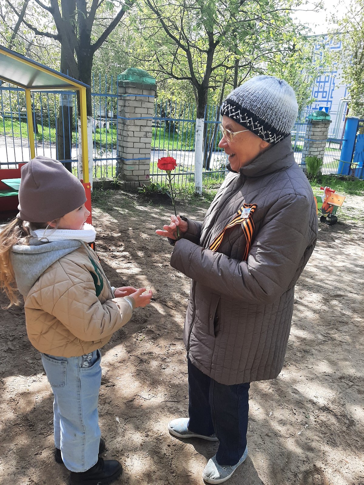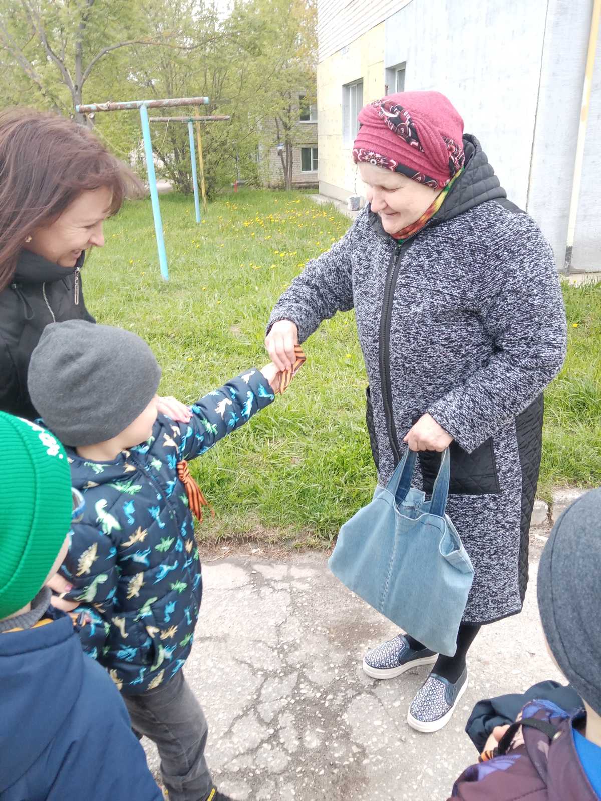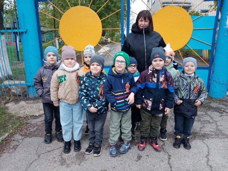8 мая ребята компенсирующей группы «Ягодка» вместе с воспитателем поздравляли детей Великой Отечественной войны Юрину Александру Васильевну, Брызгалову Клавдию Васильевну, Жаренову Фаину Николаевну и просто жителей посёлка с Днём Победы, вручив им Георгиевские ленточки, сделанные своими руками и цветы. Никто не остался равнодушным к этой акции. Люди благодарили маленьких патриотов и организаторов за дань памяти и уважения ветеранам, подарившим нам мир.