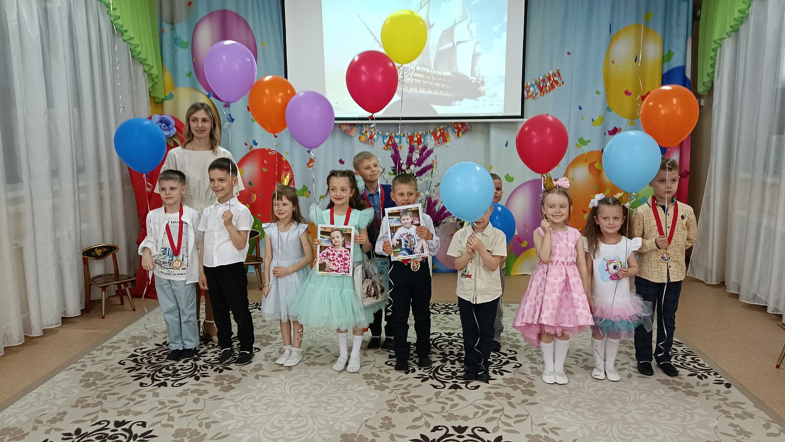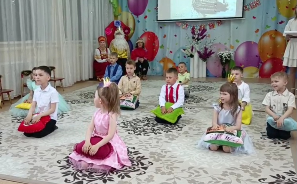 В течение всего утренника дети путешествовали на волшебном корабле. Дошкольники показали свои знания и умения, которые приобрели за годы, проведенные в детском саду: спели много песен, рассказали стихи, порадовали танцами. Пришли поздравить выпускников и дети ясельной группы. На прощание выпускники станцевали с малышами.