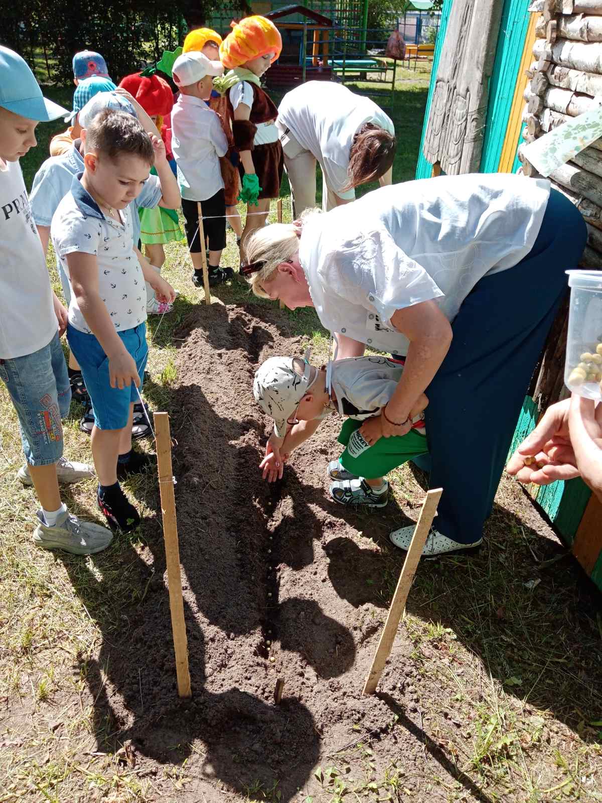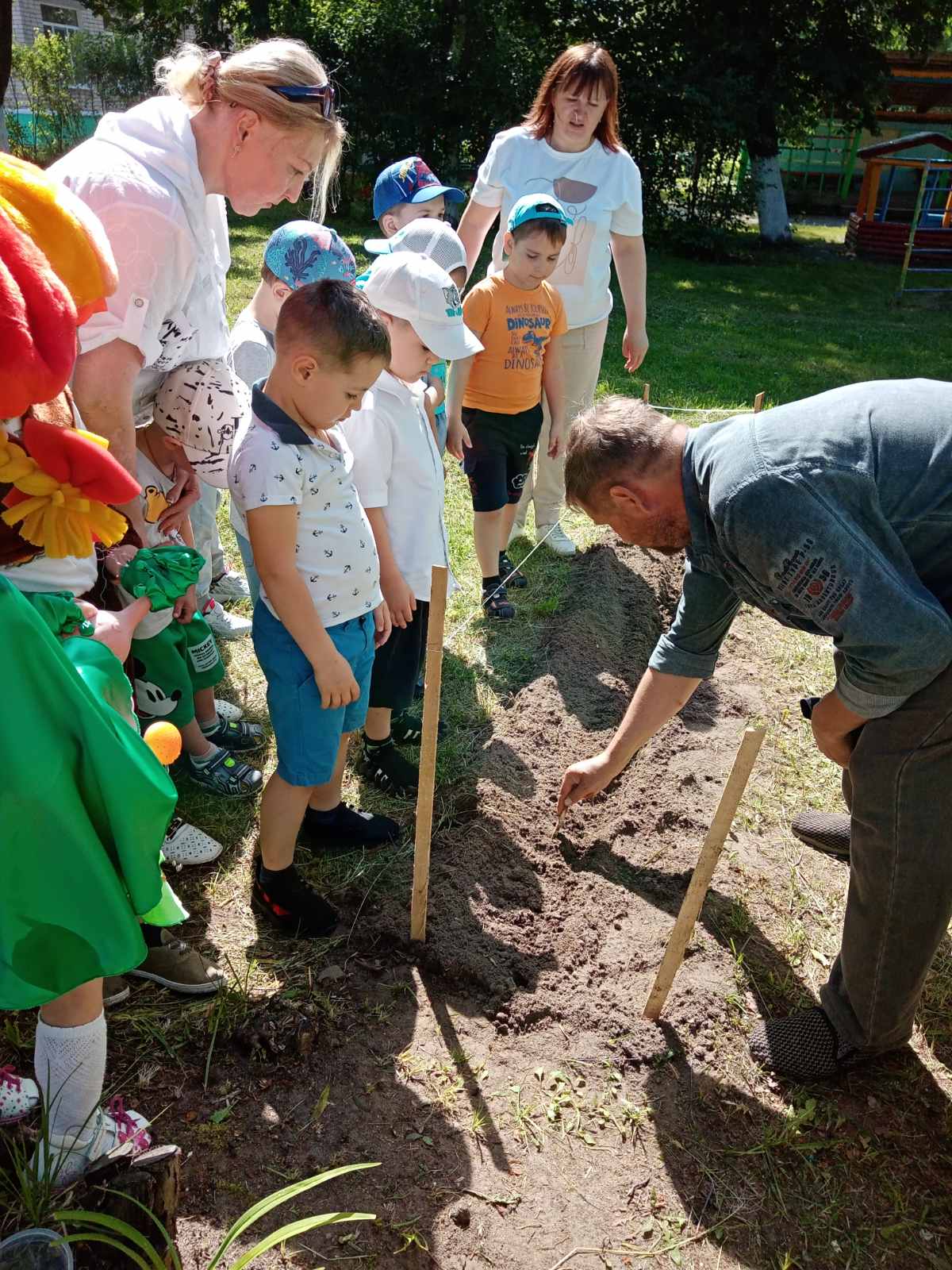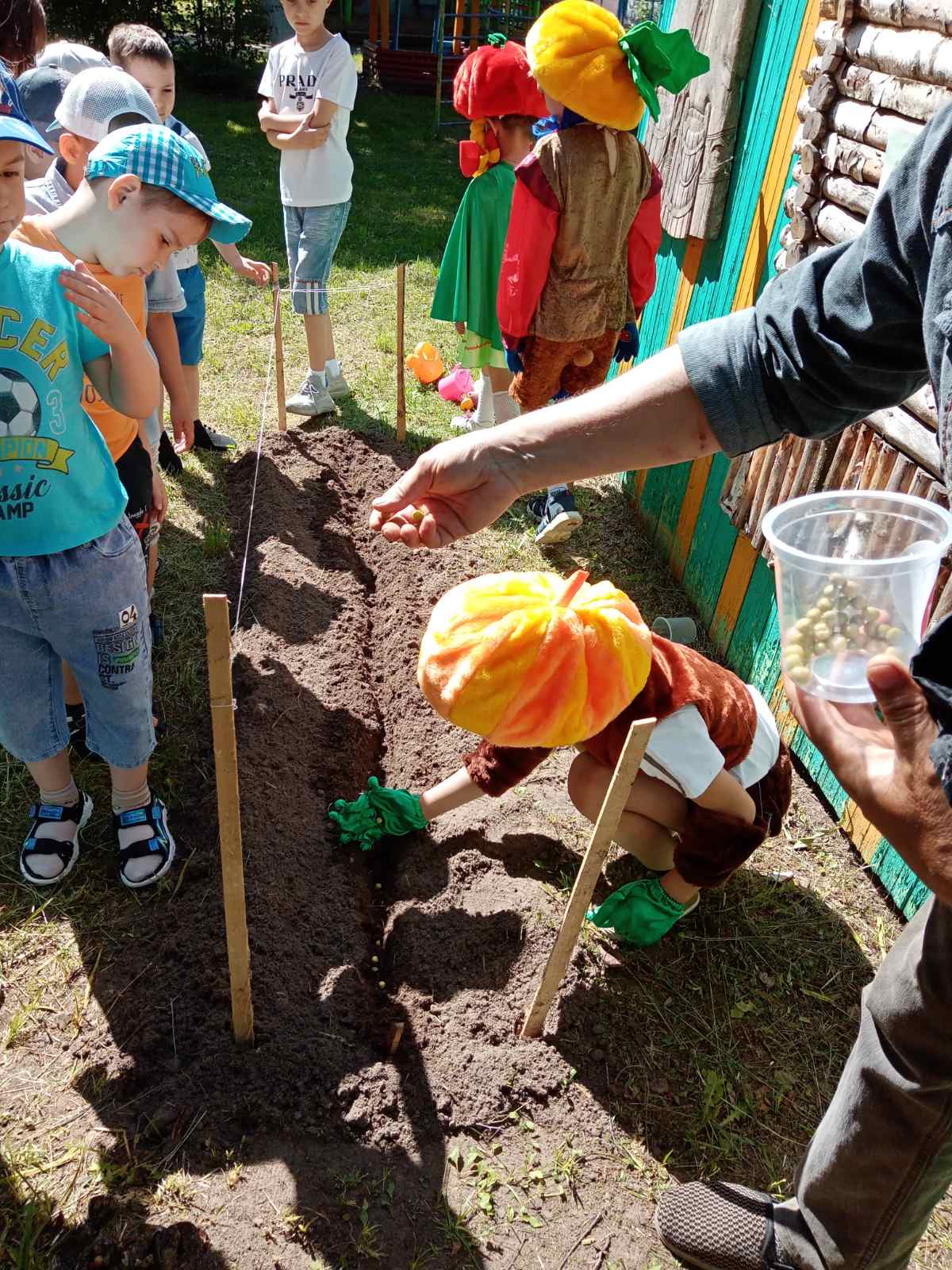 Так же к ребятам приходил агроном Алексей Викторович, который рассказал о семенах деревьев, о том, как необходимо их сажать, чтобы получить всходы, как выбрать правильно место для посадки. А затем предложил ребятам высадить в грядку горох, который дети совместно с воспитателем заранее прорастили в воде.