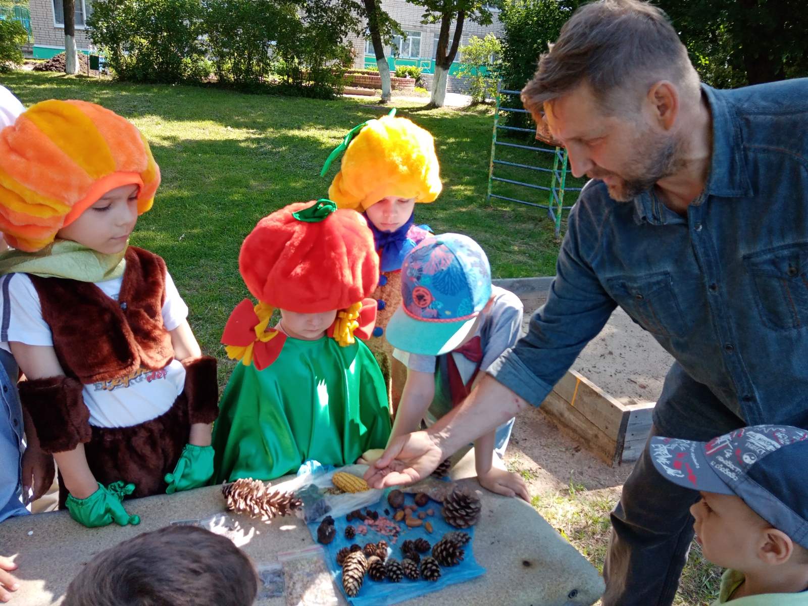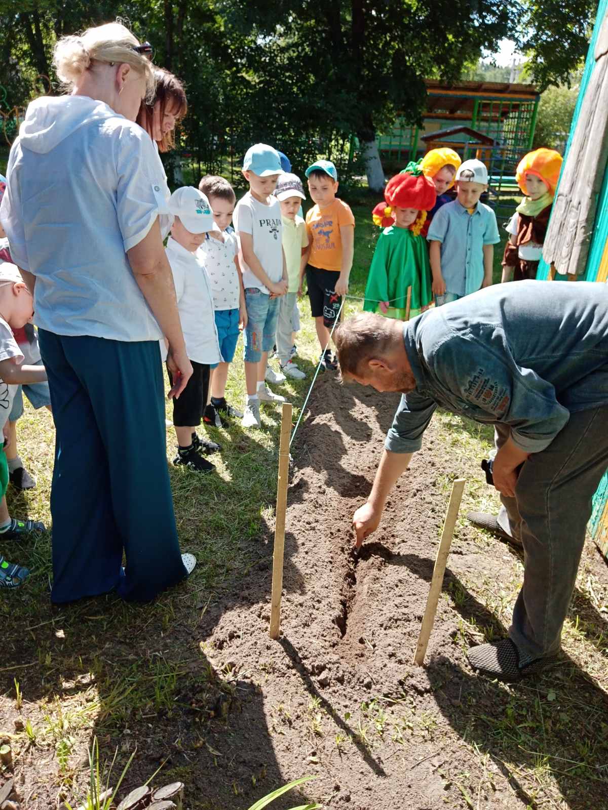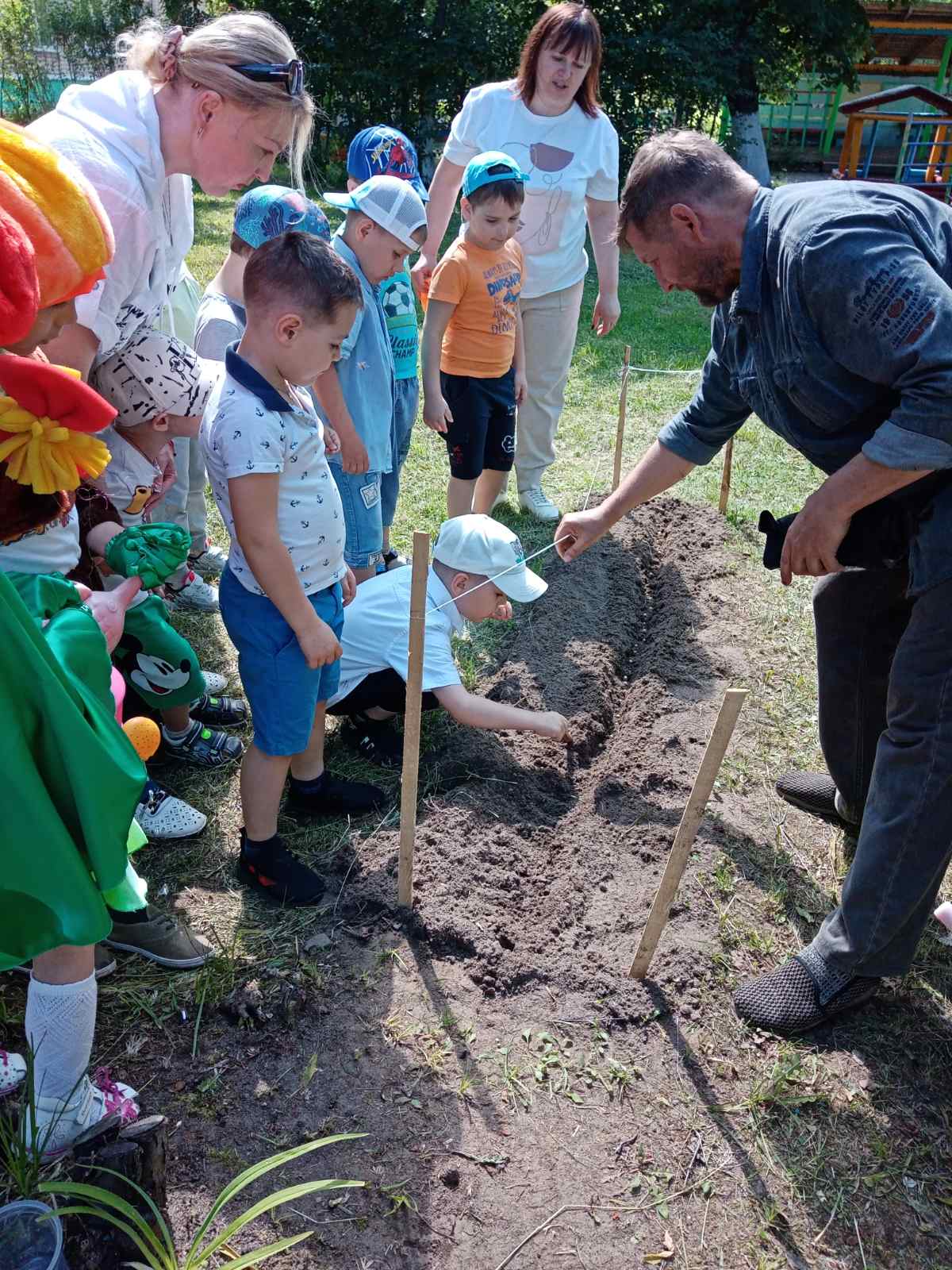 Так же к ребятам приходил агроном Алексей Викторович, который рассказал о семенах деревьев, о том, как необходимо их сажать, чтобы получить всходы, как выбрать правильно место для посадки. А затем предложил ребятам высадить в грядку горох, который дети совместно с воспитателем заранее прорастили в воде.