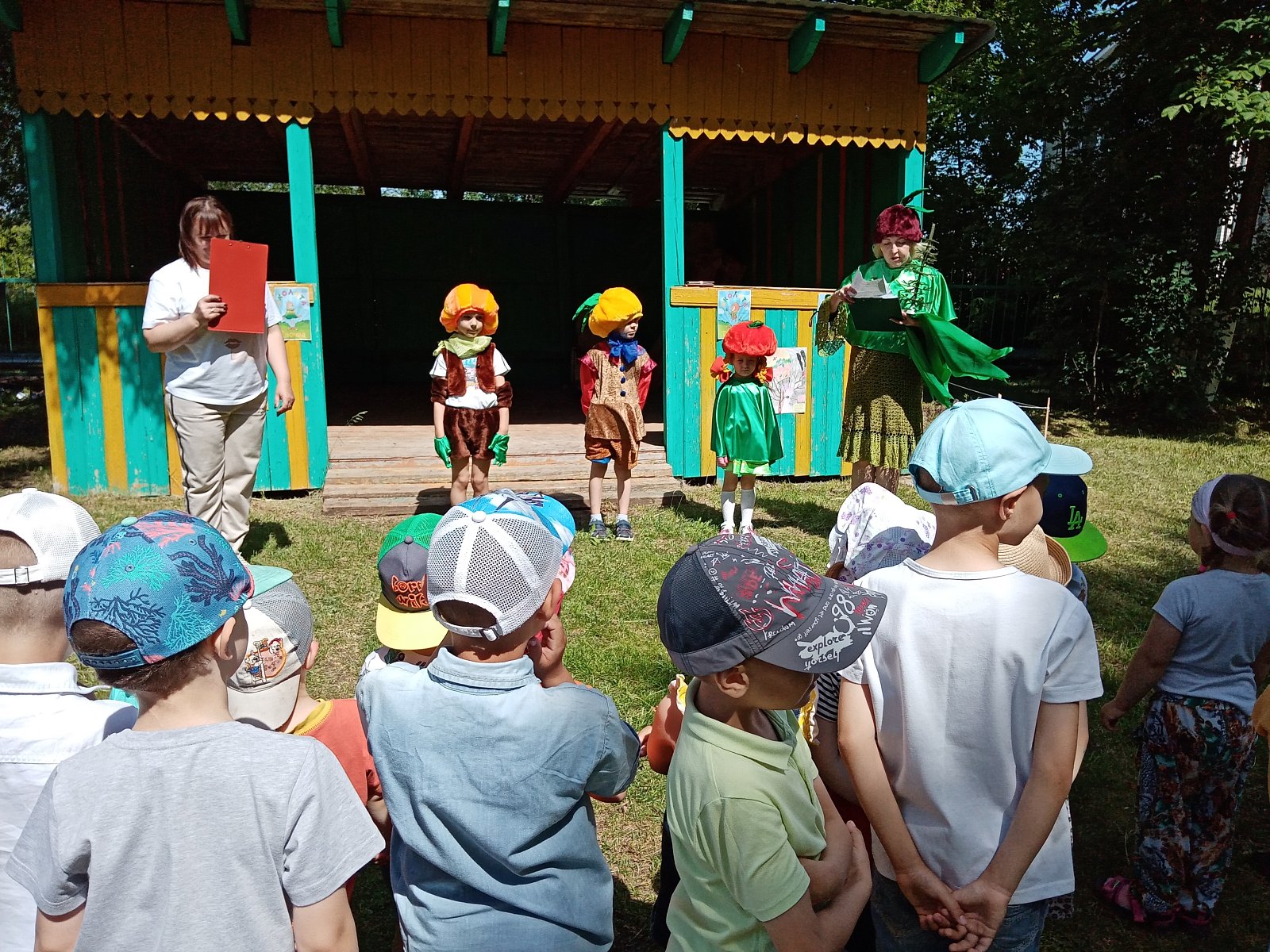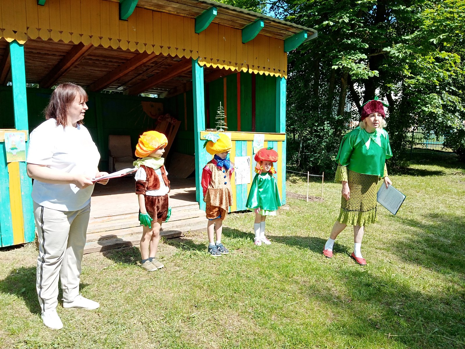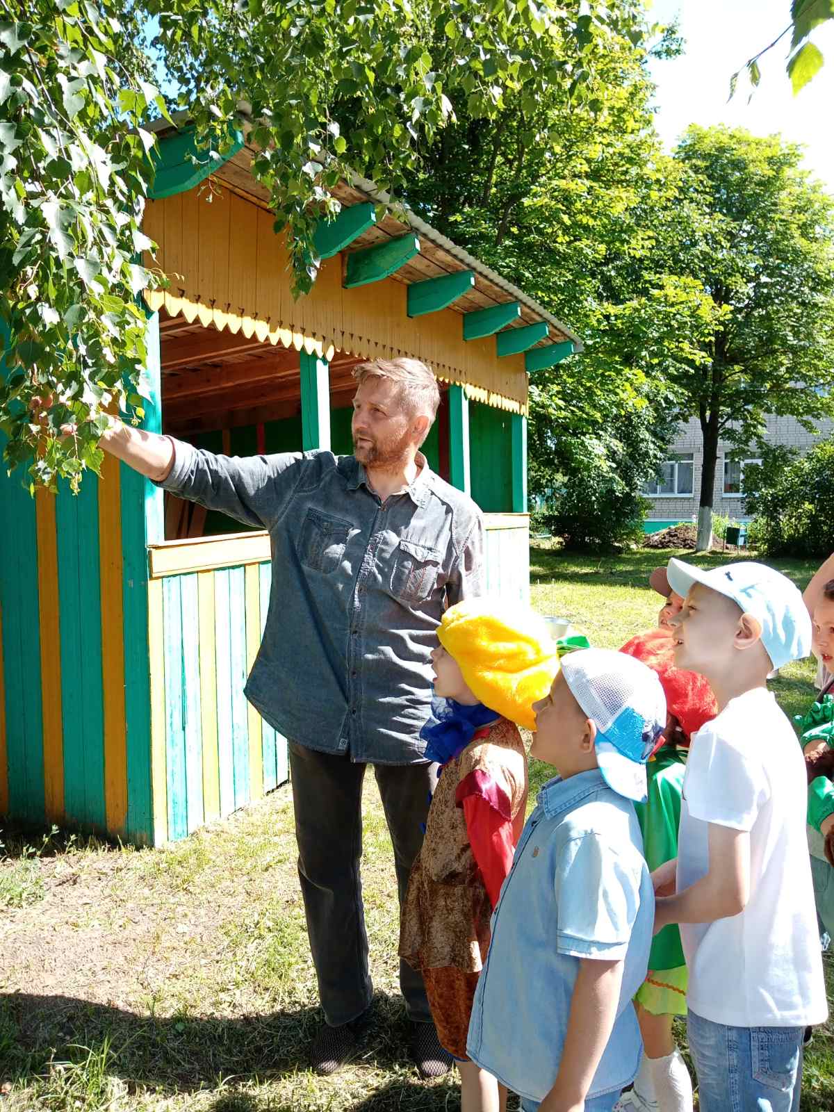 В эти дни к воспитанникам приходили разные гости: веселые сказочные герои - Умница, Шалун, Тихоня (Есения Б, Рома К., Семён Ю.) и Ёлочка (Е.Е. Быстрова – учитель-логопед) – друзья и защитники Природы, которые помогают подружиться с Природой, понять и полюбить её. Они родились в лесу, знают про него всё или почти всё. У них много друзей, приятелей и просто знакомых. Конечно, как и все дети, они иногда любят пошалить.