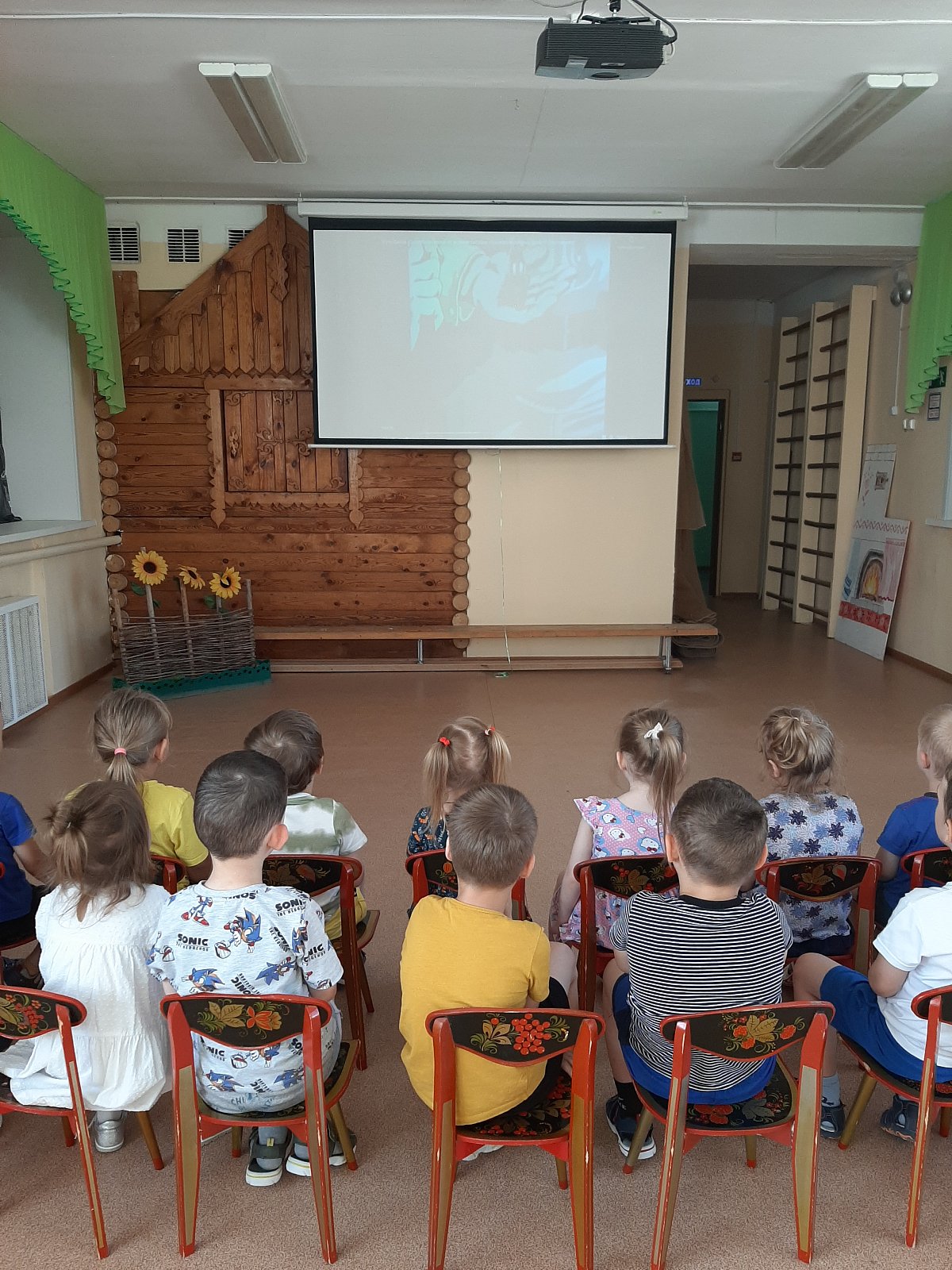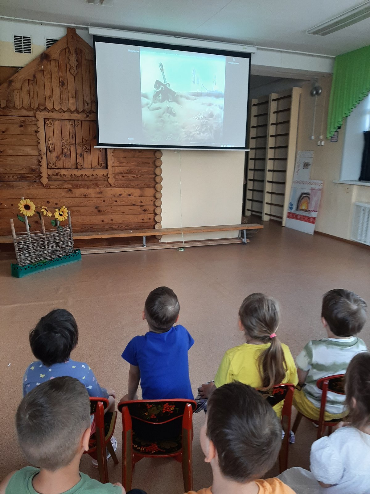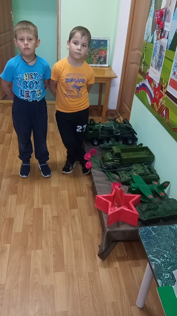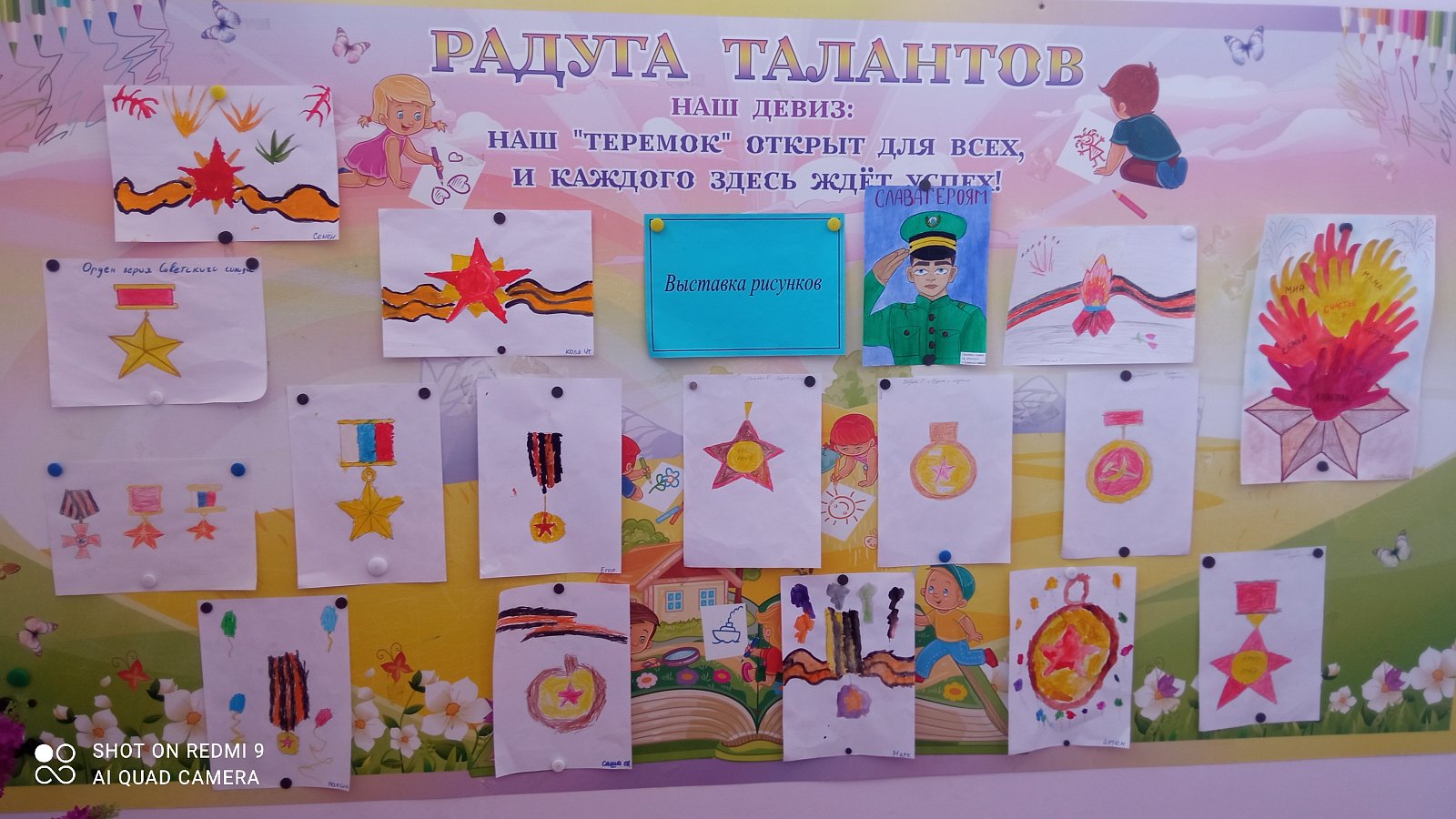 Военно-историческая хроника Великой Отечественной войны была представлена воспитанникам в книгах, иллюстрациях, кадрах кинохроники, фото и рассказах педагогов. Дети слушали интересные рассказы о героических подвигах, как мужественно боролись с врагами советские воины и мирные жители. С трепетом и пониманием ребята рассматривали тематические выставки и альбомы, сделанные детьми и педагогами. В заключении тематического дня ребята с большим интересом посмотрели познавательный мультфильм «Солдатская сказка» по сказке К. Г. Паустовского «Похождения жука-носорога» и нарисовали рисунки на выставку «Слава Героям!».