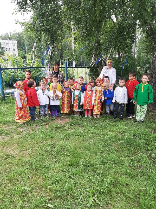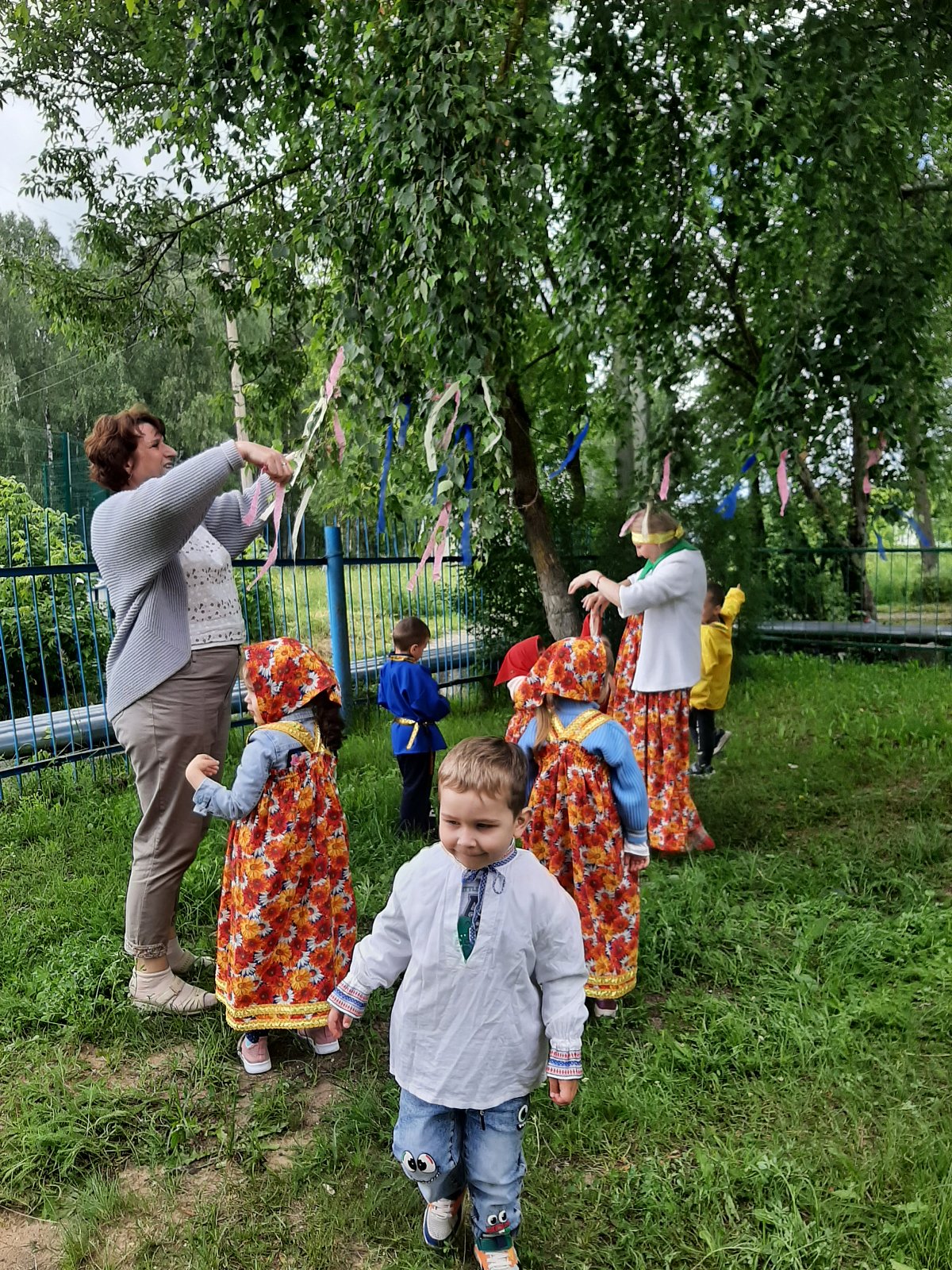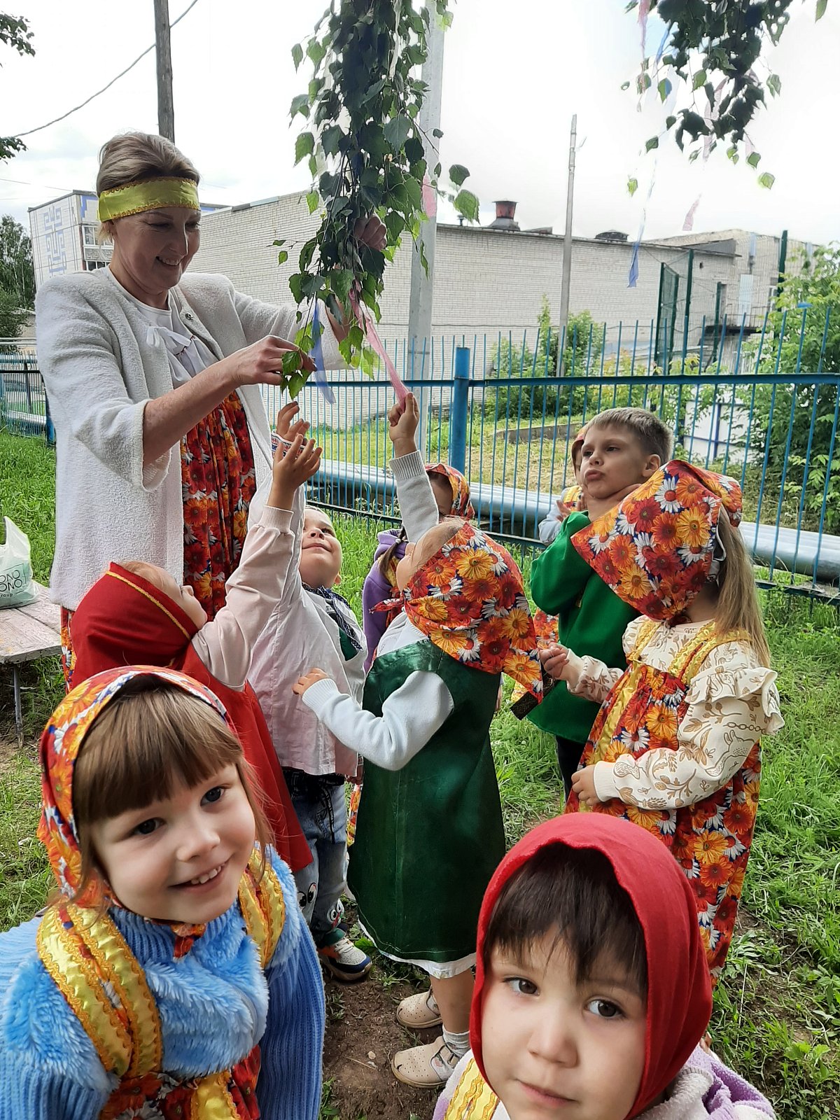 24 июня в нашем детском саду прошло мероприятие по духовно – нравственному воспитанию дошкольников «Троица – праздник русской березки», которое подготовили и провели со своими воспитанниками учитель – логопед Е.Е. Быстрова, воспитатели Т.А. Казанцева и Н.В. Бодакова . Через этот праздник знакомили детей с обычаями празднования Троицы, воспитывая тем самым любовь к русской народной культуре, ее традициям, уважение друг к другу, заботу о природе нашей матушки. Ребята в ярких русских нарядах водили хоровод «Березонька», играли в народные игры «Горелки», «Кто быстрее перевезет платочек», «Кто больше шишек наберет», «Карусель», «Перетягивание каната». А в заключение праздника, следуя народному обряду, дети с удовольствием украсили березку лентами и загадали желание.