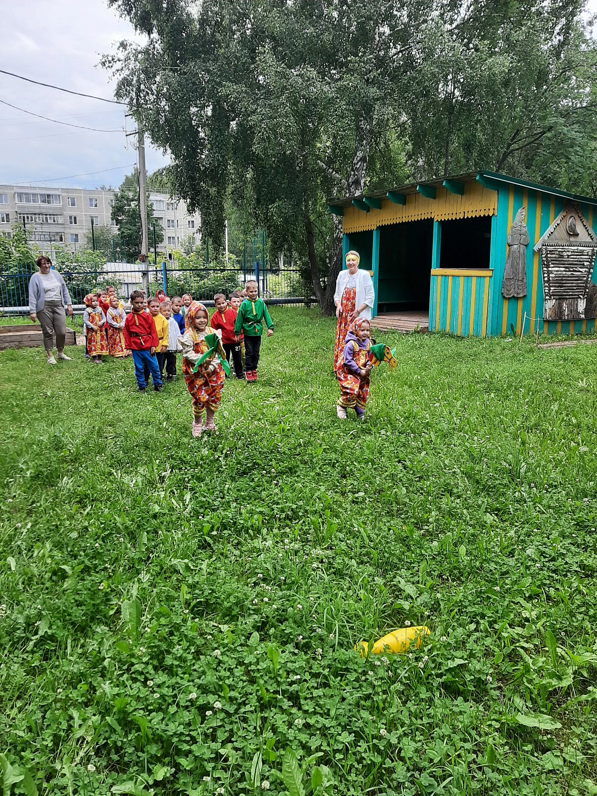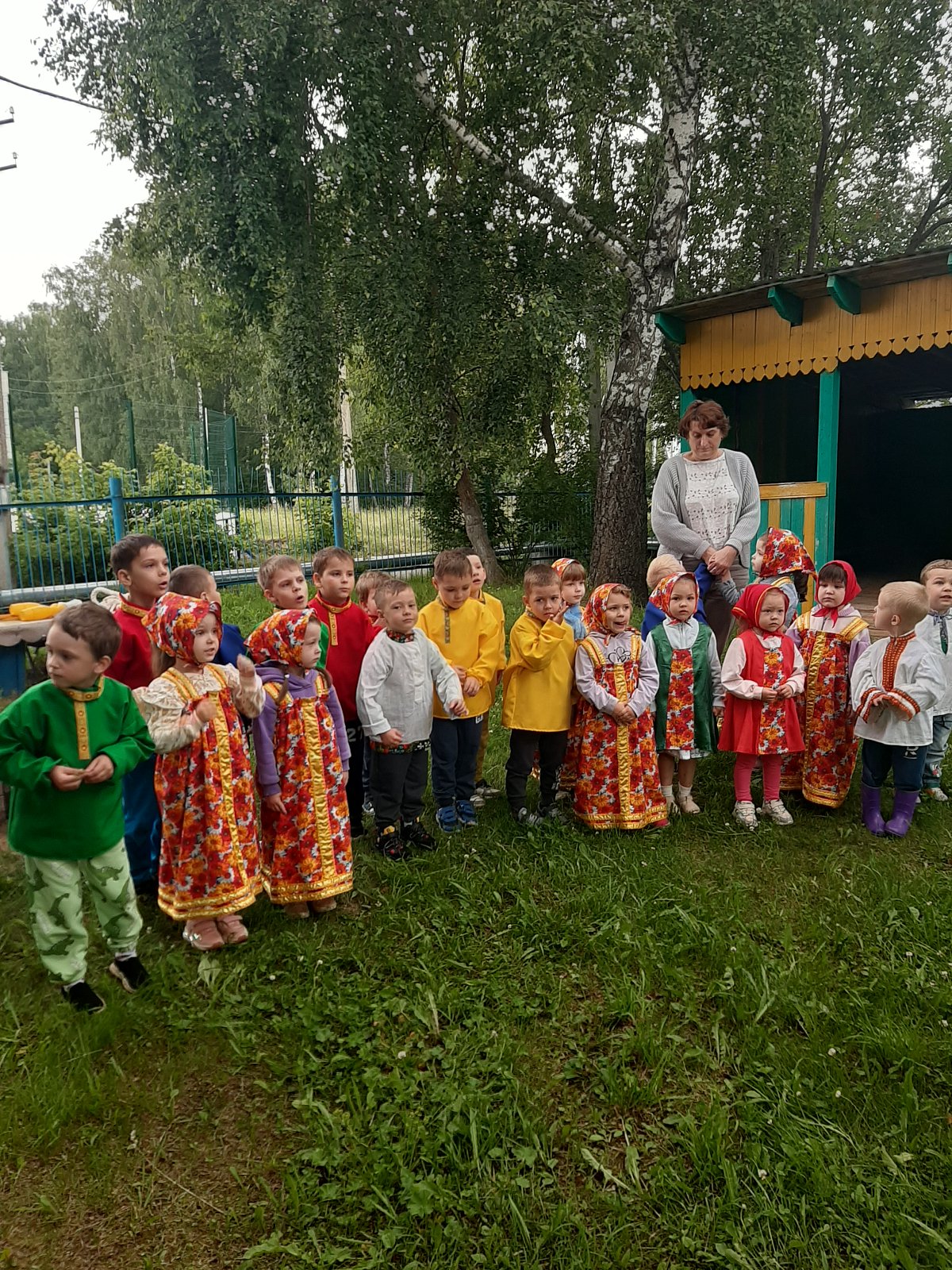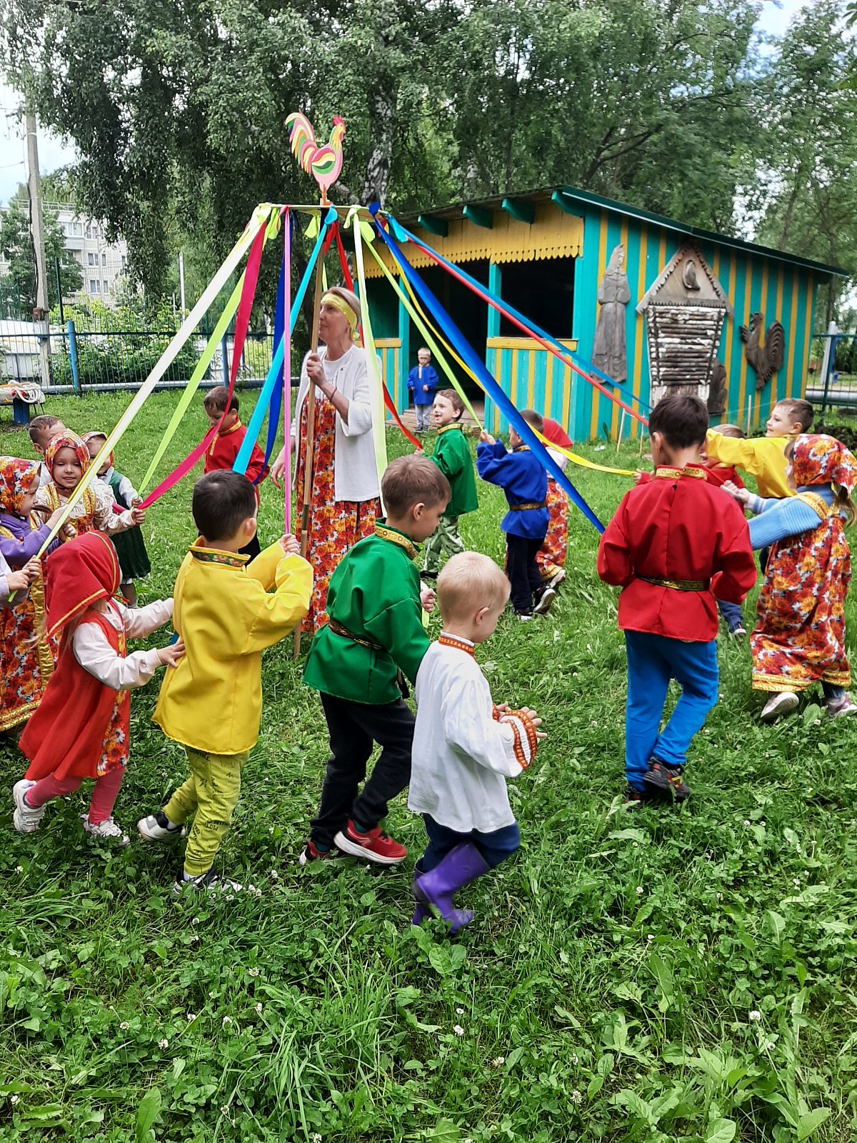 24 июня в нашем детском саду прошло мероприятие по духовно – нравственному воспитанию дошкольников «Троица – праздник русской березки», которое подготовили и провели со своими воспитанниками учитель – логопед Е.Е. Быстрова, воспитатели Т.А. Казанцева и Н.В. Бодакова . Через этот праздник знакомили детей с обычаями празднования Троицы, воспитывая тем самым любовь к русской народной культуре, ее традициям, уважение друг к другу, заботу о природе нашей матушки. Ребята в ярких русских нарядах водили хоровод «Березонька», играли в народные игры «Горелки», «Кто быстрее перевезет платочек», «Кто больше шишек наберет», «Карусель», «Перетягивание каната». А в заключение праздника, следуя народному обряду, дети с удовольствием украсили березку лентами и загадали желание.