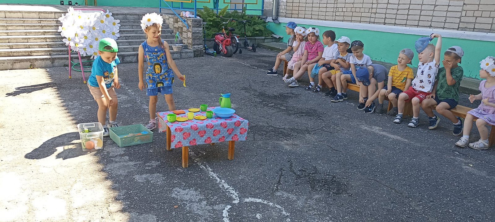 Принимали активное участие в конкурсах «Собери ромашку»," Накрой стол", "Передай платочек", а также отгадывали загадки про семью. В конце развлечения дети рисовали символ праздника Любви -ромашку! Праздник получился ярким, добрым и радостным, и оставил у детей массу положительных эмоций. А в душах наших воспитанников осталась самая важная мысль, что счастье заключается в дружной, надёжной и крепкой Семье!