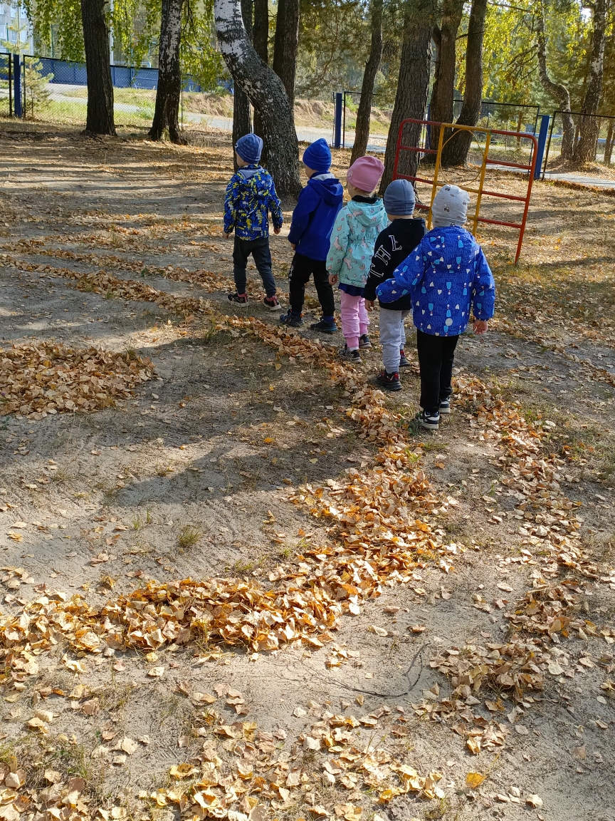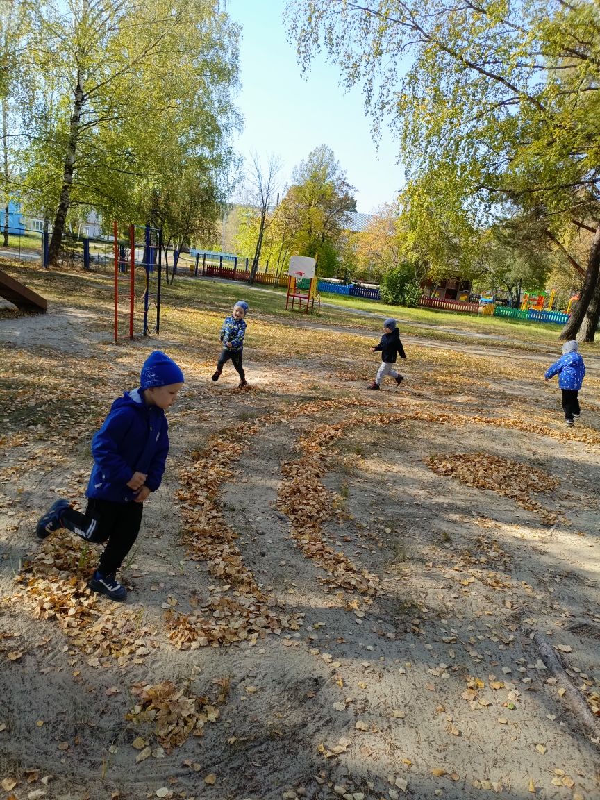 А еще пришла идея нарисовать для детей лабиринт из опавших осенних листьев. Получилось просто классно!