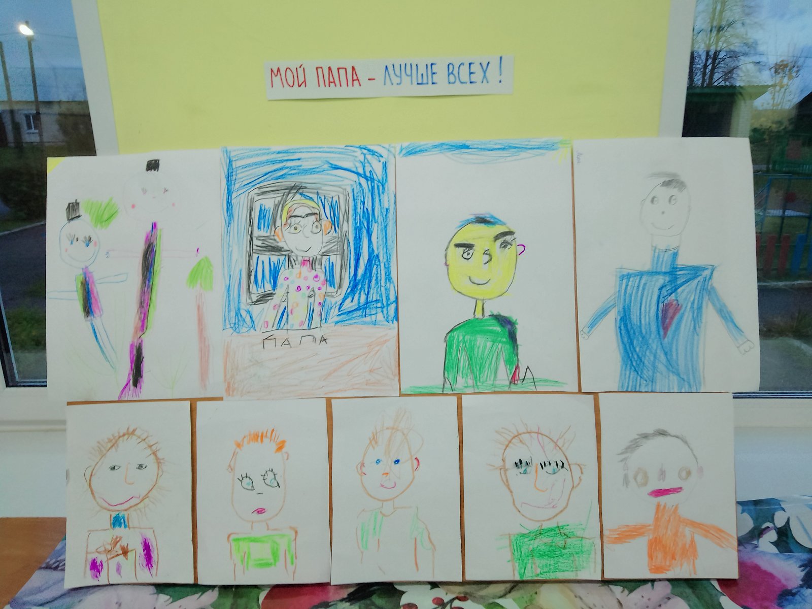 Наши воспитанники рисовали портреты своих пап "Мой папа-лучше всех!" и сделали своими руками подарки для пап-красивые поздравительные открытки.