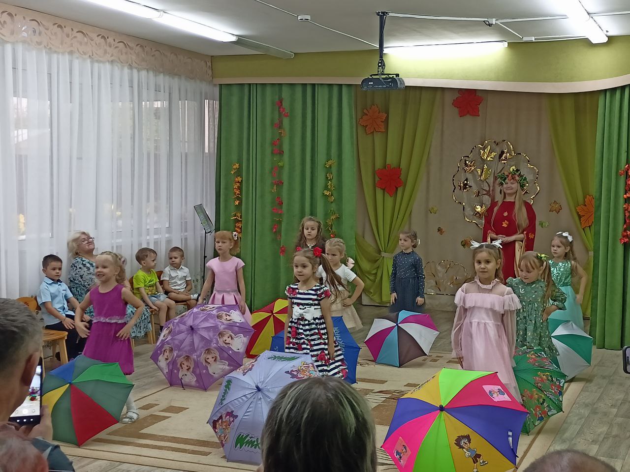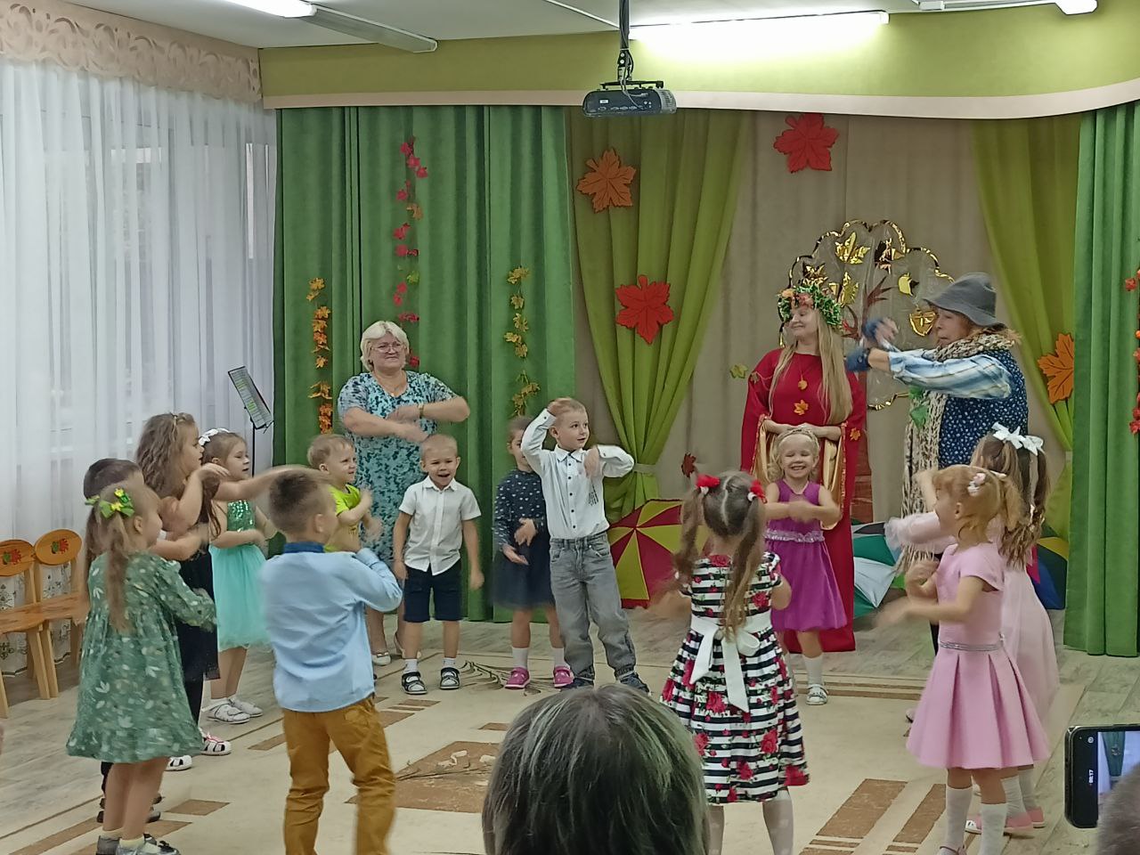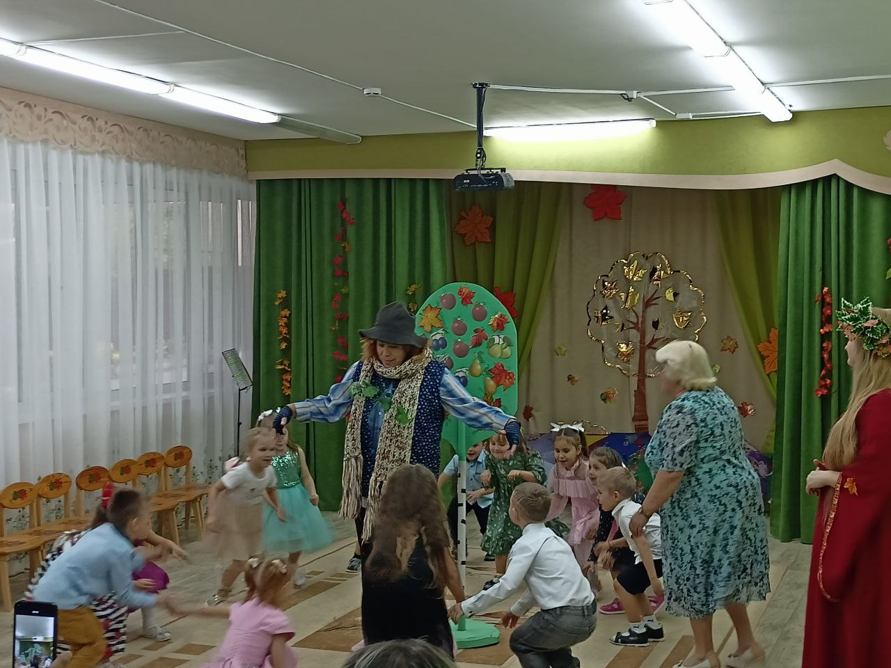 24.10. в детском саду «Теремок» (п. Новый) прошел осенний утренник. Для ребят это запоминающийся, радостный и яркий праздник, который помогает им закрепить представления об осени как времени года. И хоть осень и называют «унылой порой», тем не менее, кто как не дети больше всего радуются ярким разноцветным листьям, опавшим с деревьев. Открыли праздник песней «Художница осень», чтением стихов, весёлым парным танцем. Вдруг началась сильная гроза, проливной дождь и в зал вбежал сторож всех садов и огородов – Пугало. Стал жаловаться, что весь промок, озяб и очень хочет согреться. Дети предложили гостю остаться на празднике, научили его спасаться от дождя при помощи зонтика, поиграть в шумовом оркестре, показали свою силу и ловкость в играх – аттракционах. Пугало развеселился, плясал с детьми весёлый танец, согрелся и даже остался в детском саду на всю зиму, сторожем. На протяжении всего праздника присутствовал положительный эмоциональный настрой, все ребята получили массу приятных впечатлений. Детские осенние праздники – это море улыбок и веселья, удивительные чудеса, волшебные краски и звонкий смех детей.