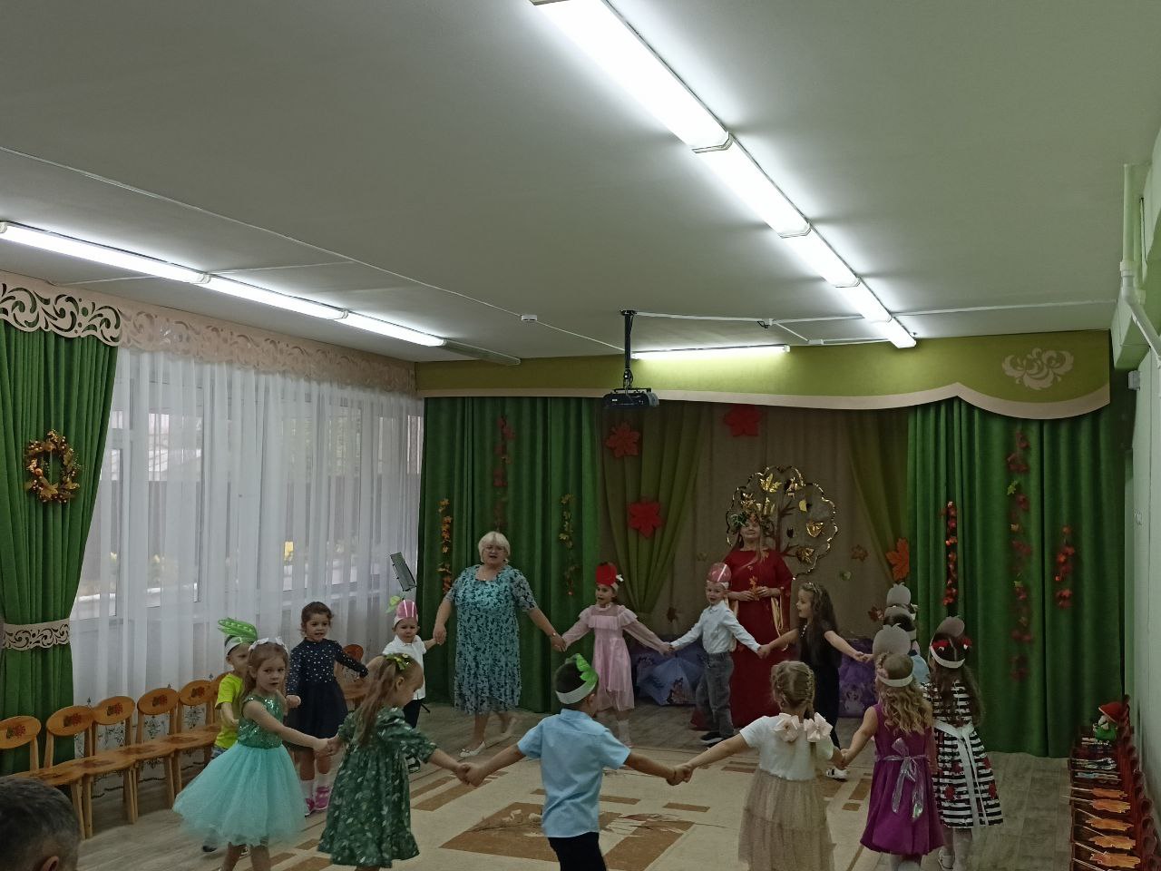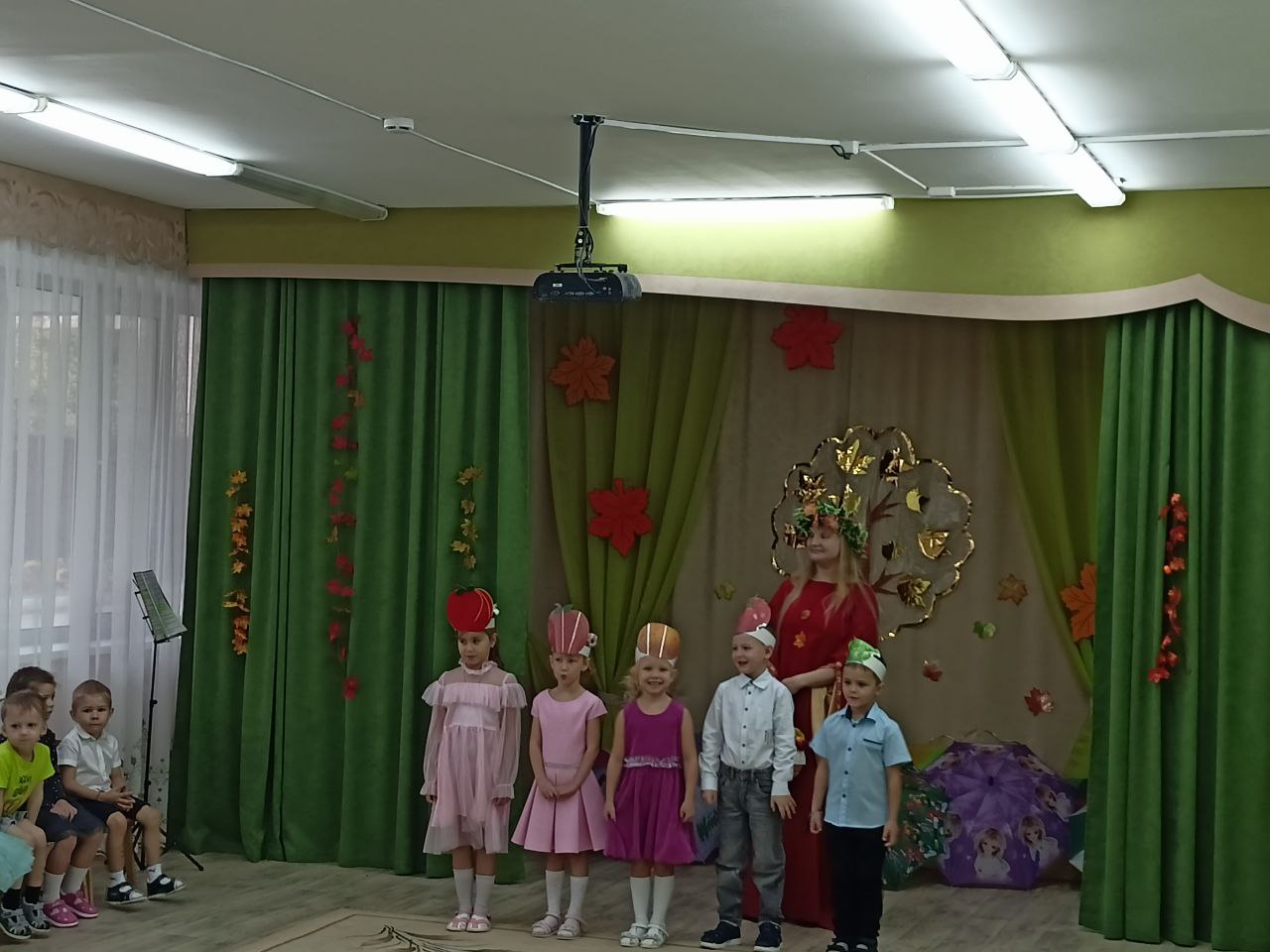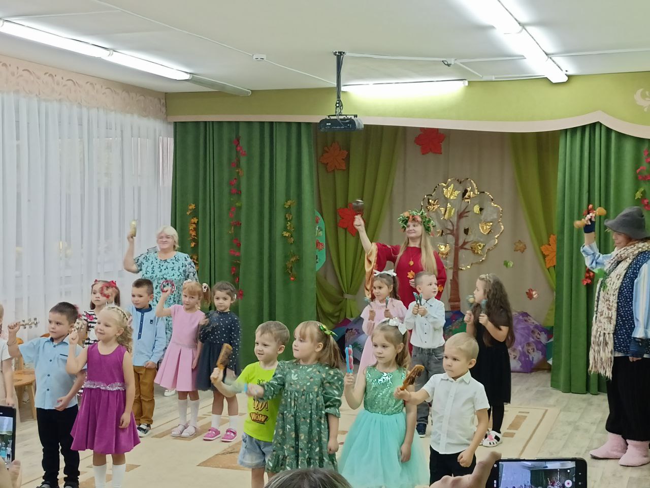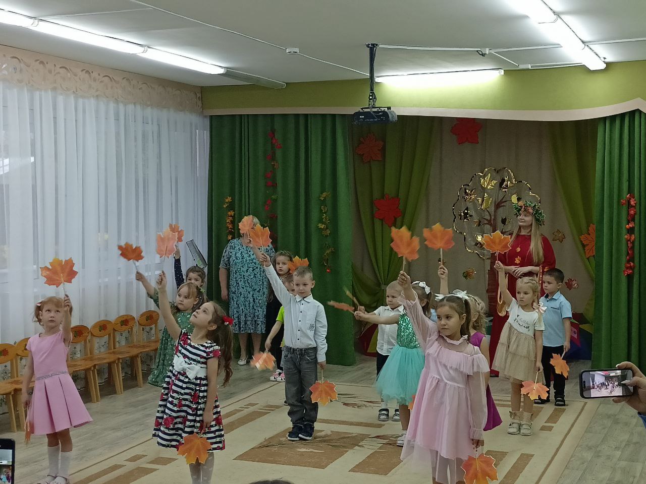 24.10. в детском саду «Теремок» (п. Новый) прошел осенний утренник. Для ребят это запоминающийся, радостный и яркий праздник, который помогает им закрепить представления об осени как времени года. И хоть осень и называют «унылой порой», тем не менее, кто как не дети больше всего радуются ярким разноцветным листьям, опавшим с деревьев. Открыли праздник песней «Художница осень», чтением стихов, весёлым парным танцем. Вдруг началась сильная гроза, проливной дождь и в зал вбежал сторож всех садов и огородов – Пугало. Стал жаловаться, что весь промок, озяб и очень хочет согреться. Дети предложили гостю остаться на празднике, научили его спасаться от дождя при помощи зонтика, поиграть в шумовом оркестре, показали свою силу и ловкость в играх – аттракционах. Пугало развеселился, плясал с детьми весёлый танец, согрелся и даже остался в детском саду на всю зиму, сторожем. На протяжении всего праздника присутствовал положительный эмоциональный настрой, все ребята получили массу приятных впечатлений. Детские осенние праздники – это море улыбок и веселья, удивительные чудеса, волшебные краски и звонкий смех детей.