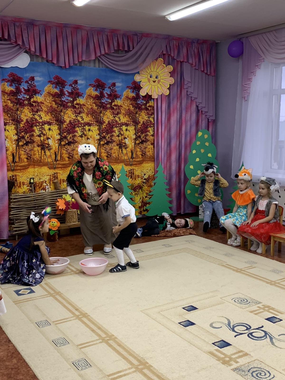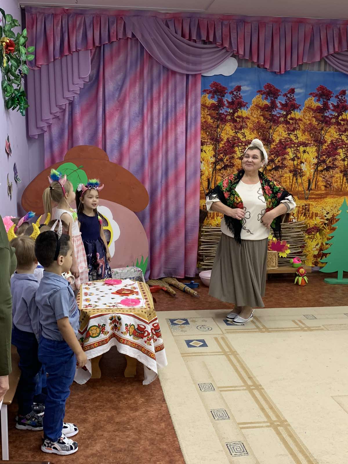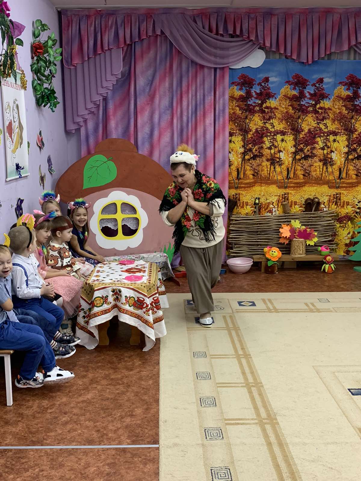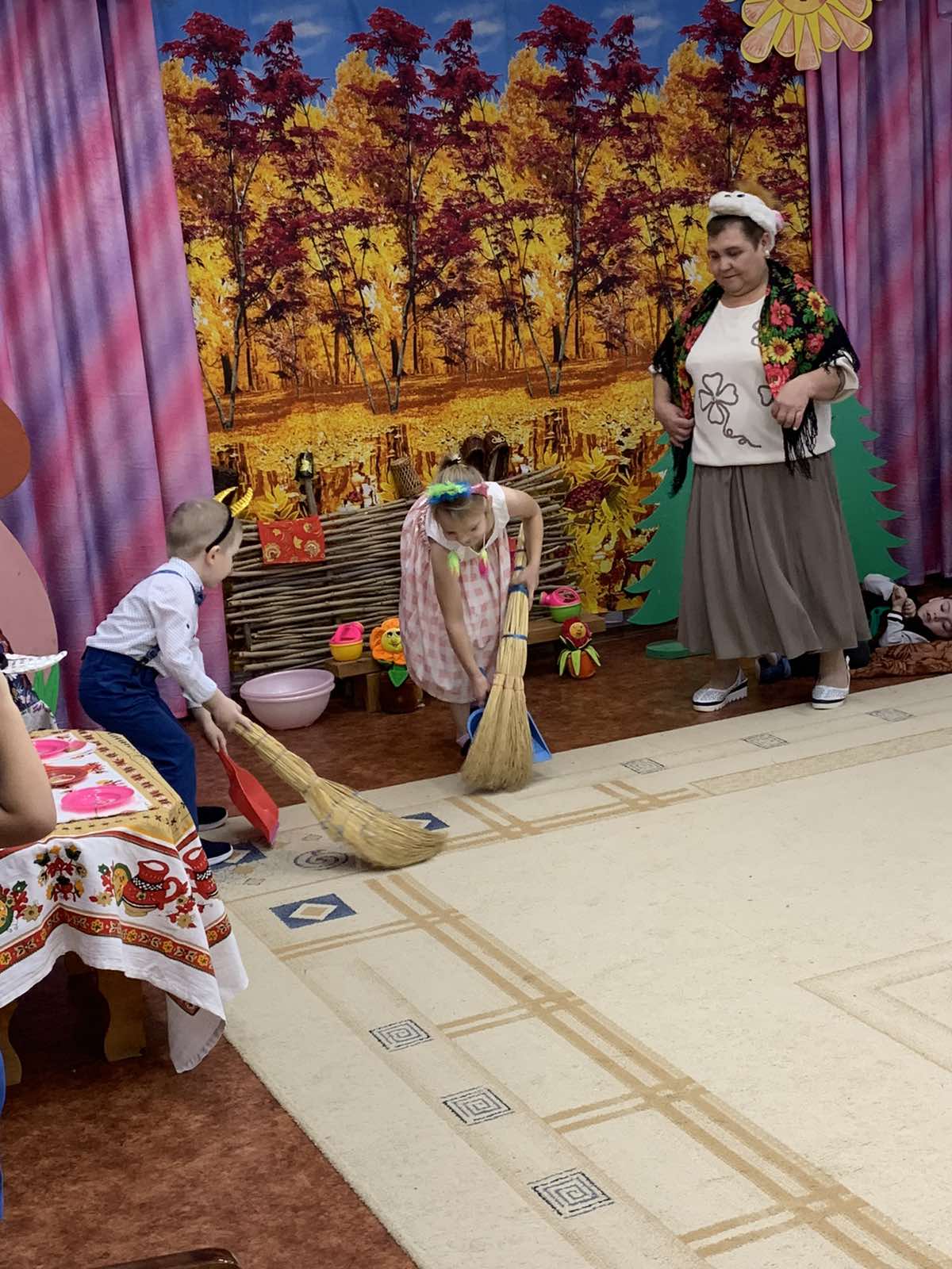 Изюминкой праздника стала инсценировка сказки "Волк и семеро козлят на новый лад", где Козлята помогли маме - Козе навести порядок в избушке: полить цветочки, помыть и насухо вытереть посуду, постирать платочки, подмести пол.