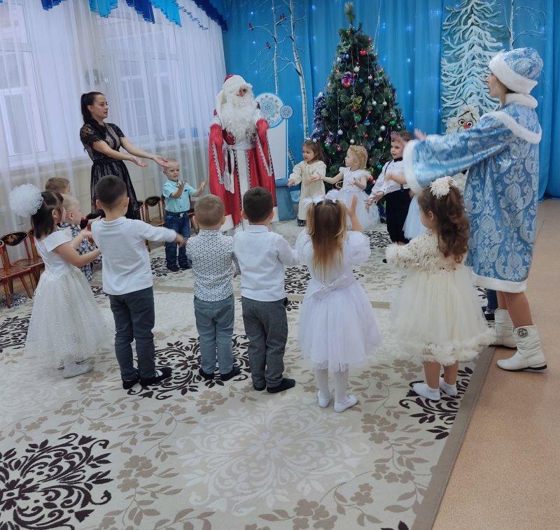 На праздник к ребятам пришли сказочные герои - Лиса, Снегурочка и главный герой - Дед Мороз. Дети водили хороводы вокруг елки, пели песни, танцевали, читали Деду Морозу стихи.