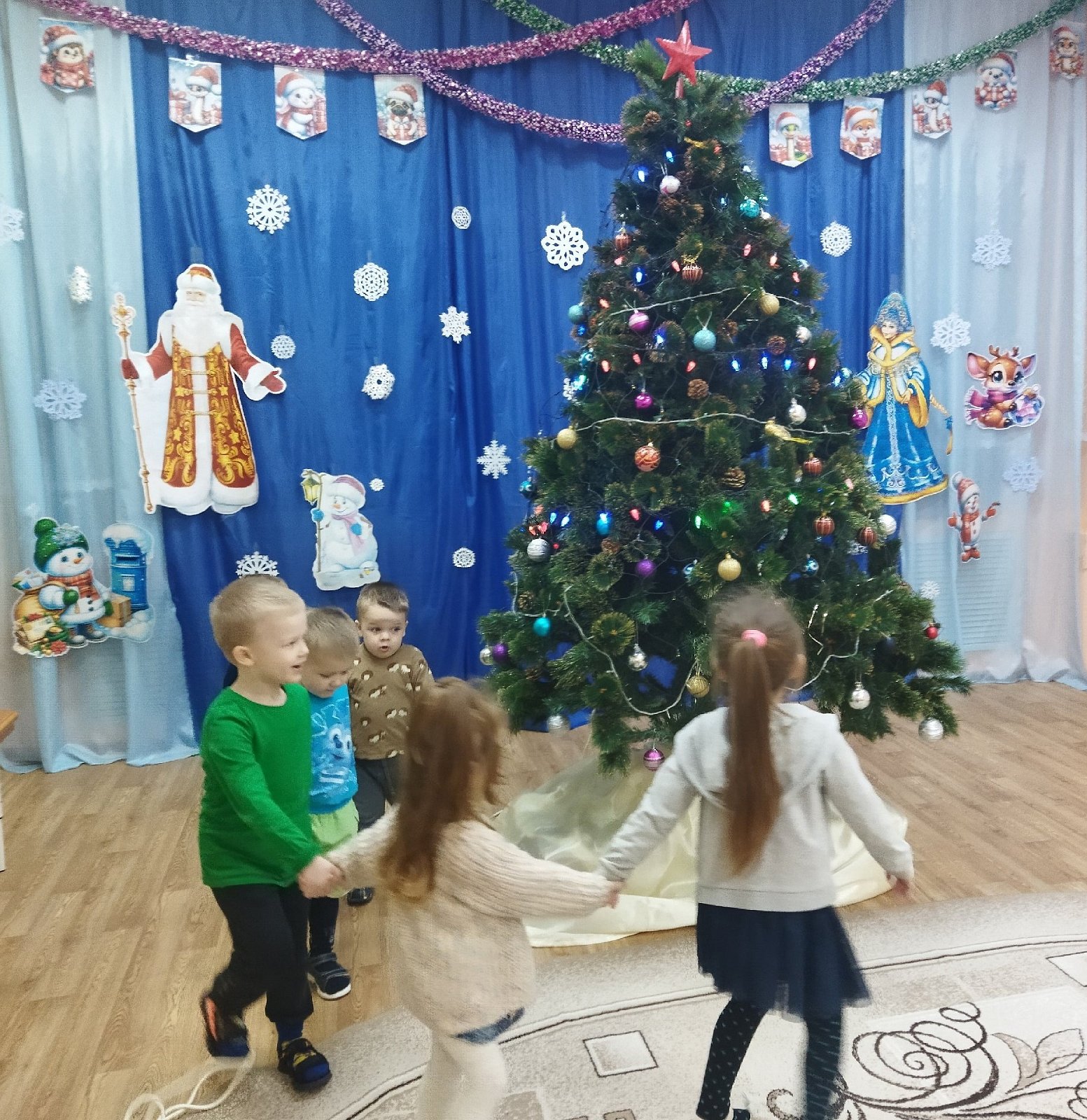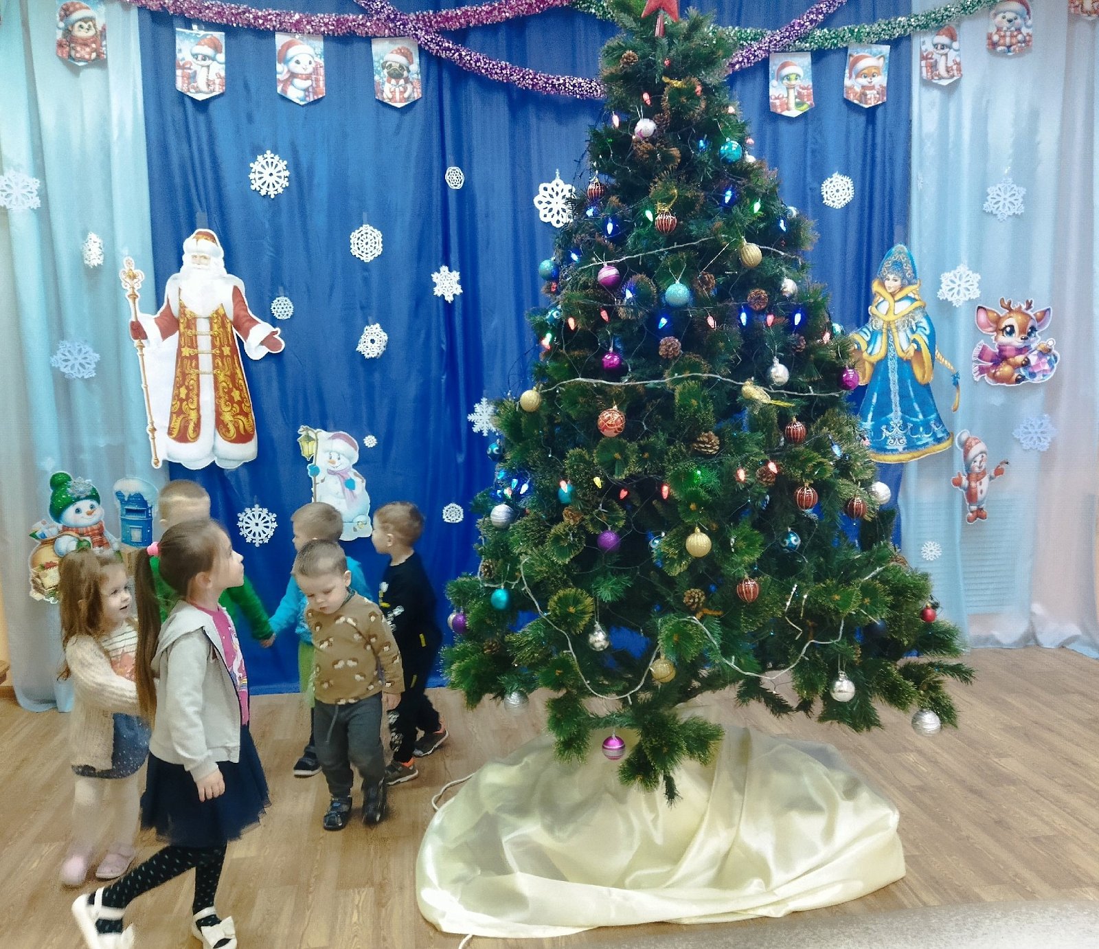 Вот и закончились новогодние праздники в детском саду, настало время снимать игрушки с ёлки и складывать их в коробки до следующего Нового года. Но нельзя расстаться с Новогодней красавицей, не поблагодарив ее за чудесные новогодние праздники.