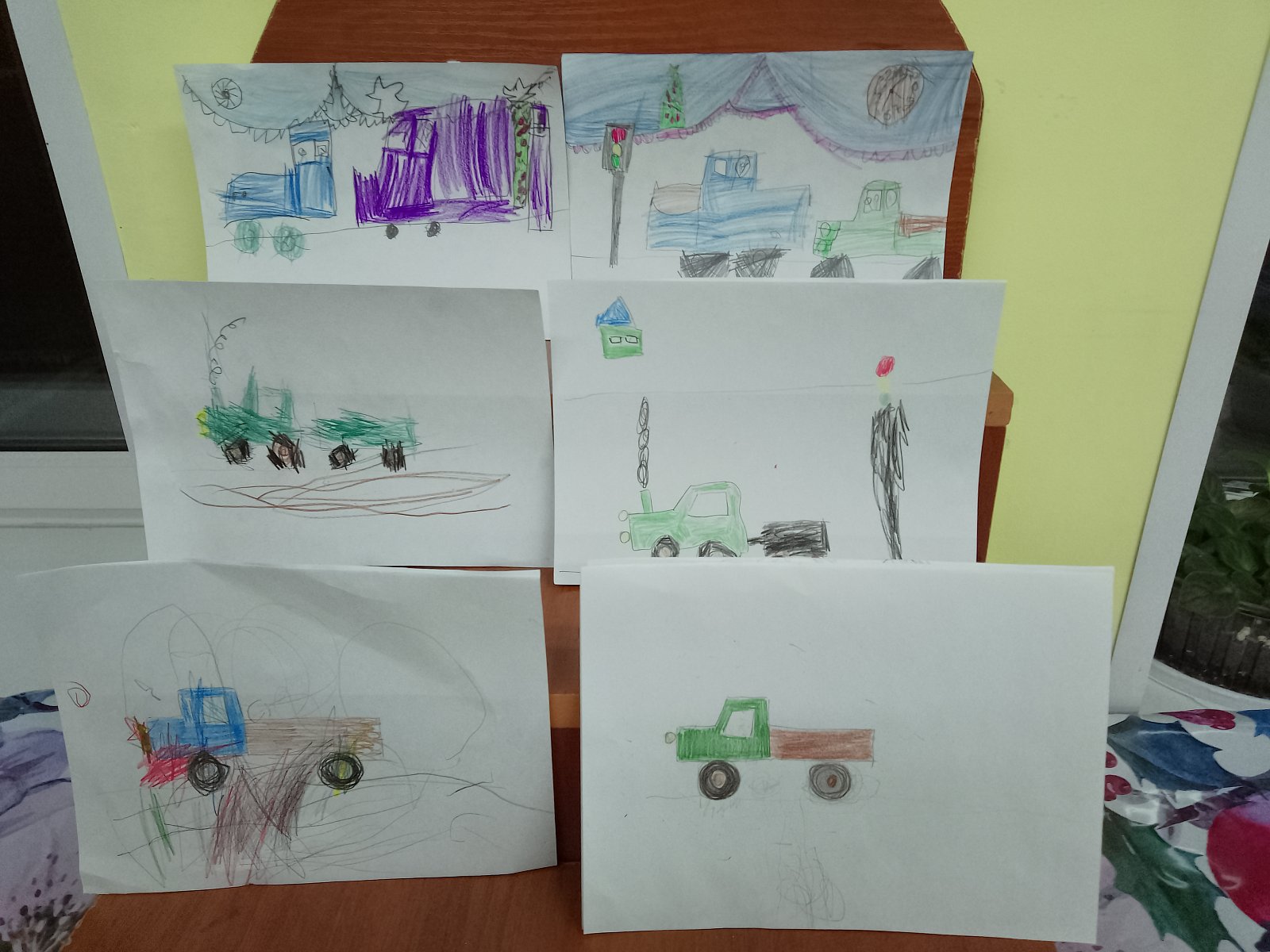 Дети младшего и среднего возраста постарались нарисовать "Машины нашего села", а подготовительная подгруппа детей рисовали на тему:"Кем я хочу быть".