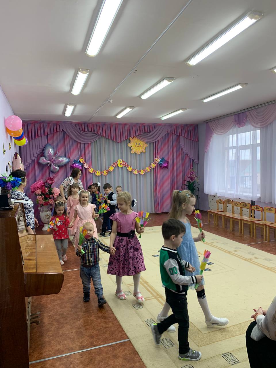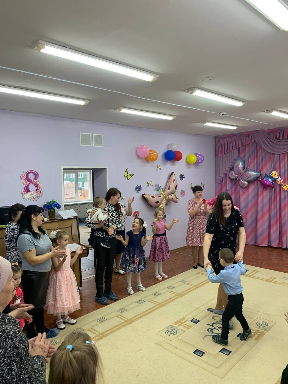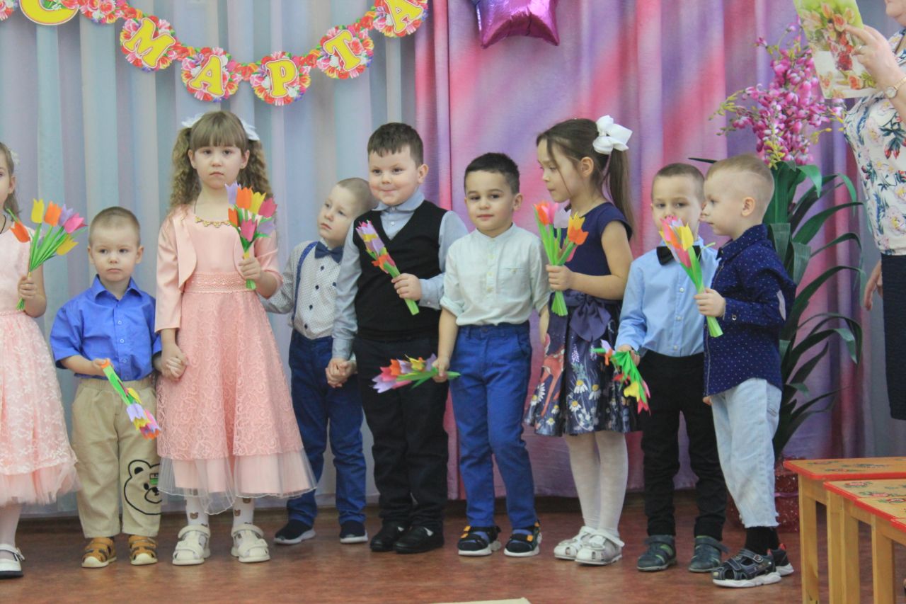 7 марта состоялся праздник, в красочно оформленном зале дети поздравляли своих любимых мам и бабушек: выразительно читали стихи,исполнили песни по маму и бабушку, танцевали с цветами, которые изготовили своими руками и подарили эти яркие букетики мамам и бабушкам.