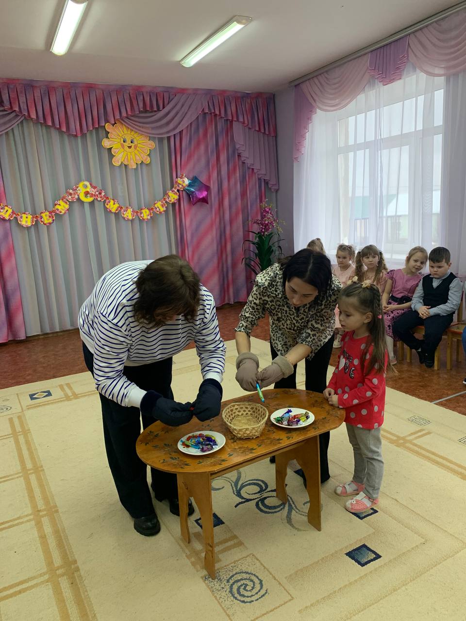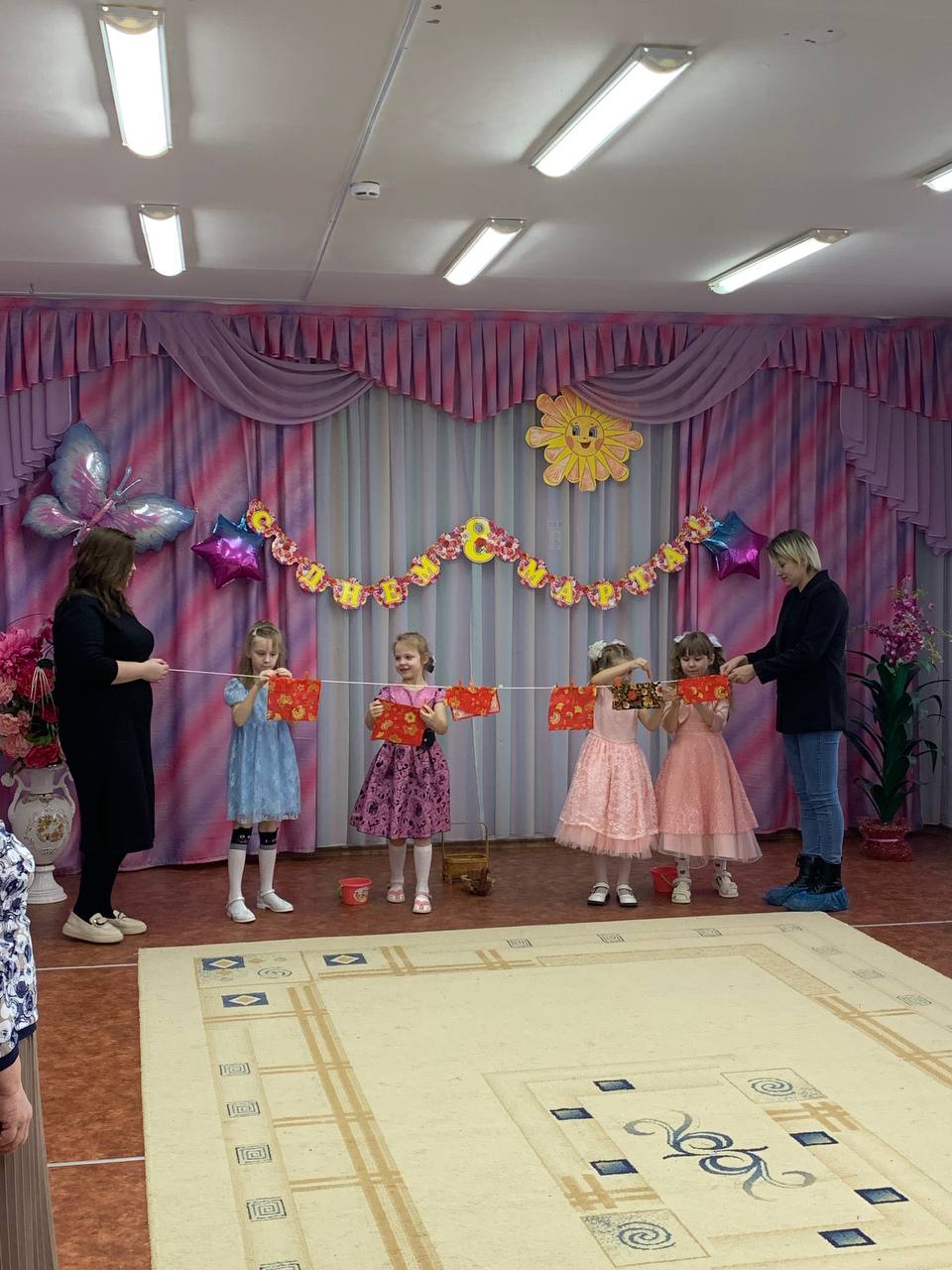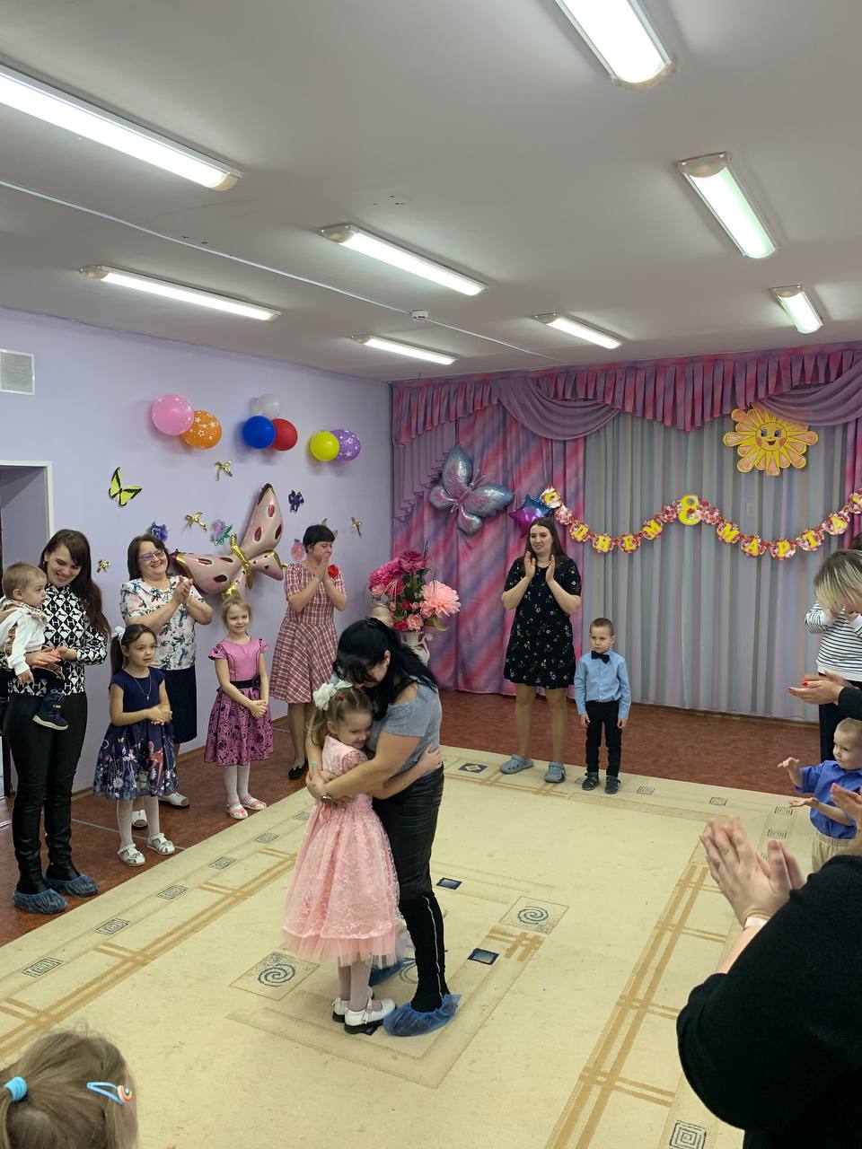 7 марта состоялся праздник, в красочно оформленном зале дети поздравляли своих любимых мам и бабушек: выразительно читали стихи,исполнили песни по маму и бабушку, танцевали с цветами, которые изготовили своими руками и подарили эти яркие букетики мамам и бабушкам.