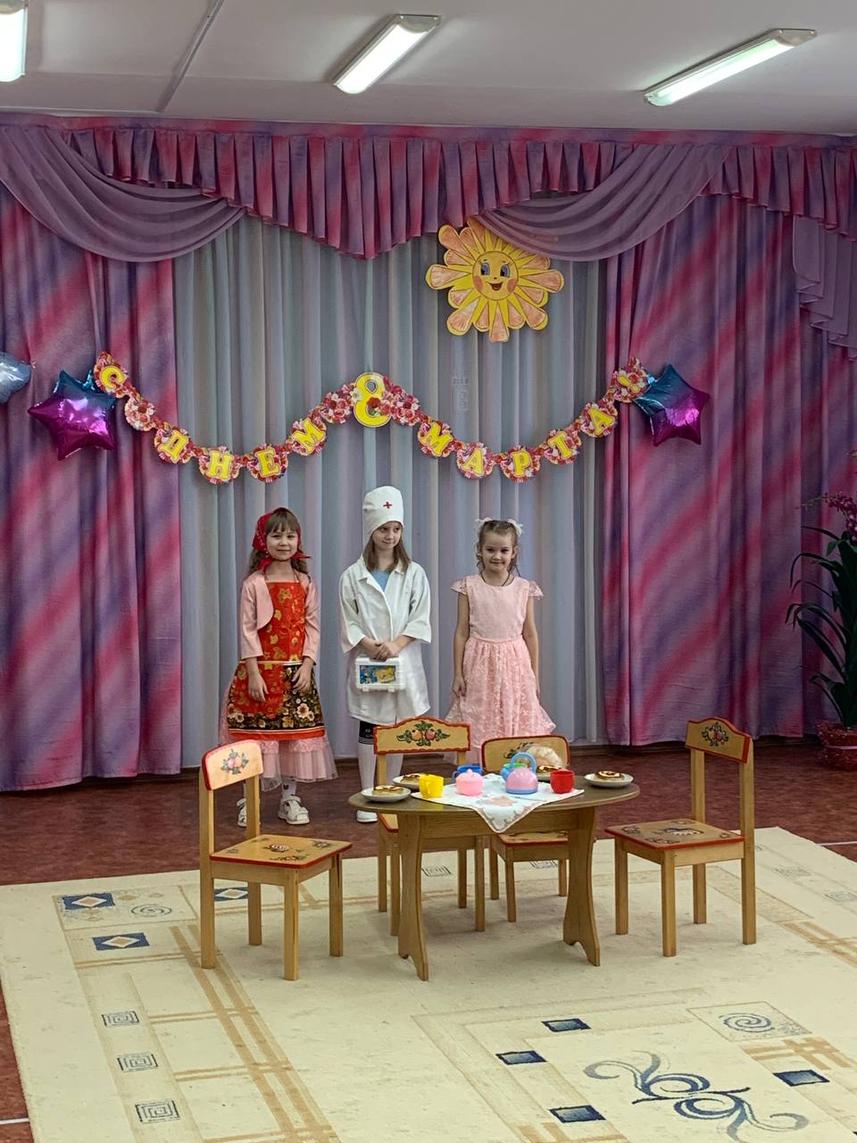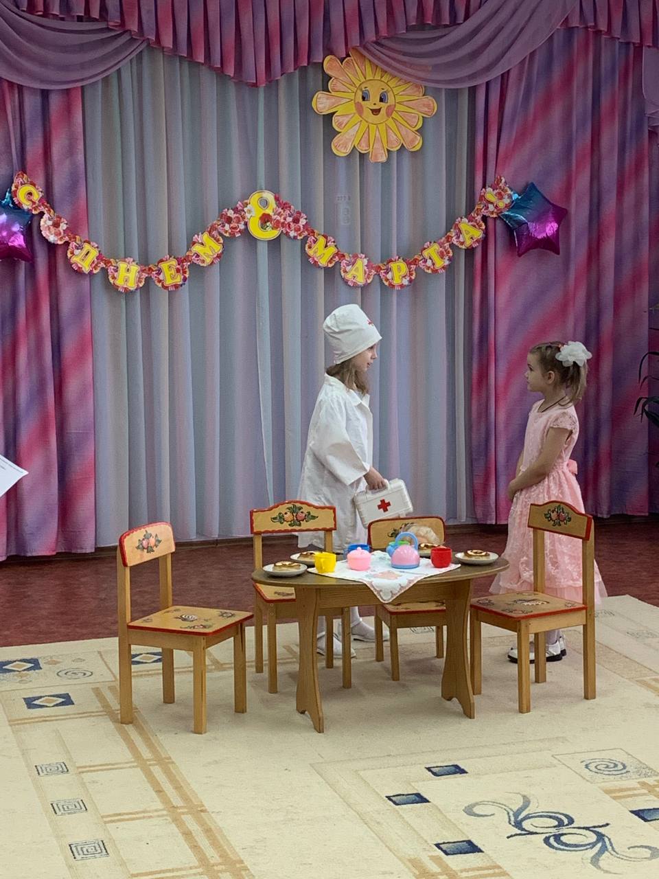 Старшие девочки показали сценку "Три мамы", за свое выступление получили громкие аплодисменты.