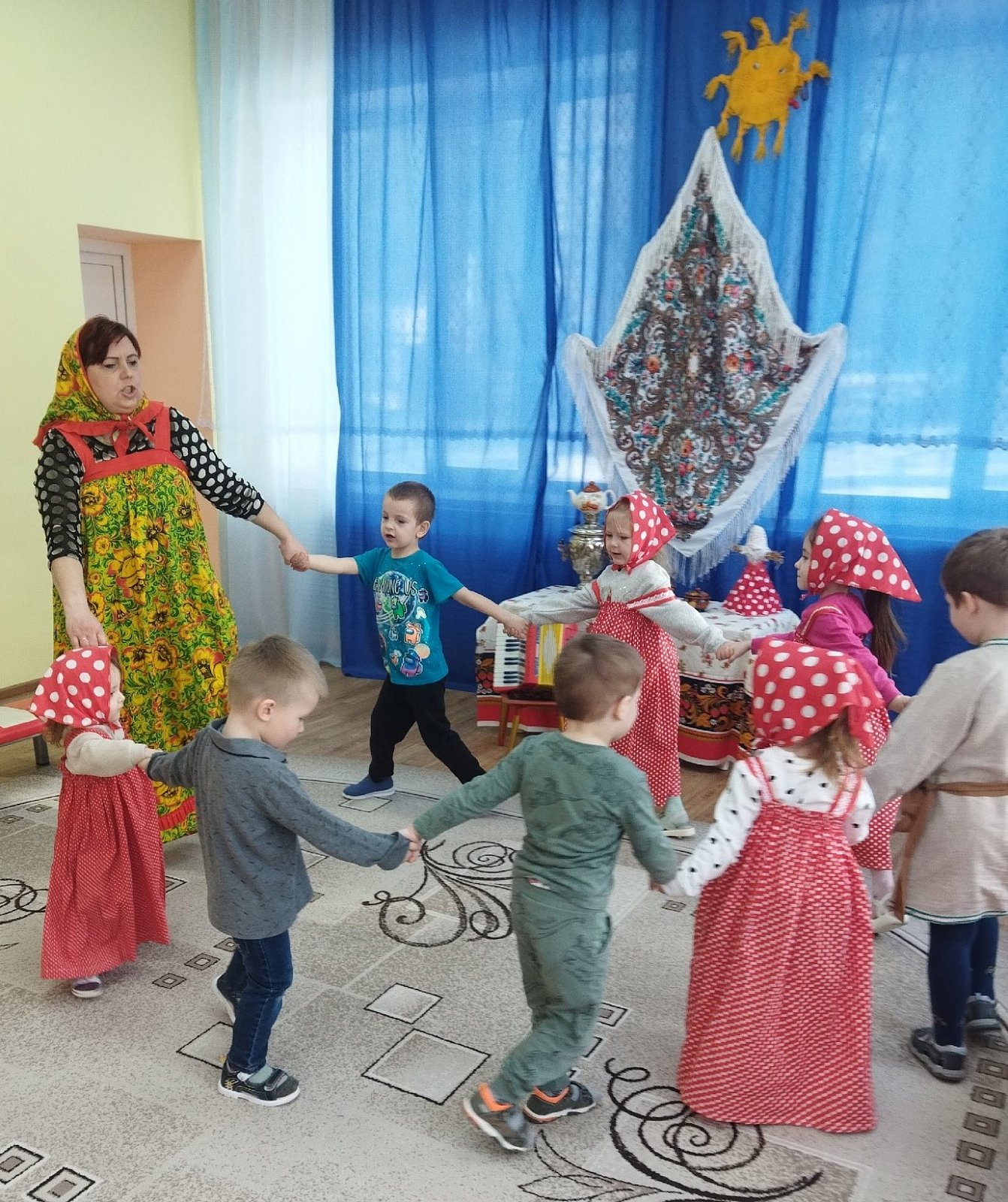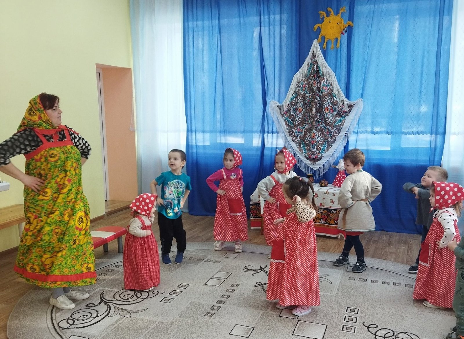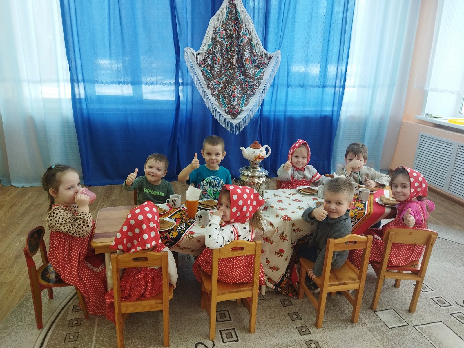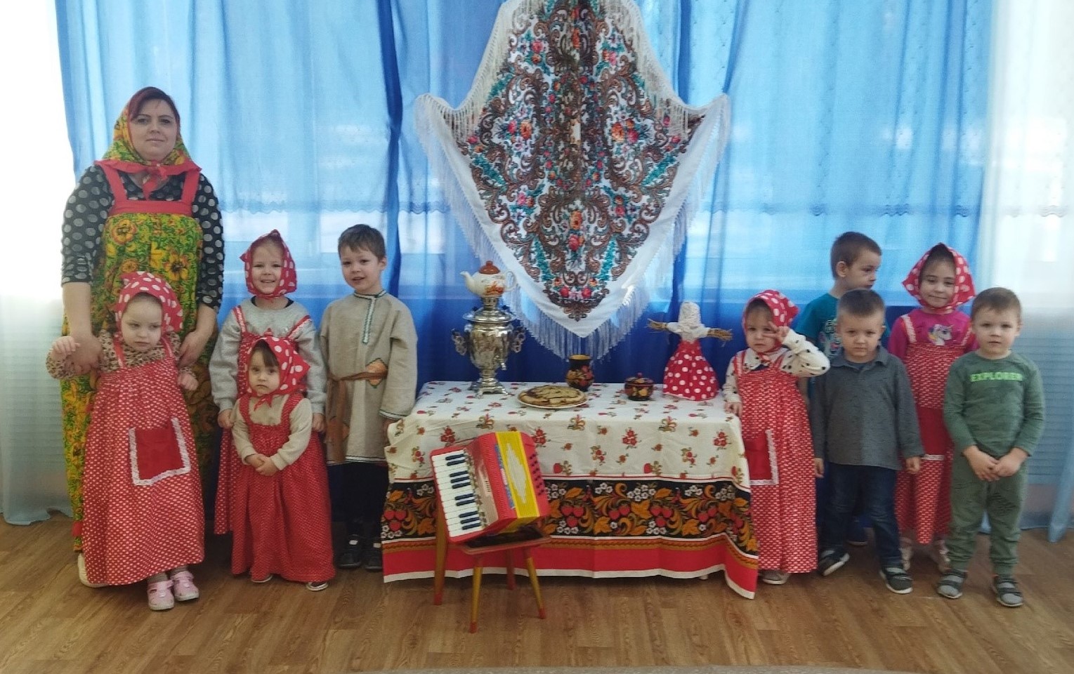 С понедельника с детьми проводили беседы, читали рассказы, рассматривали картинки, играли в народные игры, разучивали русские песни, заклички и ждали пятницу с нетерпением.