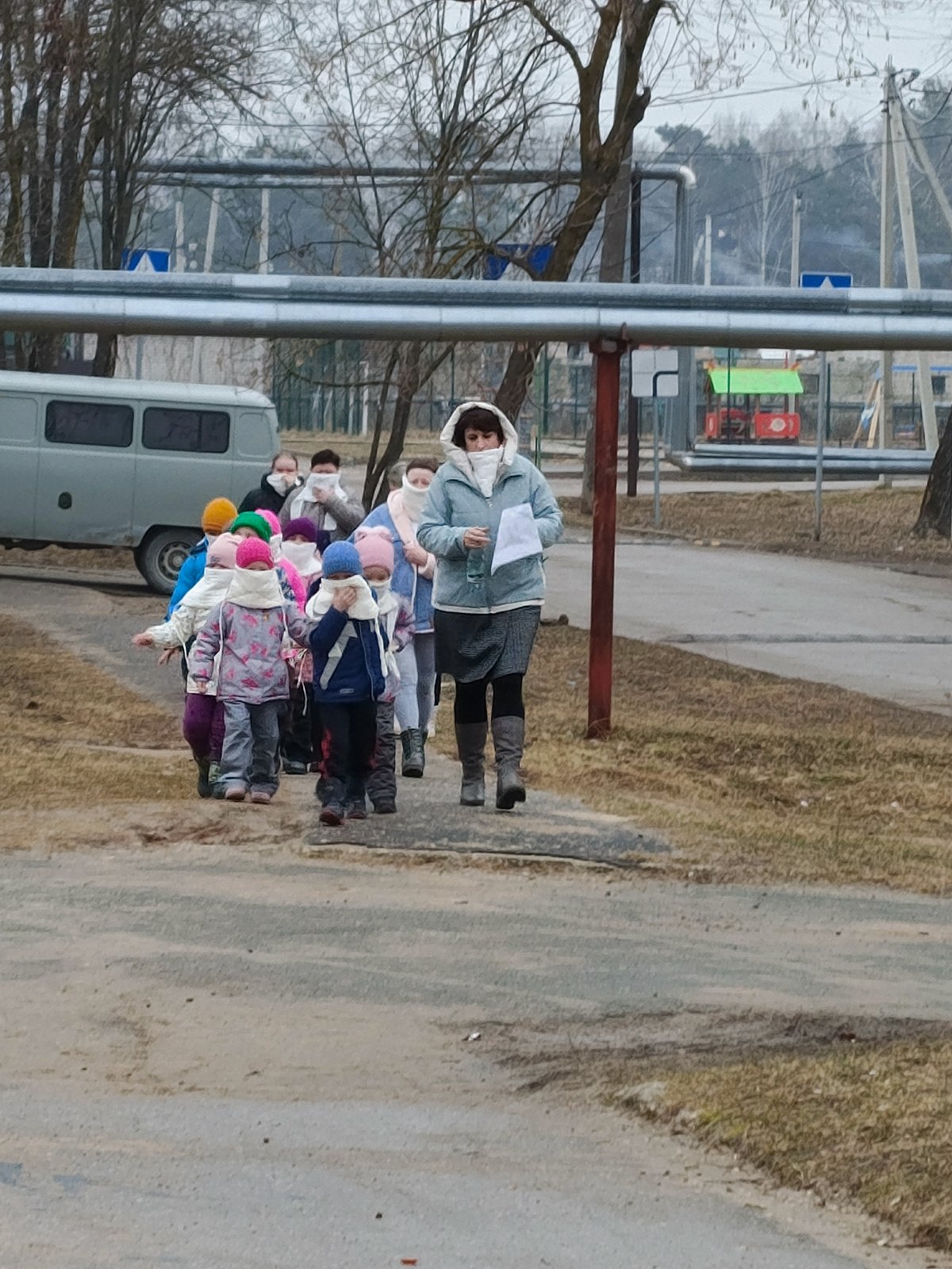 В 10.00 было имитировано обнаружение задымления в здании детского сада, в 10.01 началась общая эвакуация с объектов. Время эвакуации составило 7-8 минут. Цель практического занятия по эвакуационной тренировке была достигнута.